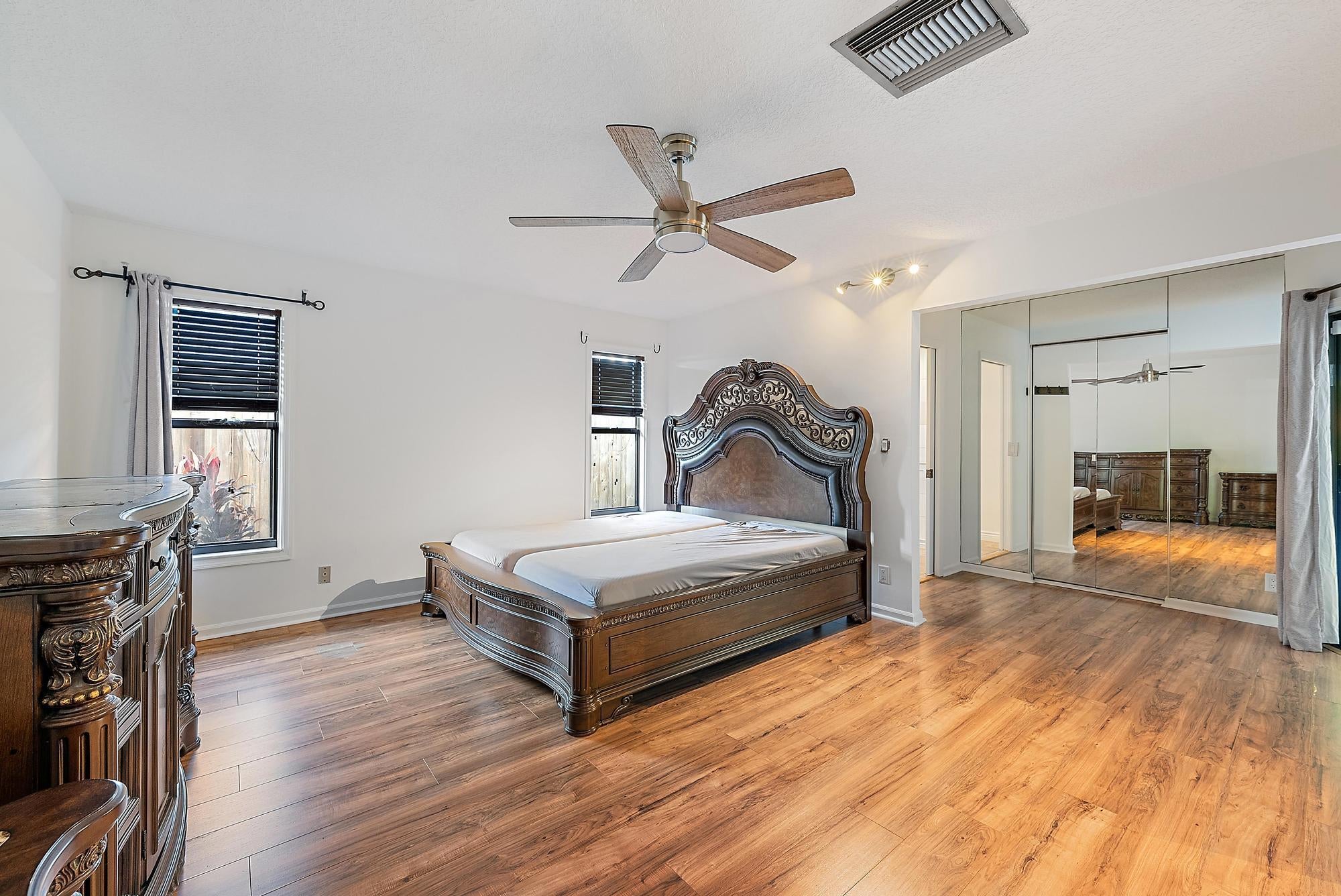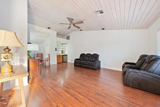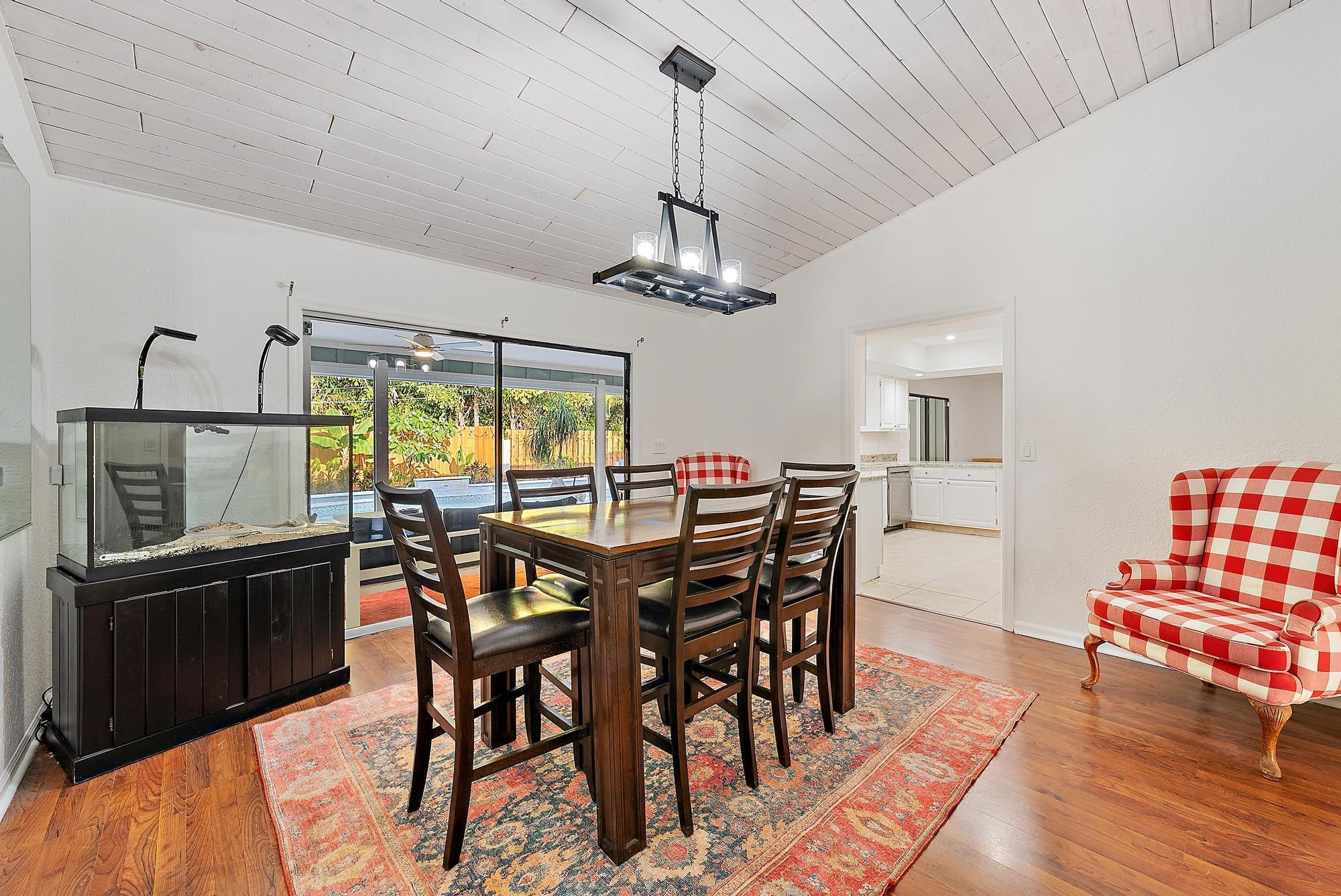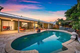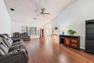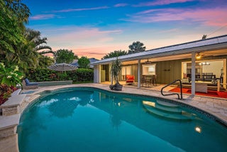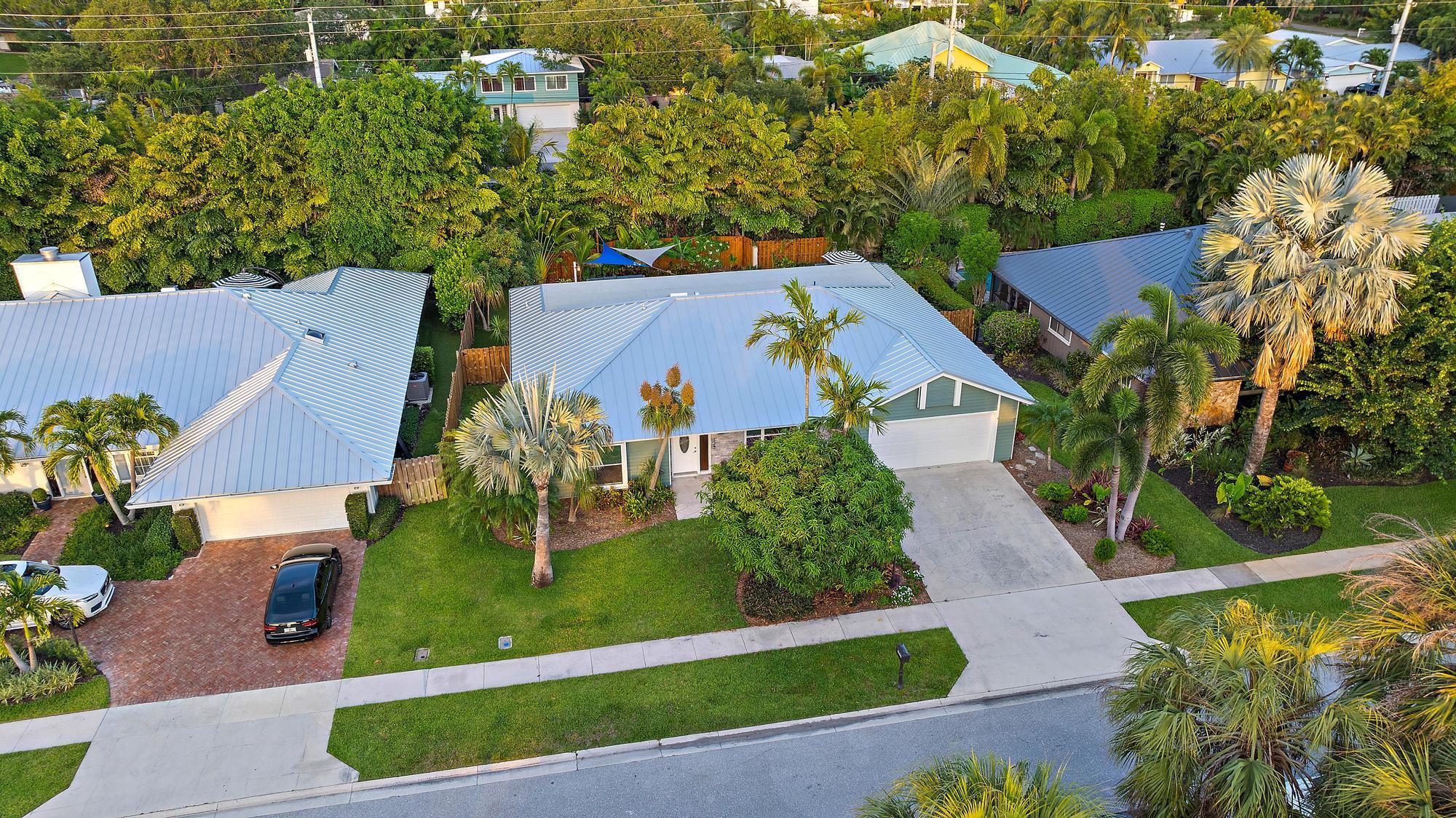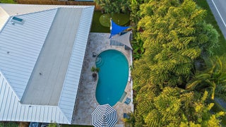Experience luxury living in this stunning 3-bedroom, 2-bath pool home located in the highly sought-after gated community of Frenchmen's Landing. Thoughtfully designed for entertaining, this spacious home features three sets of sliding doors that open to a private backyard oasis--complete with a large covered patio, built-in grill, renovated cabana powder room, outdoor shower, and even a putting green nestled among mango, avocado, and banana trees.features include, soaring natural wood ceilings, Interior / Exterior freshly painted, a brand-new metal roof (2024), newer central A/C system (2021). Ideally located, Frenchmen's Landing is just 5 minutes to the beach and Gardens Mall, 15 minutes to Palm Beach International Airport, and minutes from shopping, dining from Jupiter to Palm Be