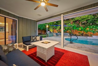 Covered Patio, Fence, Open Patio, Shutters, Zoned Sprinkler, Built-in Grill, Outdoor Shower, Cabana