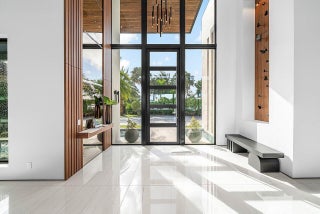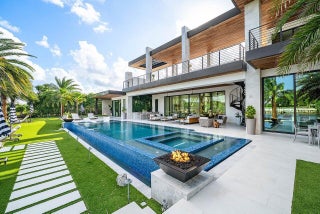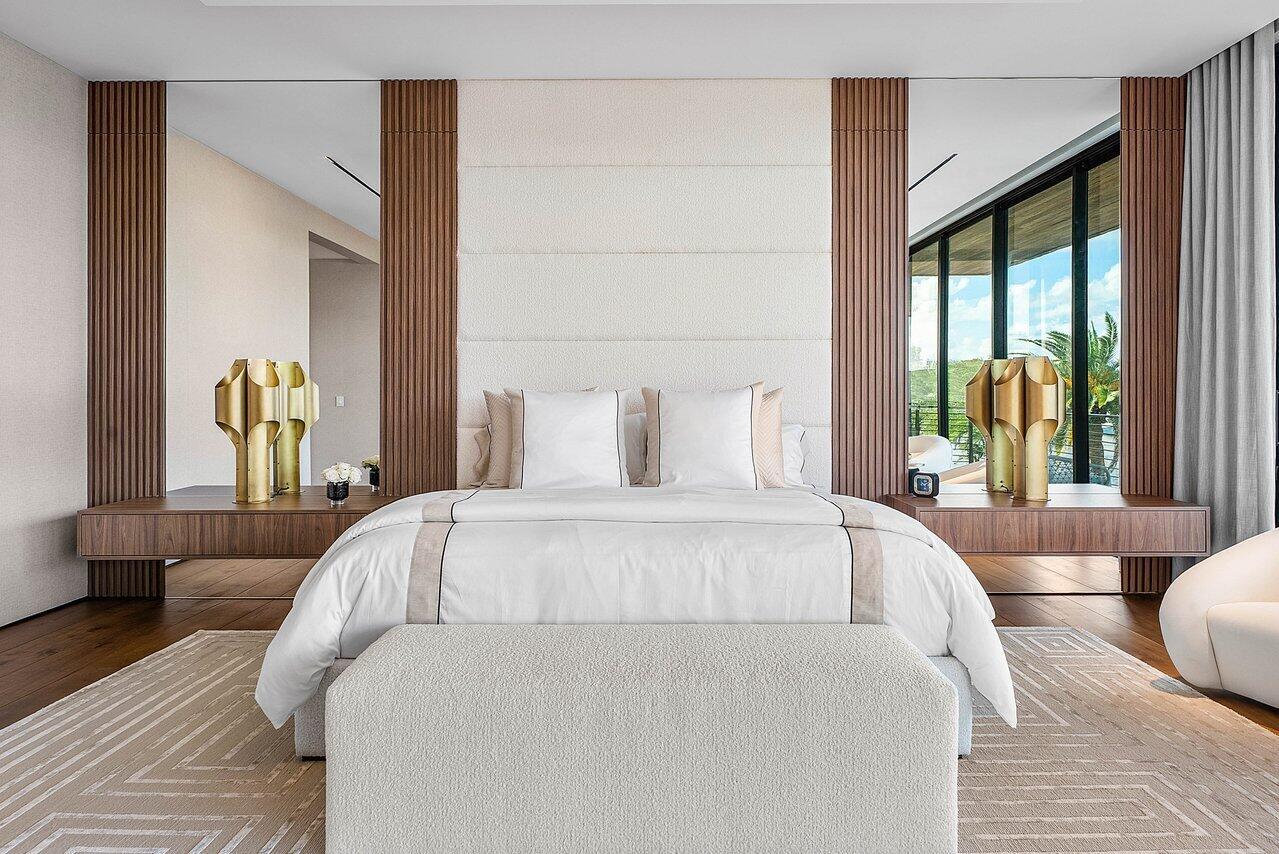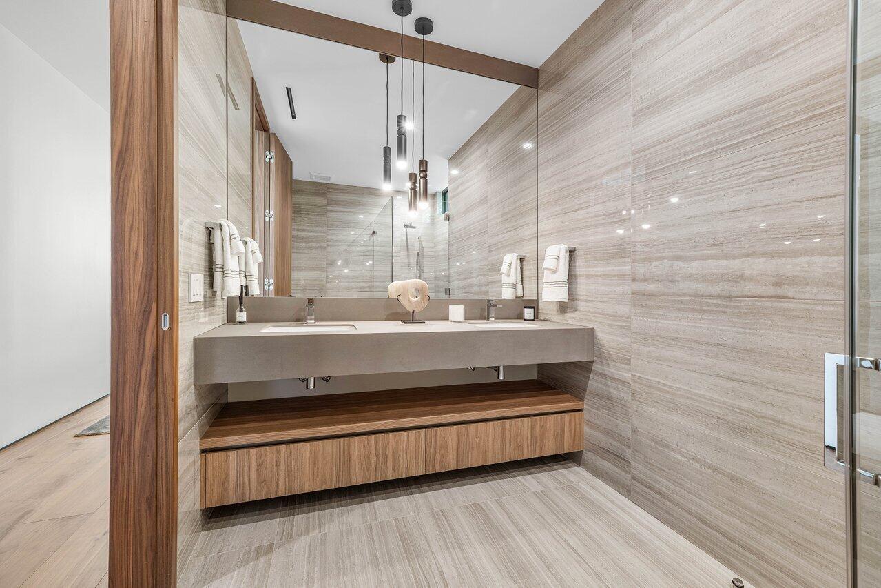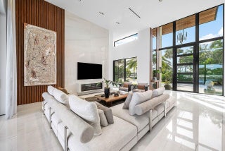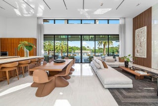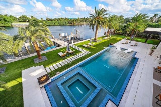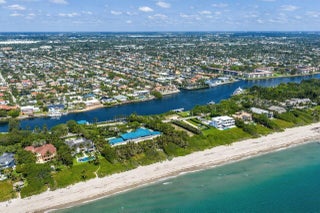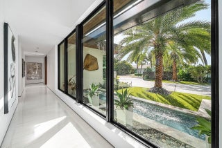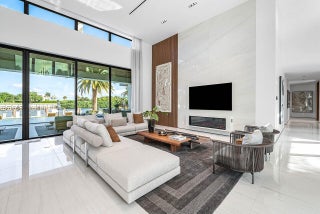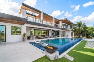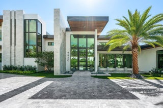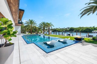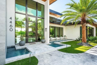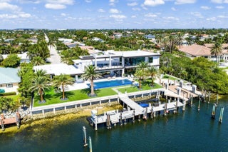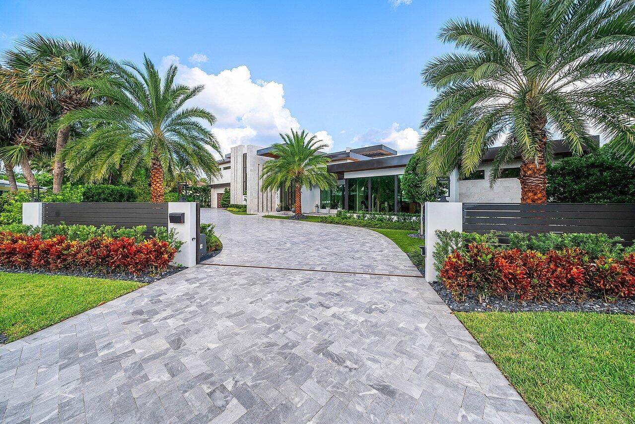 A Masterpiece of Modern Waterfront Living. Introducing a newly constructed, gated contemporary estate that redefines luxury on the Intracoastal Waterway, perfectly positioned on an expansive 161+/- feet of prime no-wake frontage directly across from the prestigious estates of Hillsboro Mile. Designed as a one-of-a-kind architectural statement, this glass-encased residence offers uninterrupted front-row views from nearly every major room, creating a seamless connection between interior elegance and the surrounding waterfront beauty. An awe-inspiring arrival begins with a cascading water wall entry that sets the tone for the exceptional design that follows. Inside, ultra-refined finishes abound--from a bespoke chef's kitchen with professional-grade appliances to imported tile, custom lighting,and a sophisticated private elevator. The entire north wing of the upper level is dedicated to an opulent Primary Suite sanctuary, featuring dual spa-inspired bathrooms, a private executive office, boutique-style wardrobe rooms, and an expansive sky deck offering panoramic views of the Intracoastala true personal retreat. Designed for both grand entertaining and relaxed resort living, the outdoor space features a sleek pool and spa, entertainment-ready lanai, and meticulously landscaped surroundings. Boating enthusiasts will appreciate the rare state-of-the-art, industrial-grade boat lift, engineered to accommodate significant watercraft, along with deepwater dockage.