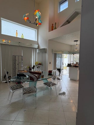 Experience the epitome of modern Florida living in this stunning two-story waterfront home, where voluminous ceilings and an open floor plan create a spacious and inviting atmosphere. The expansive living areas are perfect for both entertaining guests and enjoying quiet family time.The master suite, located on the first floor, offers a large walk-in closet, and a convenient bathroom featuring dual sinks, a sit down vanity, a soaking tub, a separate shower, and a private toilet area. Upstairs, you'll find two generously sized bedrooms, each featuring its own walk-in closet and private vanity area, connected by a Jack & Jill bathroom.Step outside to a fully gated and huge backyard that offers privacy, breathtaking lake views and a banana tree!Don't miss out- this won't last!