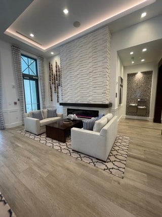 Sprawling beautiful 4 bedroom, Office/work space, 3 full bath, 2+ extended garage with work/storage space. Wood tile floors throughout. Layout designed for everyone to have personal space with 2 bedrooms and full bath on Right side, left side houses the 4th bedroom, separate laundry room and office/work space room and 3rd full bath while the Master suite is placed past the great room overlooking the Pool and fenced yard. Master bath offers walk in shower, double vanities, soaking tub and his and hers walk in closets. High Volume ceilings in all rooms. Enjoy afternoons on the extended patio in your own Pool or at Avenir's Club House and Rec center which will leave you breathless! Pools, tennis, basketball, fire pits, playgrounds - This one is a must see!