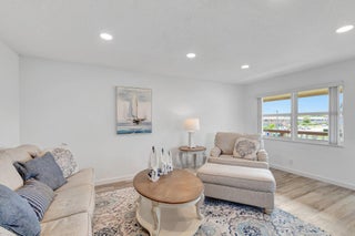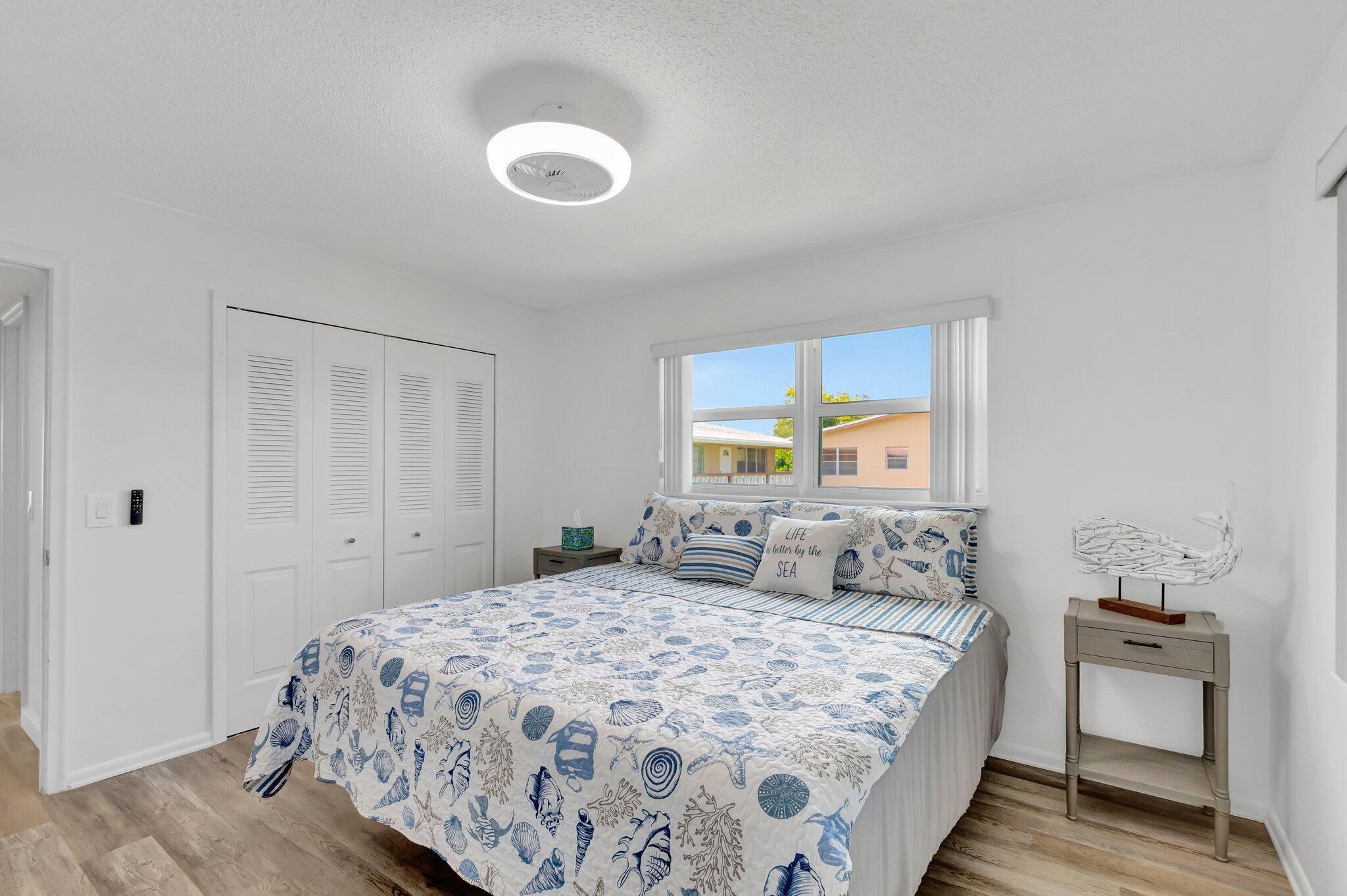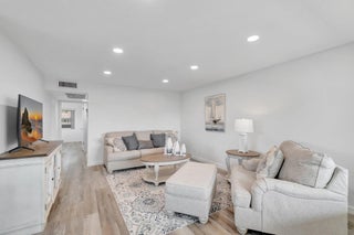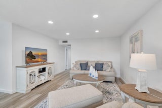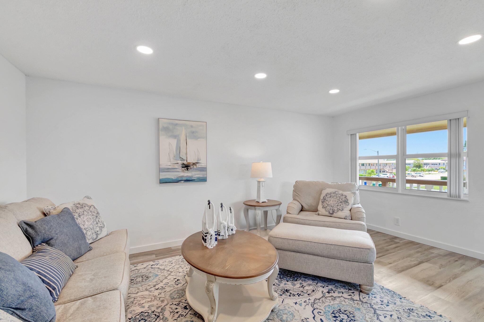 Look no further! Here is the awesomely updated corner unit you have been waiting for. Hurricane windows and doors with UV protection. Custom blinds and marble window sills throughout. New central A/C 2024 & HWH 2025. This unit has it all! Fully furnished with many upgrades including pendant lighting, recessed lighting, Smart T.V., transitional furniture, porcelain tile surround shower. Kitchen has quartz countertops, all new stainless steel appliances. High end LVP flooring throughout. Bonus of an extra long enclosed patio balcony with plexiglass windows and screens. Bedroom with walk-in California closet. Master Bedroom has California closet with king size adjustable bed. Building in great shape with updated roof from 2022. Don't miss this one! It is move in ready and exceptional.