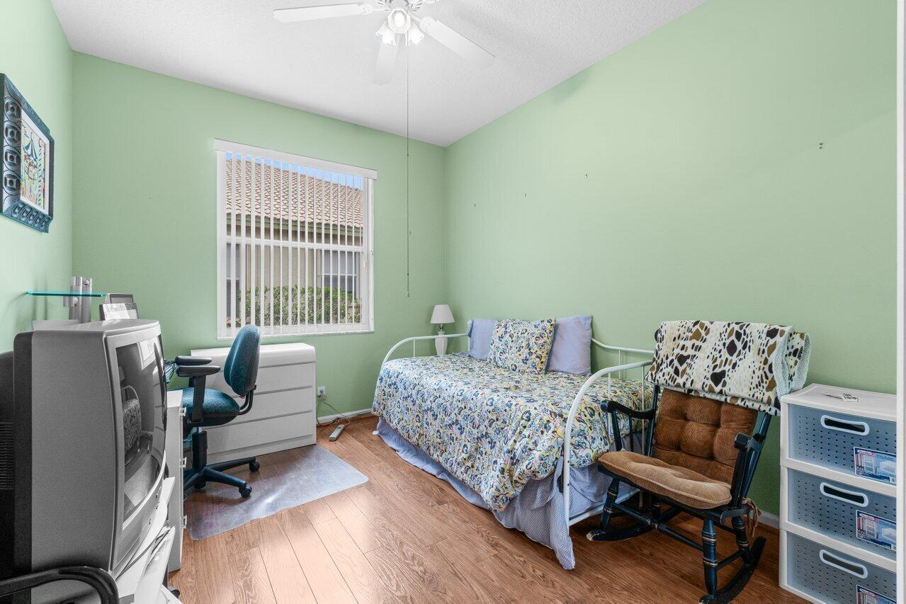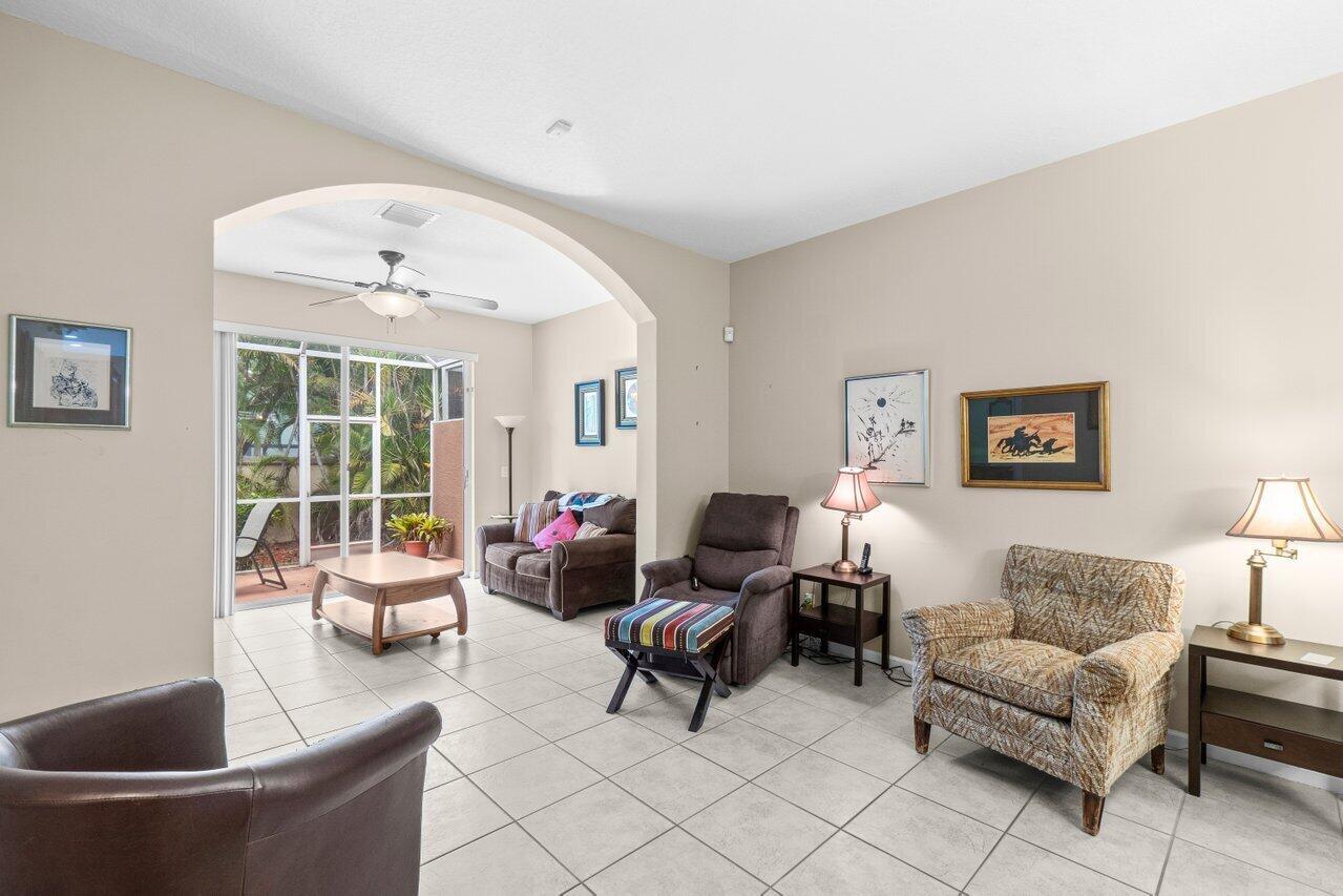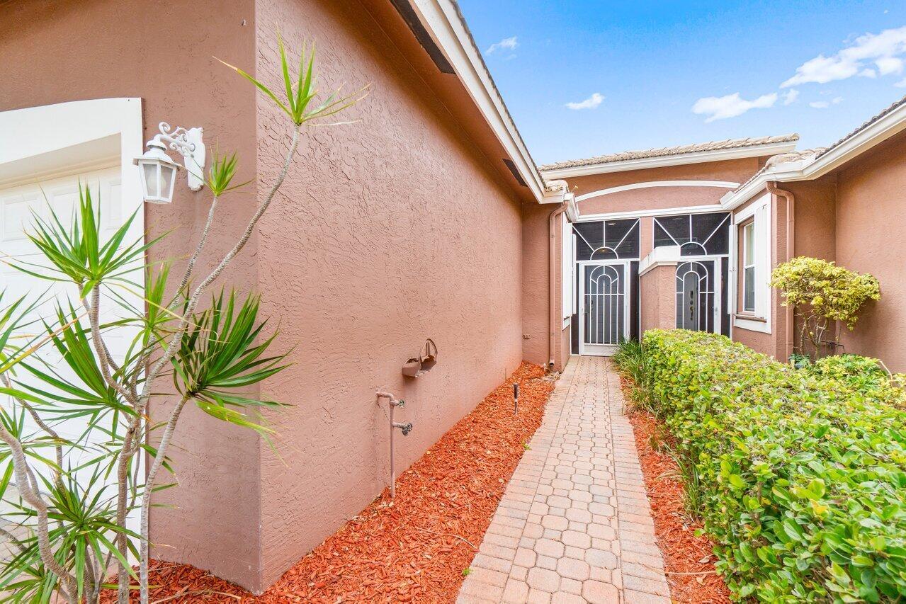 Outstanding Opportunity! Step into the largest 3-bedroom, 2-bath villa with a 2-car garage, ideally situated just 0.2 miles from places of worship and near a bustling clubhouse filled with amenities. This inviting residence is perfect for savoring South Florida's beautiful winter season while staying close to everything essential. The generous kitchen features sleek stainless steel appliances, a pantry, and numerous pull-out drawers for effortless storage. Enjoy meals in the cozy breakfast area, entertain in the formal dining space, or dine outdoors on the screened patio. The expansive primary suite offers a huge walk-in closet and a luxurious bathroom with dual sinks and an oversized shower. Two additional bedrooms provide plenty of closet space--ideal for guests or a home office.Laminate wood-style floors add warmth to the bedrooms, while large neutral tiles complete the living areas. A separate laundry room with a 2021 washer adds everyday ease, and full accordion shutters offer added security. No rear neighbors means more privacy and peace. Majestic Isles delivers true resort-style living, featuring a remodeled clubhouse with a pool, spa, fitness center, tennis and pickleball courts, a theater, craft room, billiards, and card rooms. With a packed calendar of events, there's always something exciting happening. HOA fees include lawn service, cable, internet, and 24/7 gated security. Perfectly located with fast access to I-95, the Turnpike, airports, beaches, dining, and shoppingthis villa puts South Florida's best at your fingertips. Don't miss your chance to own this exceptional blend of comfort, location, and lifestyle!