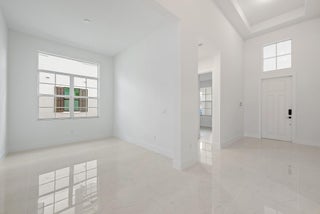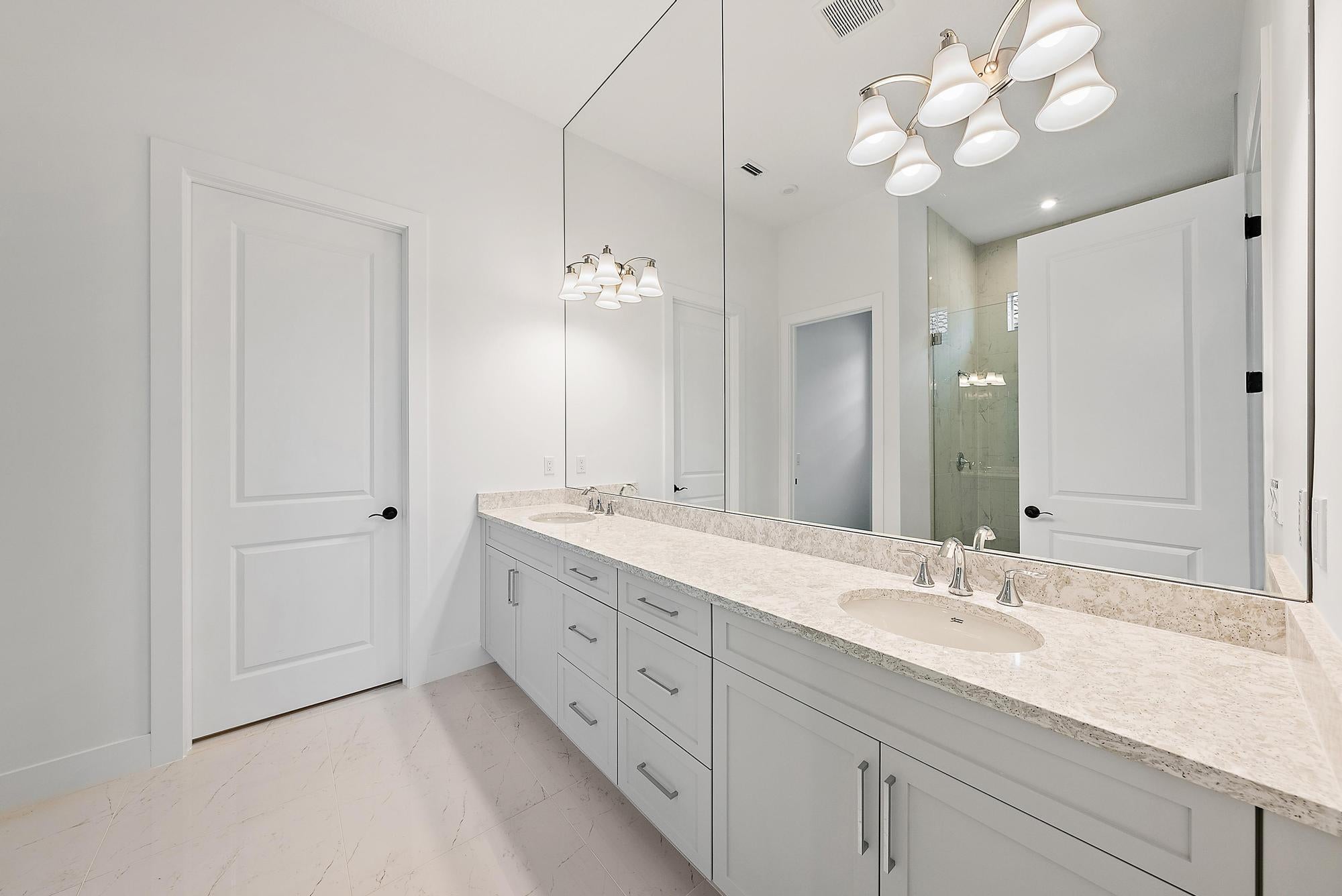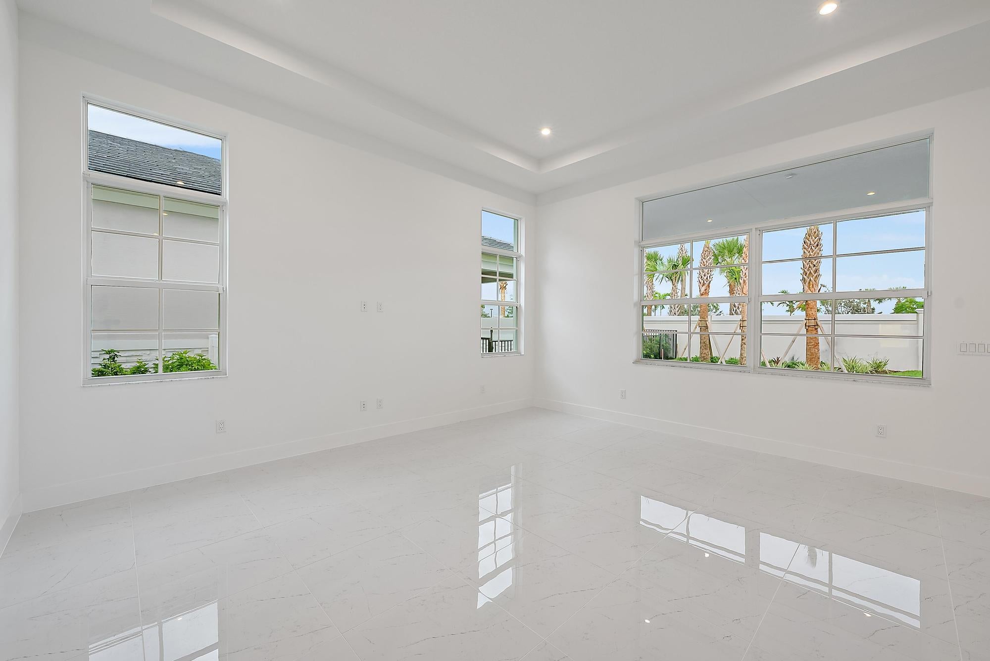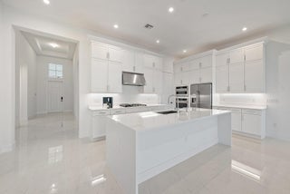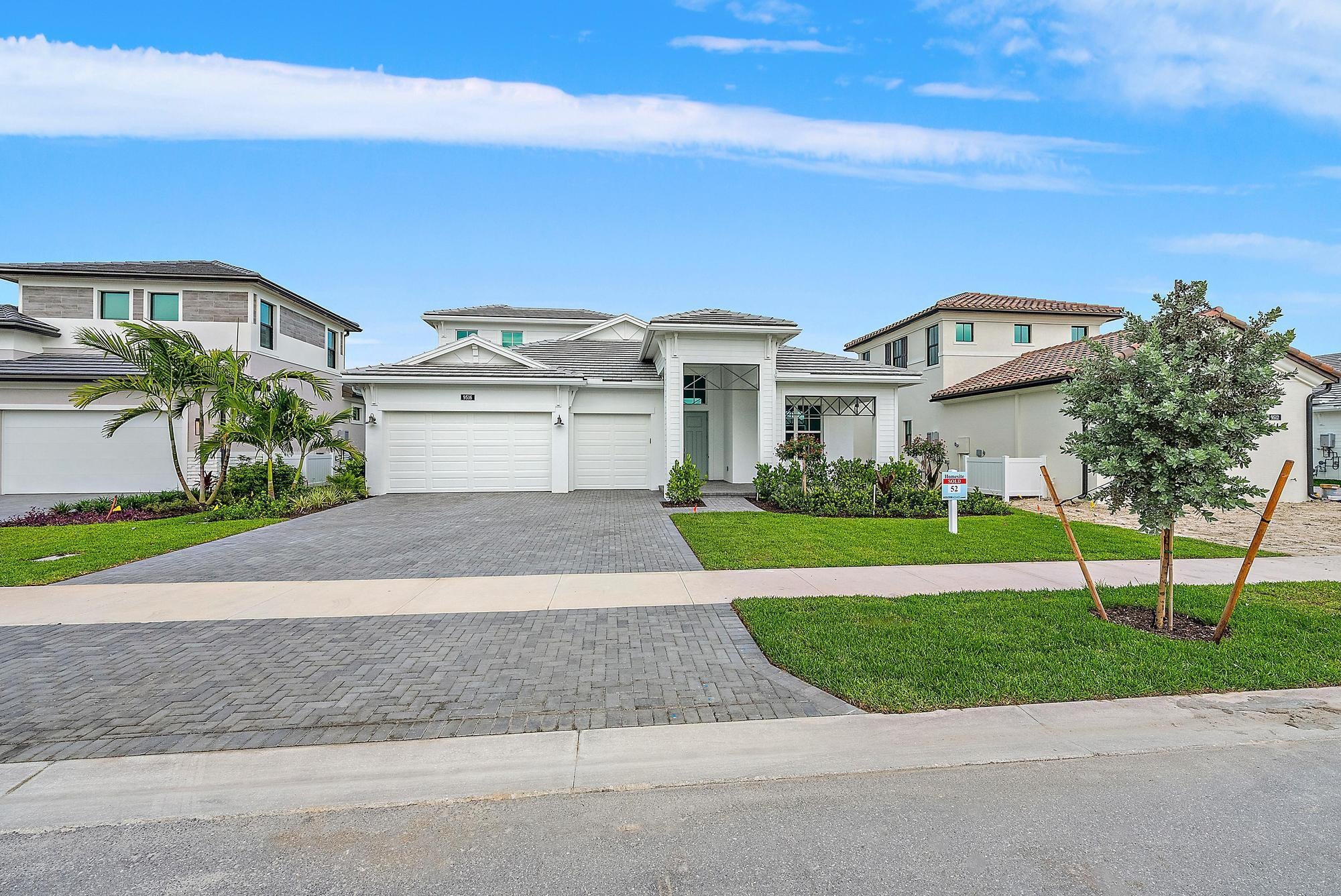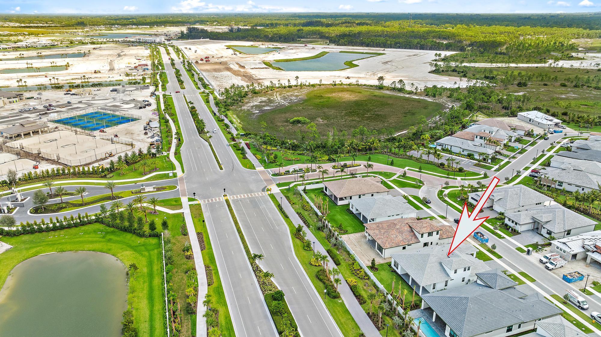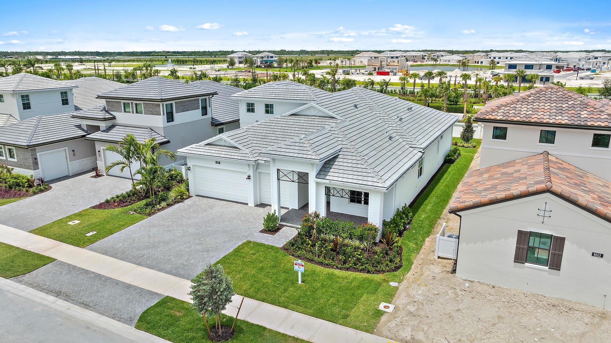 This brand-new Paige floorplan built by Kolter Homes is located within the gated community of L'Ambiance at Avenir. This home includes 4 bedrooms 4 bathrooms, in which the 4th bedroom and bathroom are a 2nd floor bonus option. This Paige also includes a 3-car garage and a 16' wide by 10' tall sliding impact glass door leading to the lanai. The owner's suite includes the deluxe shower with an oversized walk-in closet, and the flex room offers the perfect space for multi-purpose. There is a 5' privacy wall on the lanai with gas, electric and water connections and the backyard offers ample space for your entertaining needs!The kitchen includes a quartz island countertop with a waterfall edge and second tier upper cabinets. L'Ambiance is located directly across from the soon to be completed Great Egret Clubhouse giving residents access to a full-service restaurant and poolside bar, 3 separate pools, fitness center, covered playgrounds, indoor and outdoor social spaces, sports courts and more.