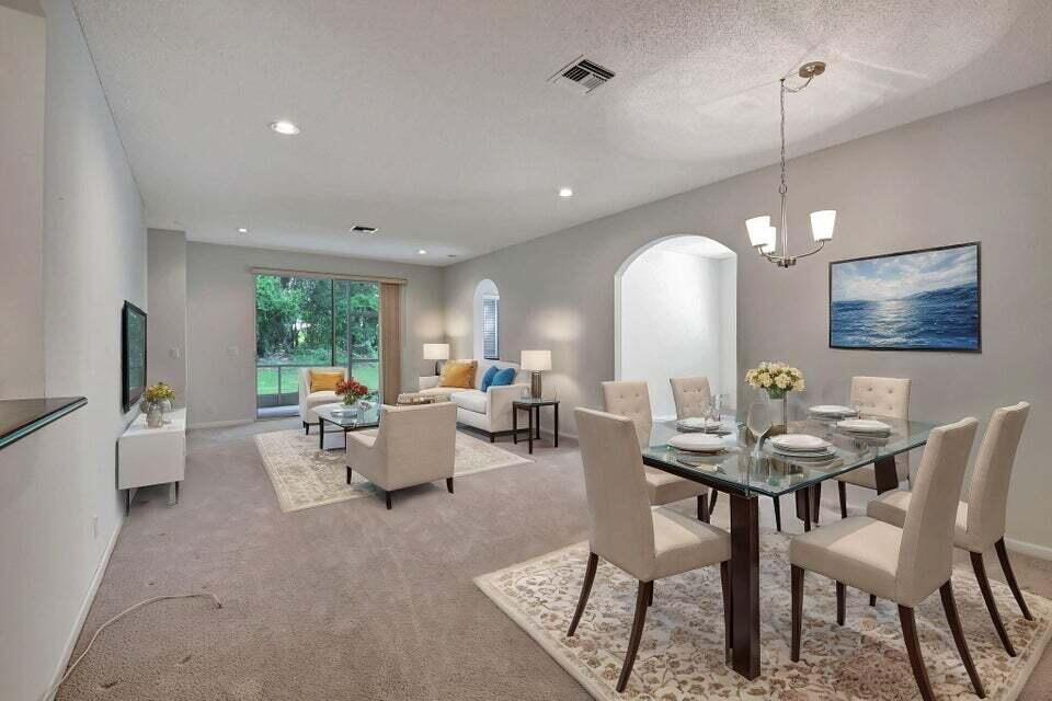 Brand new carpet and newly painted first floor unit has 2 bedroom plus spacious den. New A/C unit and new roof. This is an immaculate clean slate. So easy to make your own. Great quiet location and easy walk to clubhouse. The Grove is a wonderful active lifestyle community with tons of activities and amenities. Please see photos for Clubhouse amenities.