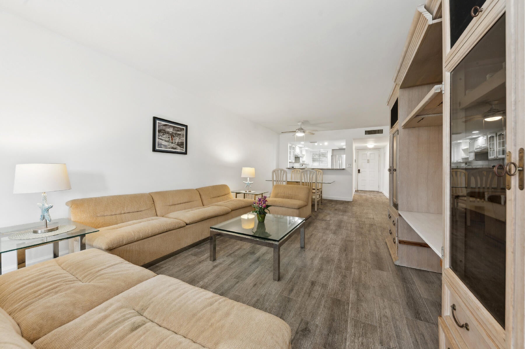 Welcome to this beautiful 2 bedroom, 2 bathroom 55+ condo on the first floor nestled in a serene setting with a tranquil garden and pool view, perfectly designed with a split floor plan that offers comfort and privacy. The kitchen is a true highlight, featuring white cabinetry, granite countertops, and stainless steel appliances, new in unit washer and dryer all complemented by wood-look tile flooring that flows seamlessly throughout the home. The spacious master suite offers a large walk-in closet with direct access to the enclosed Florida Room. The community offers the following amenities, pool, tennis courts, club house which offers pay-as-you-play golf, entertainment, restaurant, classes, trips and more! Furniture Negotiable. Basic cable and water is included.