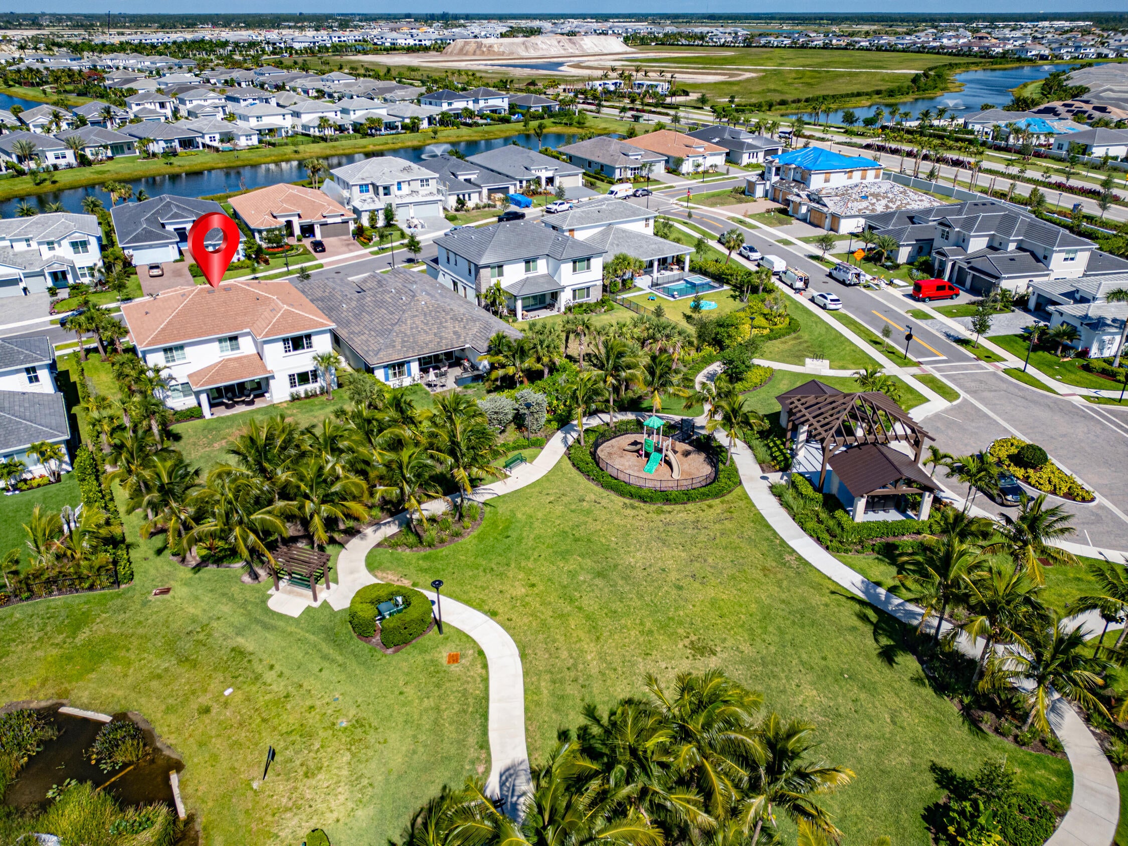 Welcome to 12277 Waterstone Circle--an elegantly upgraded and impeccably maintained home in Avenir's exclusive La Terre enclave, boasting over $250,000 in enhancements since its construction. This elegant, move-in-ready home offers timeless design, a highly desirable 5-bedroom floor plan and a prime Palm Beach Gardens location close to beaches, boating, golf, and the best shopping and dining in South Florida.Set on a premium lot with tranquil water views, the home features an expansive backyard with direct access to the adjacent park--offering a rare blend of space, privacy, and the perfect setting for a future pool or outdoor retreat. Whether you're entertaining or enjoying a peaceful escape, the layout and location are designed to elevate your lifestyle.The spacious game room with a pool table offers an ideal spot for entertaining and family fun. The home is illuminated with recessed LED lighting, a custom built-in fireplace, and designer fixtures, all complemented by elegant plantation shutters. Outdoor living is enhanced by a summer kitchen area prepped for your custom design. Additional features include a full-house generator, a top-tier water filtration system, and a fully finished garage with epoxy flooring, climate control, and a built-in EV charger. Avenir Lifestyle & Amenities Residents enjoy resort-style amenities including multiple pools, a fitness center, tennis and pickleball courts, and scenic nature trails. Nearby golf options include Sandhill Crane Golf Club and the new Nest Par 3 by Nicklaus Design. The soon-to-open Avenir Town Center will add boutique retail, dining, and entertainment just a golf cart ride away. Prime Palm Beach Gardens Location Situated in a top school district, this home is minutes from upscale shopping and dining, Atlantic beaches, world-class marinas, and Palm Beach Island. With easy access to the airport, Brightline High-Speed Train, and major highways, convenience is at your doorstep. 12277 Waterstone Circle offers a perfect blend of refined design, privacy, and location. Schedule your private tour today to experience Avenir living at its finest.