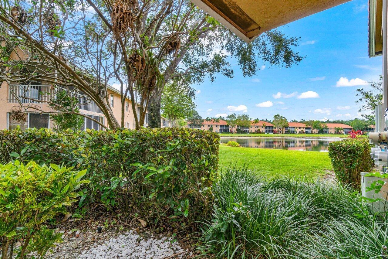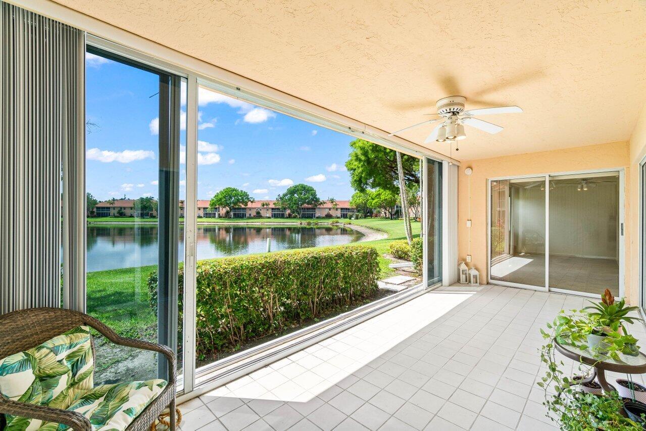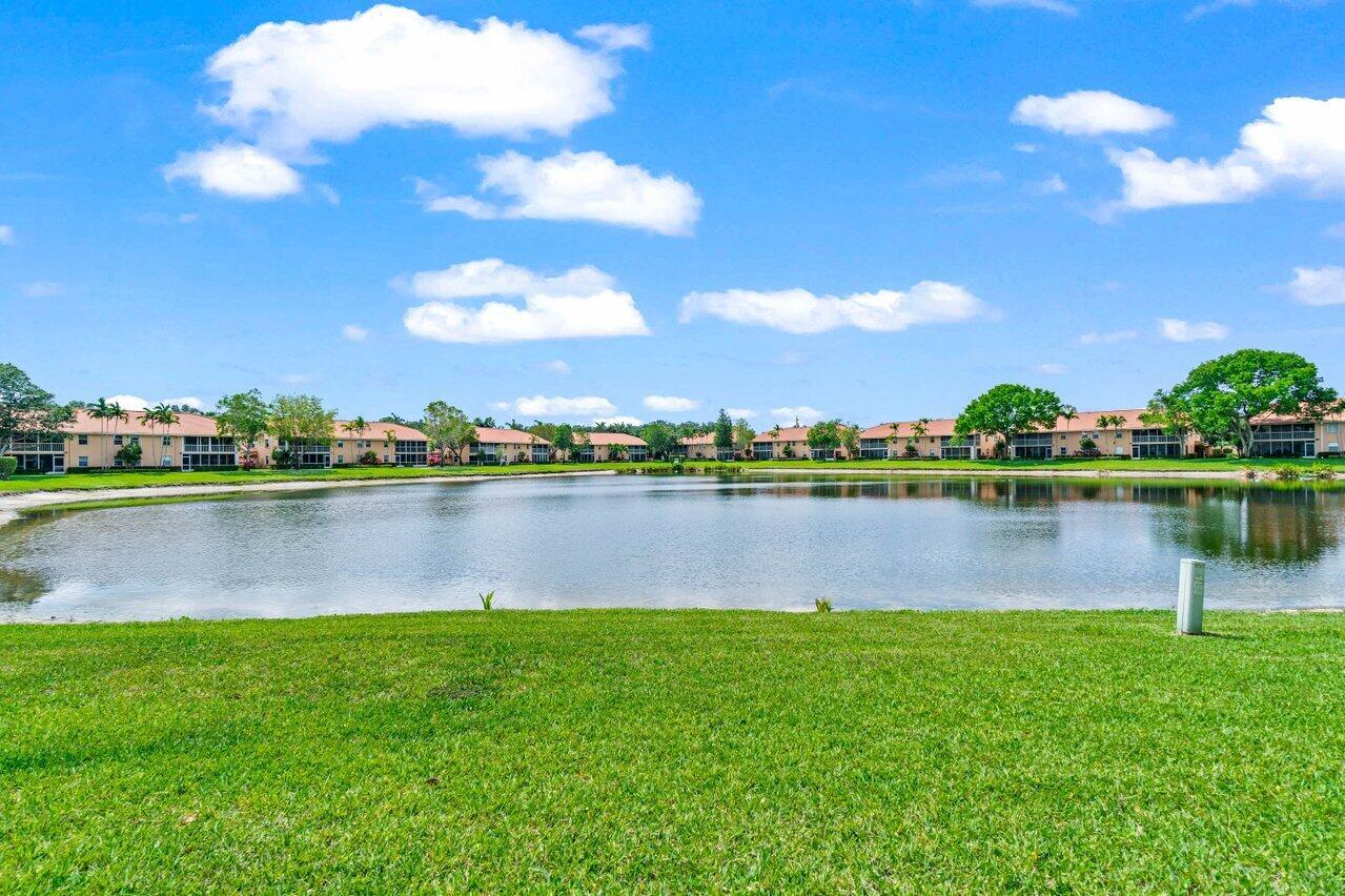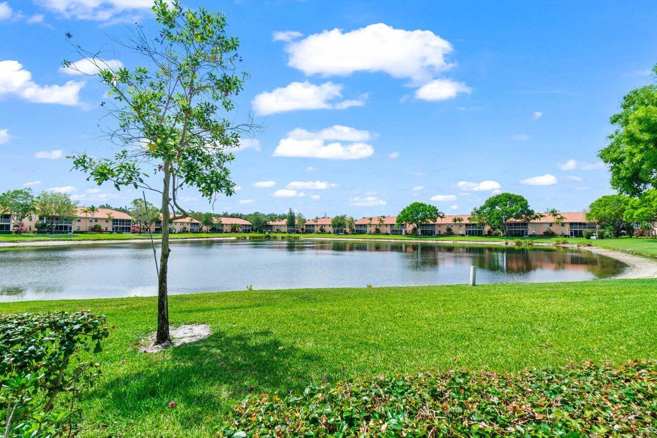 A must-see first floor, single level, three bedrooms, two bath end unit with spectacular water views from nearly every room! This private, peaceful residence has ample space for living and entertaining and two separate patios allow you to enjoy the indoor/outdoor Florida lifestyle and beautiful lake views. Tasteful interior upgrades include a new stainless-steel refrigerator, stove, and microwave in the kitchen, a newly remodeled guest bathroom, newly tiled master bedroom and shower, all the popcorn has been removed from the ceiling and the unit is freshly painted throughout! The complex will be repainted in soft hues of gray and all the assessments have been paid. Please see more.Palm Isles offers resort style amenities including a Large Active Clubhouse currently being remodeled, Indoor/Outdoor Pools, Tennis, Pickleball, Theatre, Card Rooms, Billiards, Ceramics, Men's and Women's Exercise Facilities and a Cafe for breakfast and lunch!