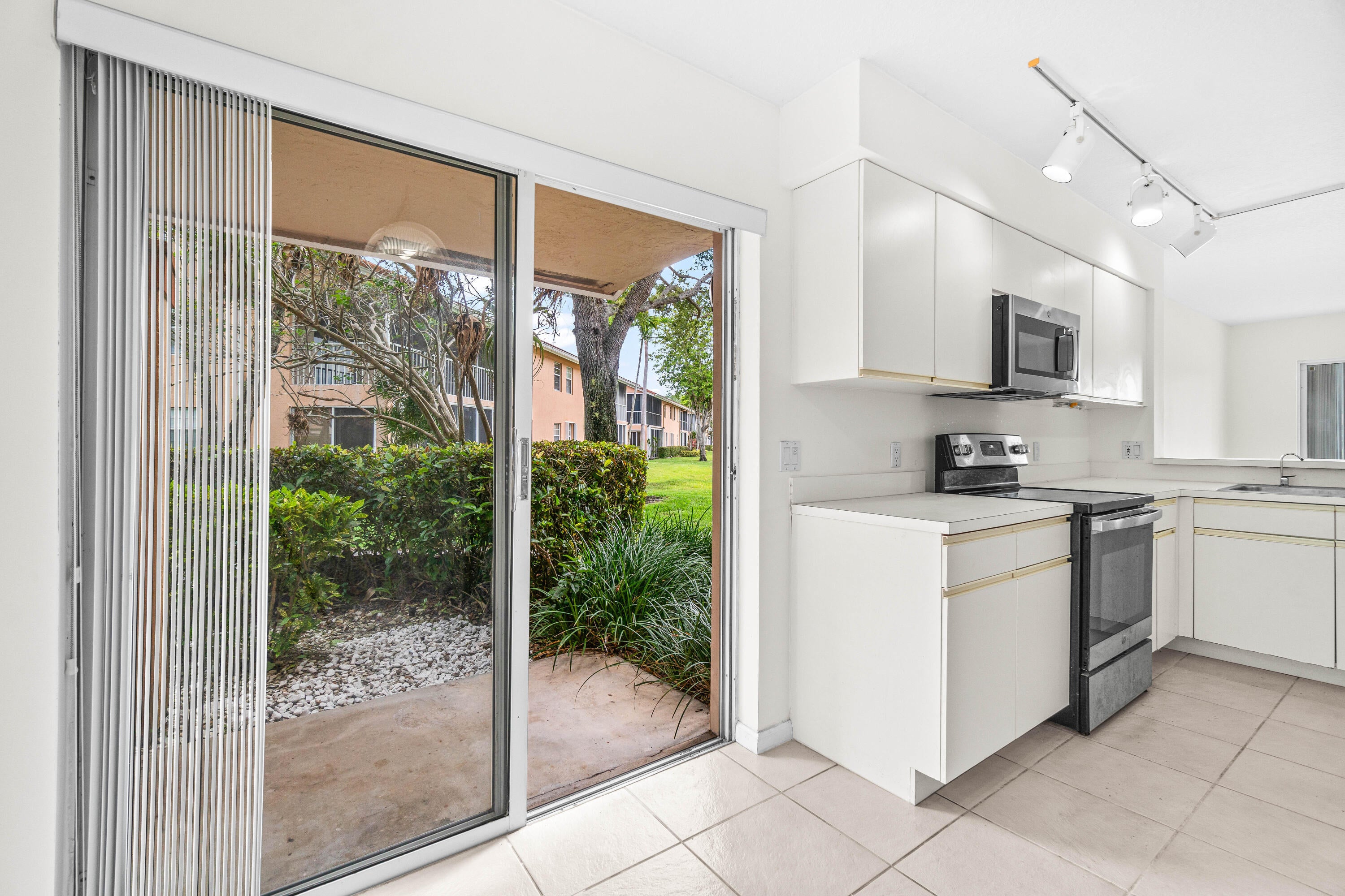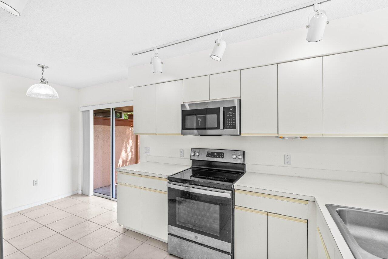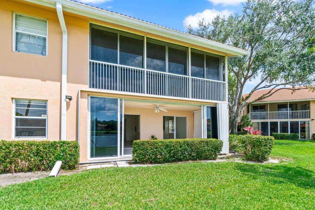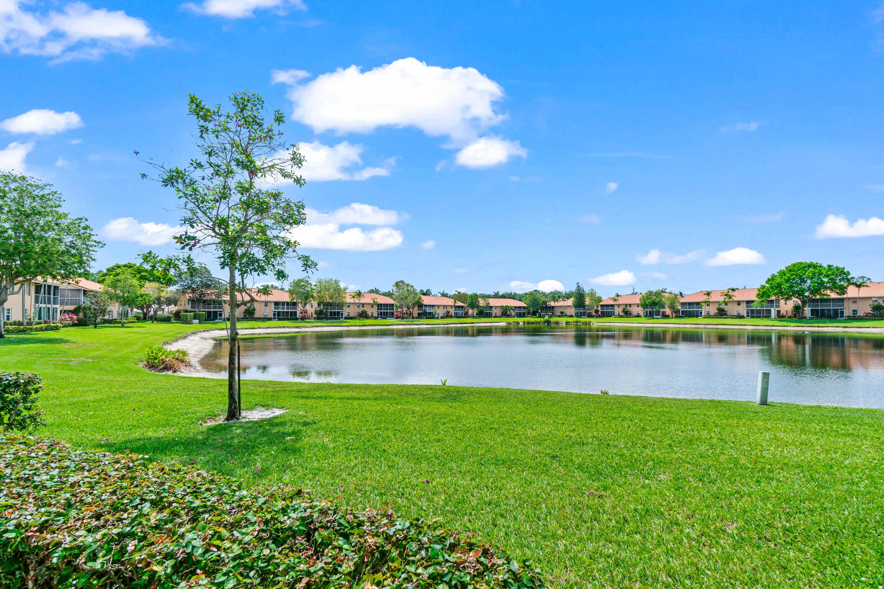A must-see first floor, single level, three bedrooms, two bath end unit with spectacular water views from nearly every room! This private, peaceful residence has ample space for living and entertaining and two separate patios allow you to enjoy the indoor/outdoor Florida lifestyle and beautiful lake views. Tasteful interior upgrades include a new stainless-steel refrigerator, stove, and microwave in the kitchen, a newly remodeled guest bathroom, newly tiled master bedroom and shower, all the popcorn has been removed from the ceiling and the unit is freshly painted throughout! The complex will be repainted in soft hues of gray and all the assessments have been paid. Please see more.Palm Isles offers resort style amenities including a Large Active Clubhouse currently being remodeled, Indoor/Outdoor Pools, Tennis, Pickleball, Theatre, Card Rooms, Billiards, Ceramics, Men's and Women's Exercise Facilities and a Cafe for breakfast and lunch!