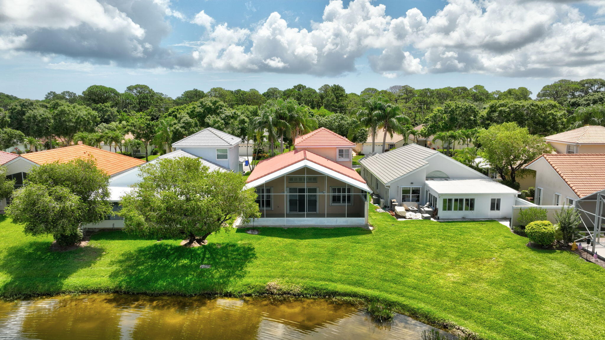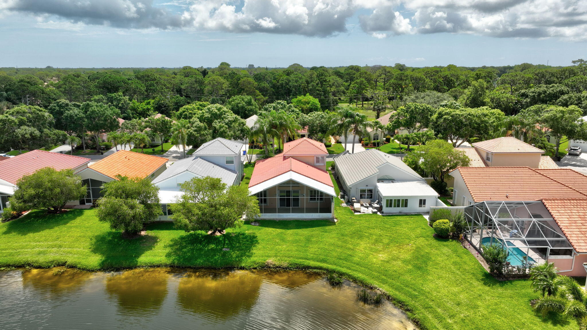 BRAND NEW KITCHEN! This beautiful home has gorgeous lakeviews and over 2000 square feet of living space! The first floor features large living areas, an open eat-in kitchen, half bath for visitors, large screened patio and a generous primary suite. Second floor has two additional bedrooms and a full bath. Lots of closet space and a two car garage offer plenty of storage options. Also beautiful plantation shutters throughout the interior and accordion shutters on the outside for storm season.HOA fees include lawn, cable, internet, alarm monitoring, gate and the recreational facility. Charter Club's location is ideal in the center of Palm City. Walking distance to shopping and dining. Convenient to highways and those beautiful Treasure Coast beaches close by! No polybutylene pipes!!