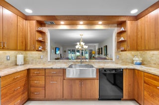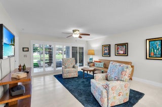 Beautifully renovated 1st fl corner 2BR/2B unit with water views in front & rear in well maintained 55+ community. Large eat in kitchen with solid cherry wood cabinets with soft close drawers, under mount lighting, quartz countertops, marble back splash, high hat, new style farmers SS sink, all new plumbing shut off valves, newer appliances, A/C 2023, water heater 2022. Custom plantation shutters, accordion shutters throughout, 24x24 tile throughout. Low maintenance fees to include fiber optic TV service with over 200 channels & showtime bundle, internet, alarm system, water, sewer, trash pickup. Community activities include water aerobics, exercise strengthening, pickleball/tennis & bocce & shuffleboard courts, shows & parties, breakfast etc.Clubhouse has office with manager on site, billiard tables, card rooms, fitness center, etc Well funded reserves. Very financially sound
