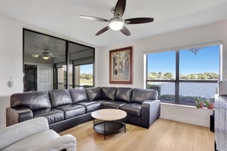 This beautiful first floor apartment overlooks the lake of Tradewinds Park. From the moment you walk in you can see the breath-taking views of the lake. The entire apartment is renovated, and all appliances have been updated. A linen closet has been added to the hallway. All five closets have been completely built out with shelving and hanging systems. Solid wood doors throughout, as well as hurricane proof front door. Accordian shutters on windows with patio rain shutter. Both bathrooms are renovated. Laminate flooring throughout with tiling in kitchen and bathrooms. The condominium board requires buyers to have a credit score of at least 700 with 15% down.