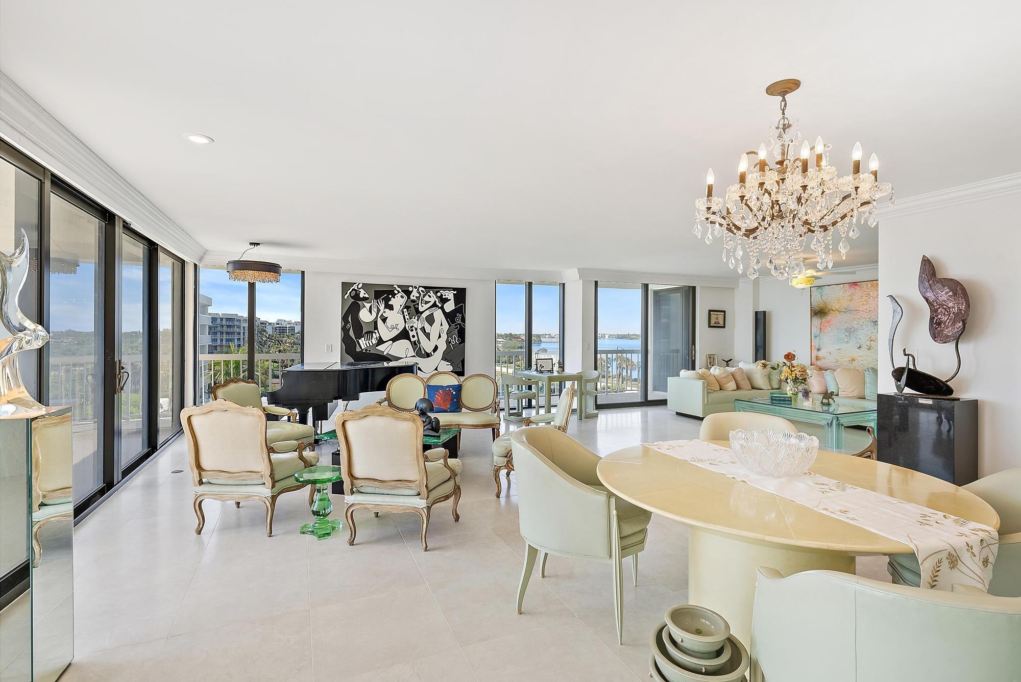 Enjoy breathtaking ocean and Intracoastal views from this beautifully renovated and fully furnished 2-bedroom + ''den-area'', 2.5-bath residence at the prestigious Meridian in Palm Beach. This spacious apartment features newly installed porcelain tile flooring, a sleek open-concept kitchen with custom cabinetry and stainless-steel appliances, and elegantly furnished, which is immaculately maintained. The thoughtfully designed layout includes two en-suite bedrooms and a 3rd bedroom that has been incorporated into the living room. The bright and airy living space opens to two private balconies--one with southeast exposure offering sweeping ocean vistas, and the other showcasing stunning direct Intracoastal views, allowing one to enjoy both sunrise and sunset views. The primary suitenjoys access to both balconies through floor-to-ceiling sliding glass doors, enhancing the serene ambiance. This residence with ~2300 square feet of living area also include a full-size washer and dryer, ample storage, and covered garage parking. Recently reimagined with a fresh resort-inspired renovation, The Meridian now offers residents a truly elevated coastal lifestyle. Enjoy a stunning new pool deck with chaise lounges, umbrellas, and a covered dining area, as well as direct access to the beach perfect for relaxing in style. Additional amenities include newly resurfaced tennis courts, a state-of-the-art fitness center, sauna, and a 24-hour manned gatehouse, creating an exclusive and private setting. Ideally located just minutes from Palm Beach's world-class shopping, dining, golf, and cultural destinations. Available for seasonal leasethis is your opportunity to embrace the best of Palm Beach living.