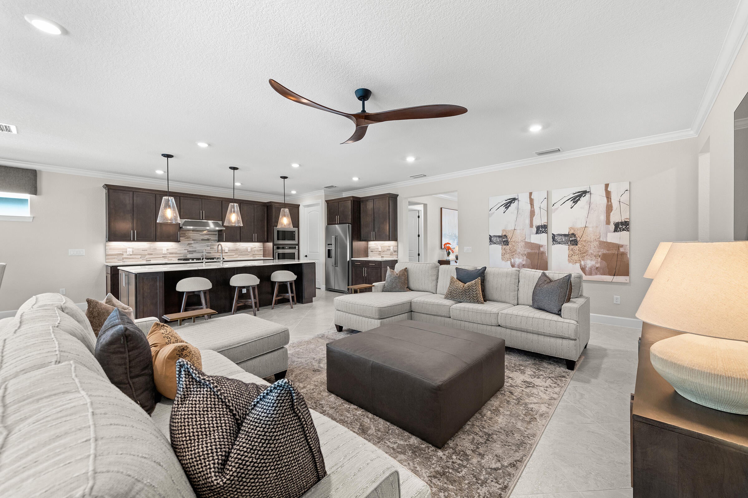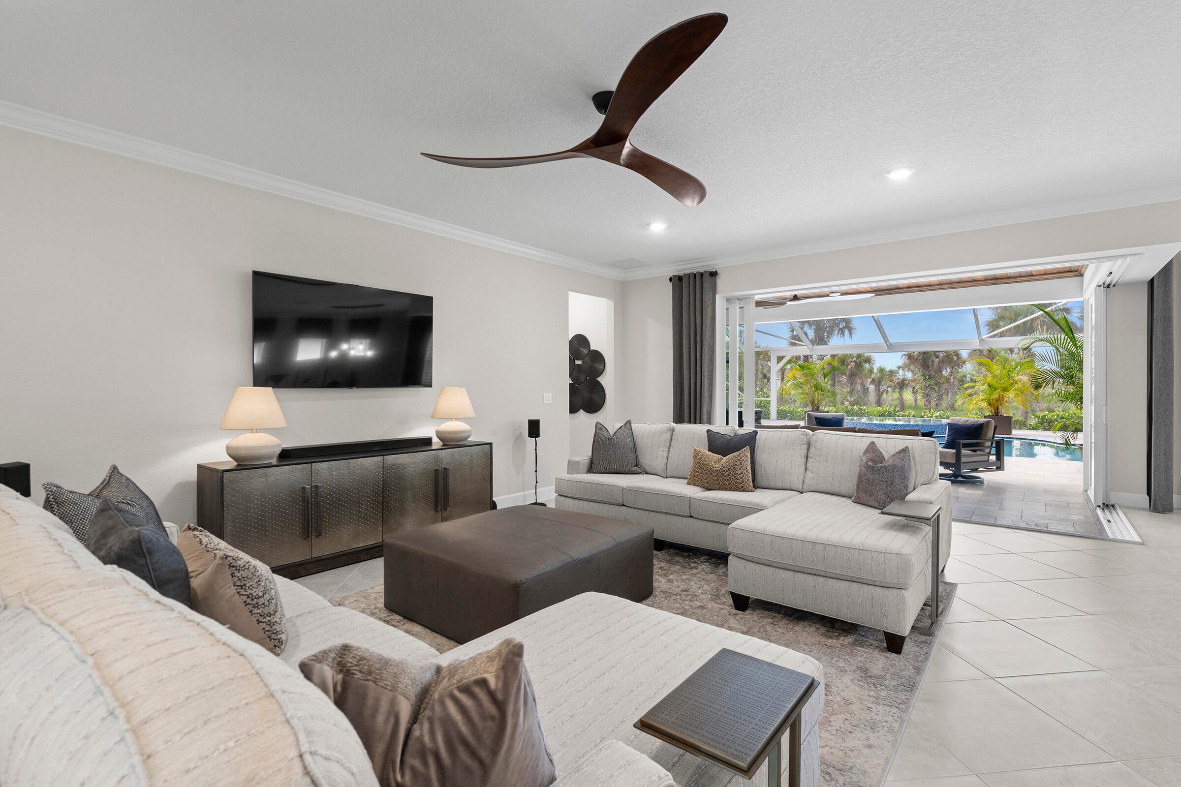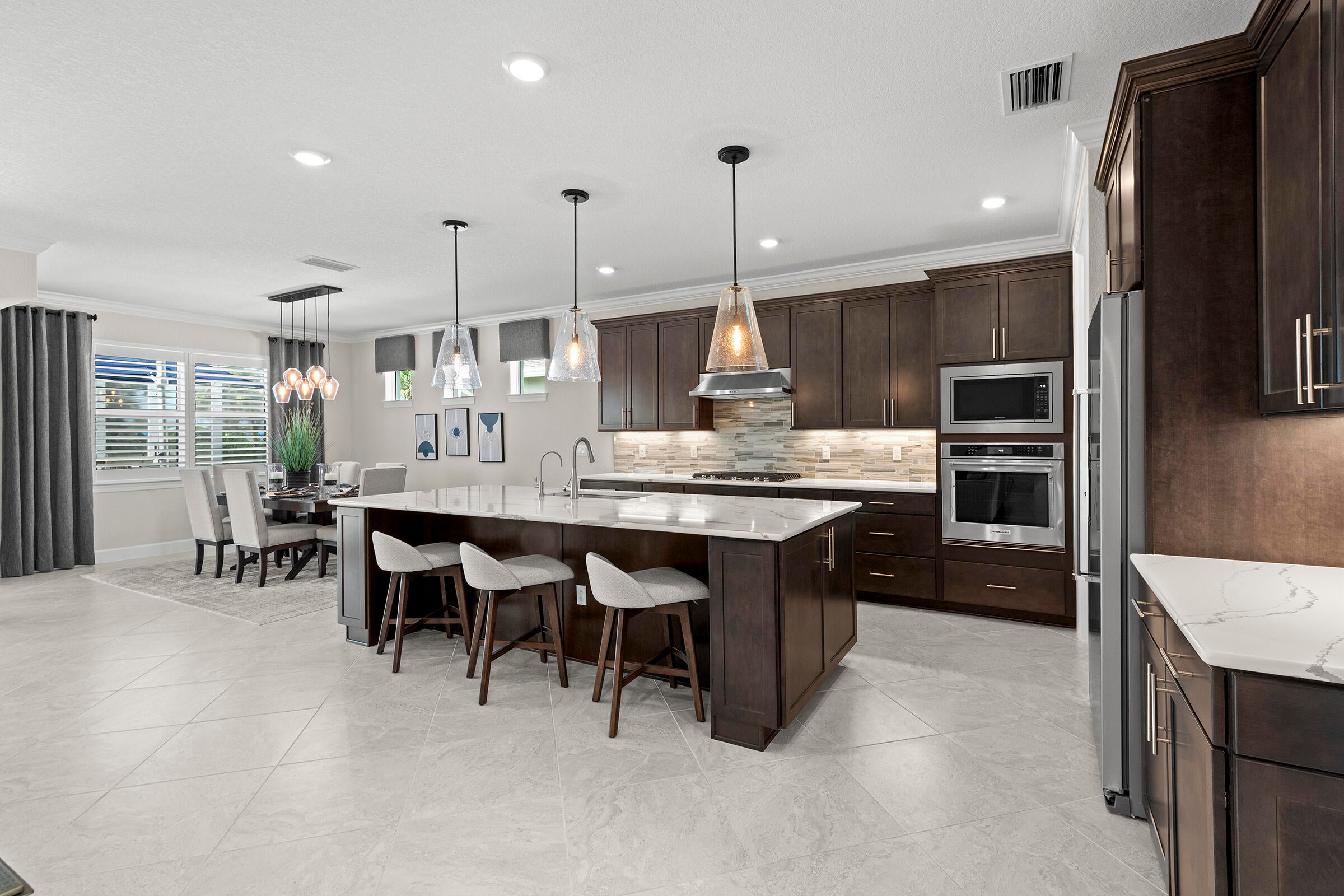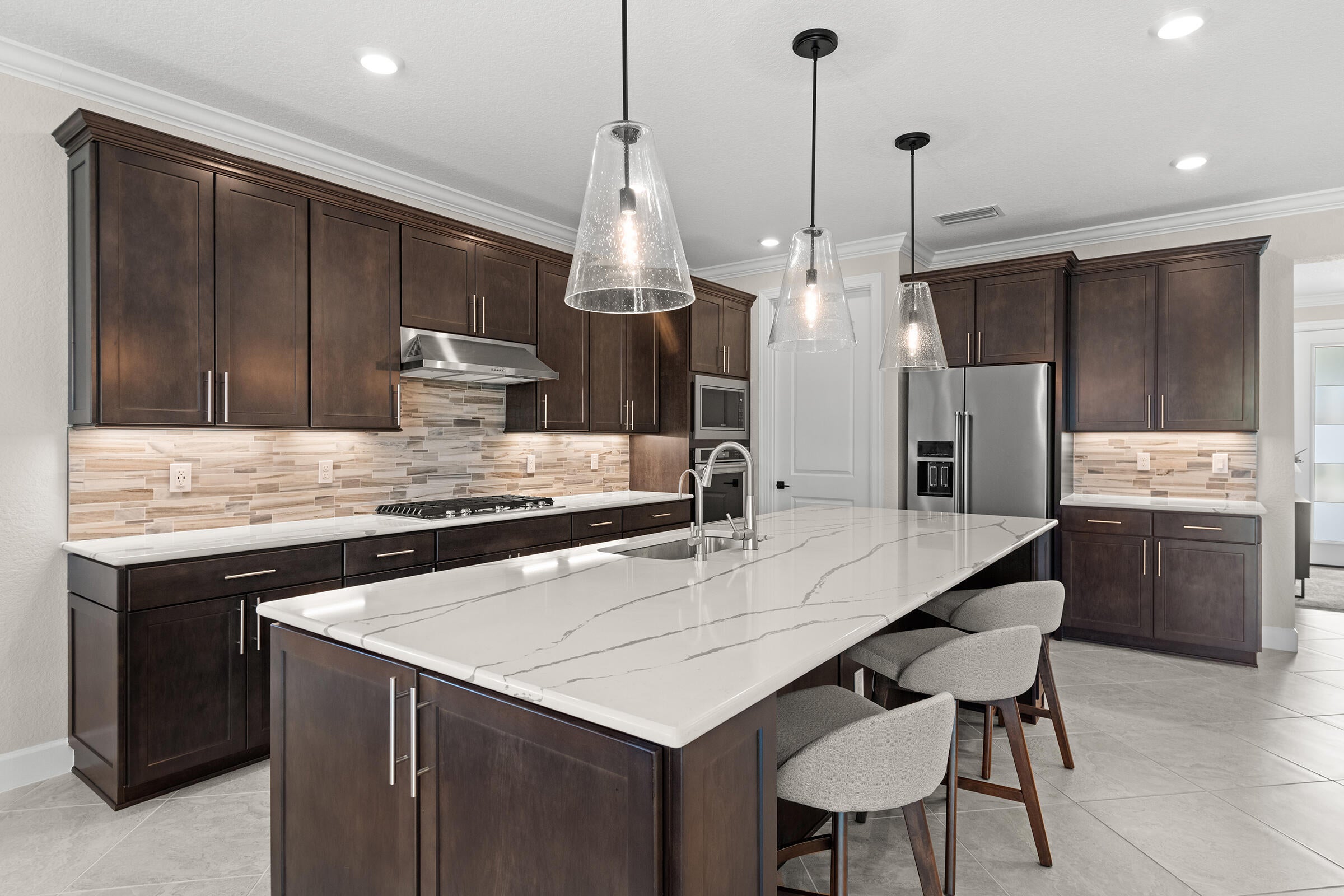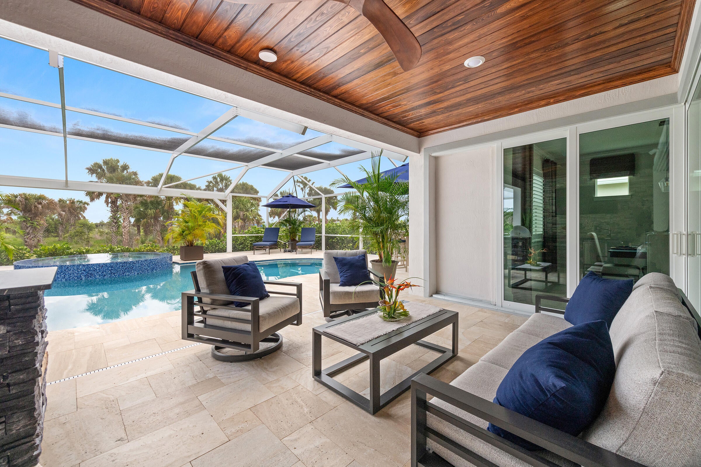 Experience unmatched privacy in this stunning 3 bed, 3 bath + flex room, 3-car garage home built in 2024 in Del Webb at Tradition. Perfectly situated at the end of a cul-de-sac with no neighbors to the left or behind and expansive preserve views, this is the only lot of its kind in the community. Enjoy your private outdoor oasis protected by an upgraded mesh screen enclosure with a heated pool, spa, sundeck, and full summer kitchen. Inside, this upgraded home offers an open layout, high ceilings, and designer finishes throughout. The gourmet kitchen features quartz counters, soft-close cabinetry, and stainless steel appliances. Relax in the luxurious primary suite with spa-style shower, or entertain in the expansive living area! Conveniently location close to all major amenities!Whether you're relaxing by the pool, entertaining guests, or enjoying the serene view of the lush preserve, this home delivers the ultimate Florida lifestyle with no through traffic and no compromise on luxury. A truly rare gem in one of Tradition's most sought-after resort style communities.