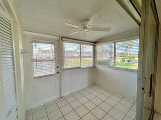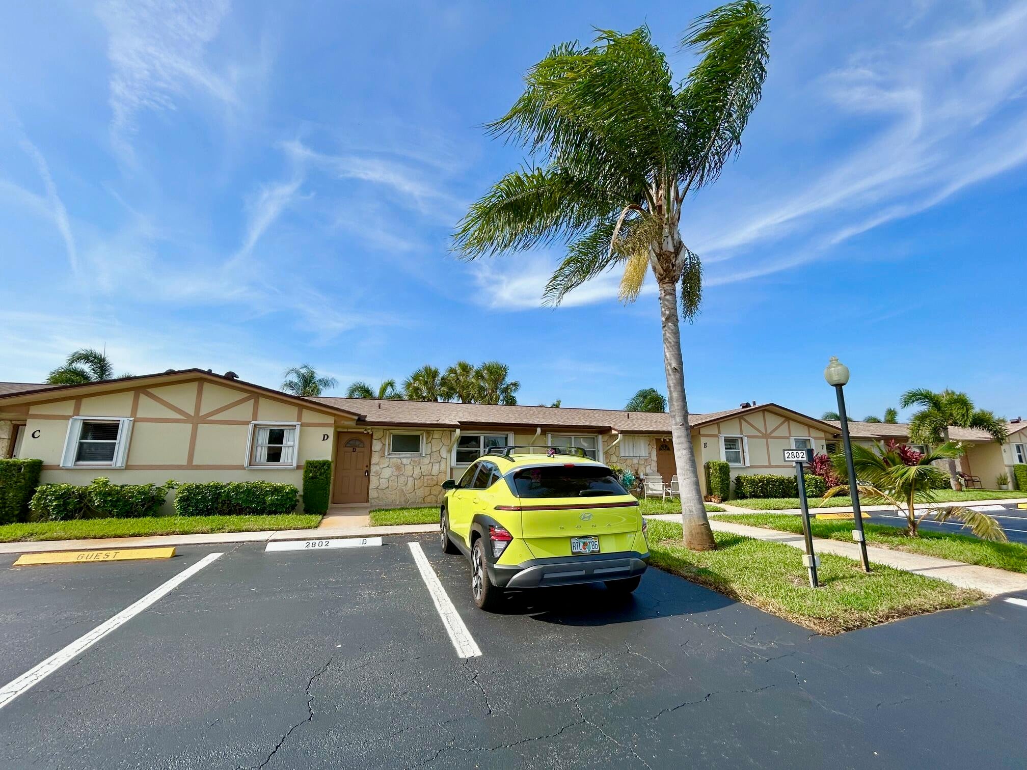 2 bedroom 1 bath villa located in the 55+ community of Cresthaven Villas. Tile flooring throughout, newer A/C. accordion hurricane shutters on all the glass windows & doors. Enclosed porch with large walk in storage closet as well as an open air patio for BBQing. Convenient parking right out the front door. Common laundry room just a few steps away complete with 2 washers, 2 dryers and clothes line. Each villa has their own dedicated laundry time every week. Low monthly maintenance of $482.30 includes water, internet and cable, building maintenance, lawn care and the recreational facilities. Community offers a resort style heated swimming pool, showers, sauna, locker rooms, fitness center, billiards, card room, library, & more. Close to beaches