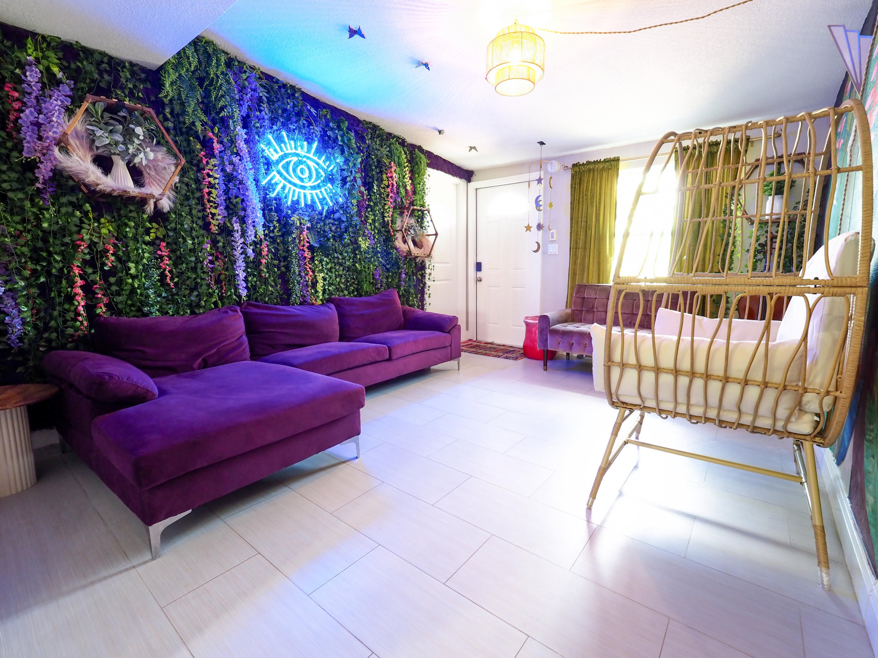 Welcome to your oasis in downtown Palm Beach Gardens! This vibrant 3br/2ba home features whimsical wallpapers & lush floral patterns, creating a dream atmosphere. Explore the enchanting food forest. Sleep under the stars in the unique geodesic dome, blending nature with comfort. This stunning modern home is just minutes from pristine beaches, shopping, dining, and more, this location offers endless adventures. With easy Uber access, your magical getaway awaits--experience the charm and beauty of this extraordinary space! Hurricane impact windows, carport with driveway. Term negotiable. Furnished only. Annual or Seasonal Rates Available. Call for more info on Short-Term options available.