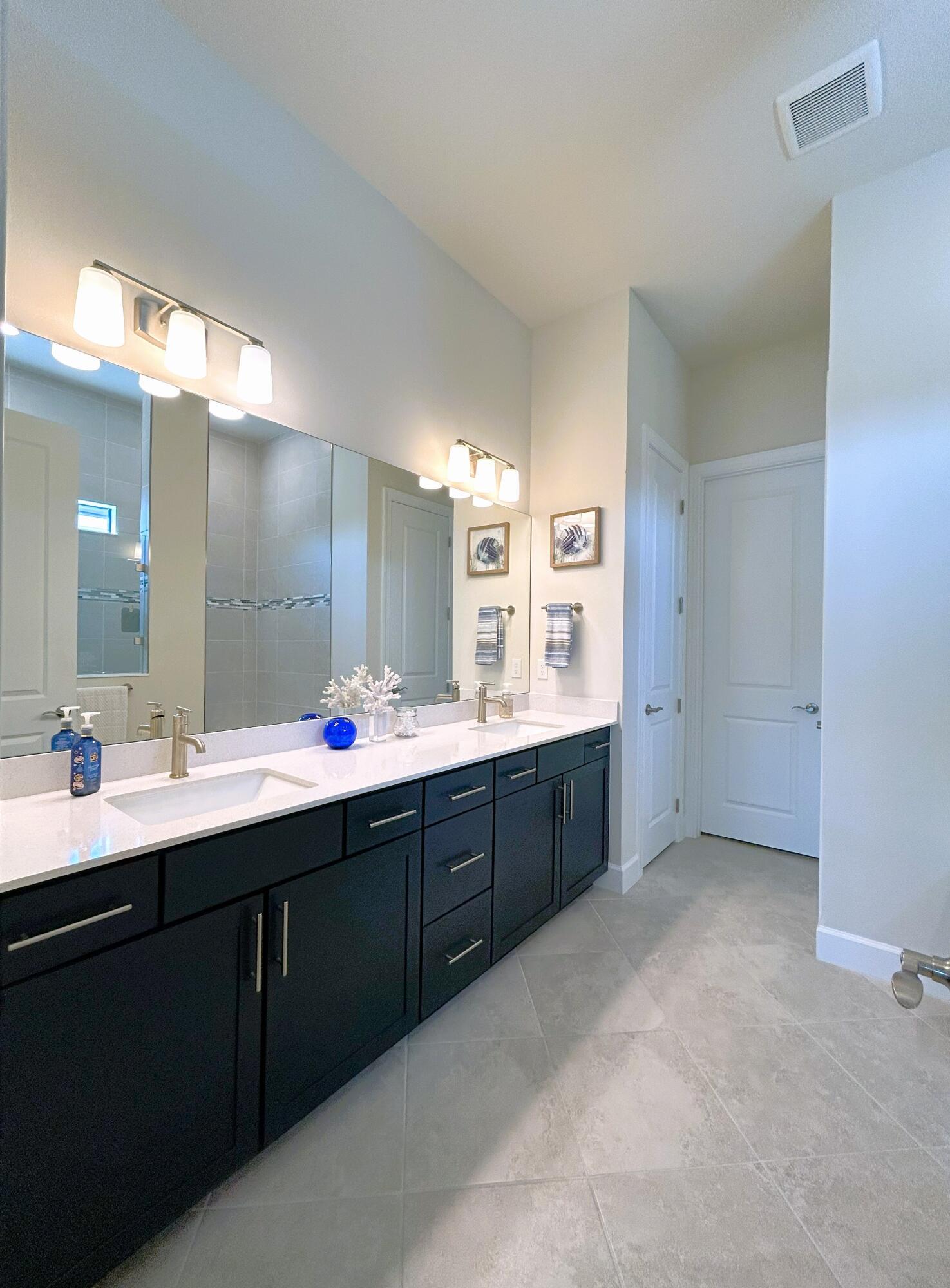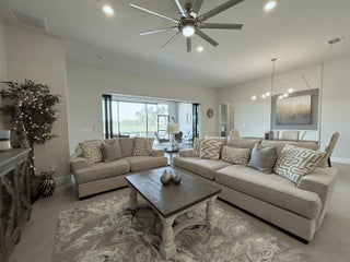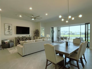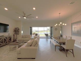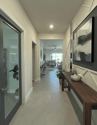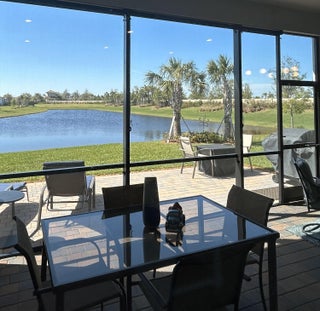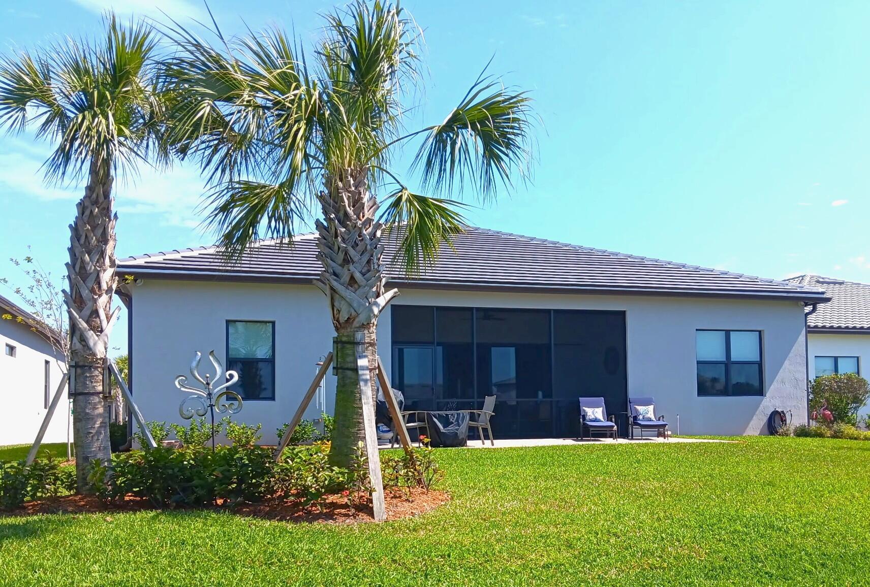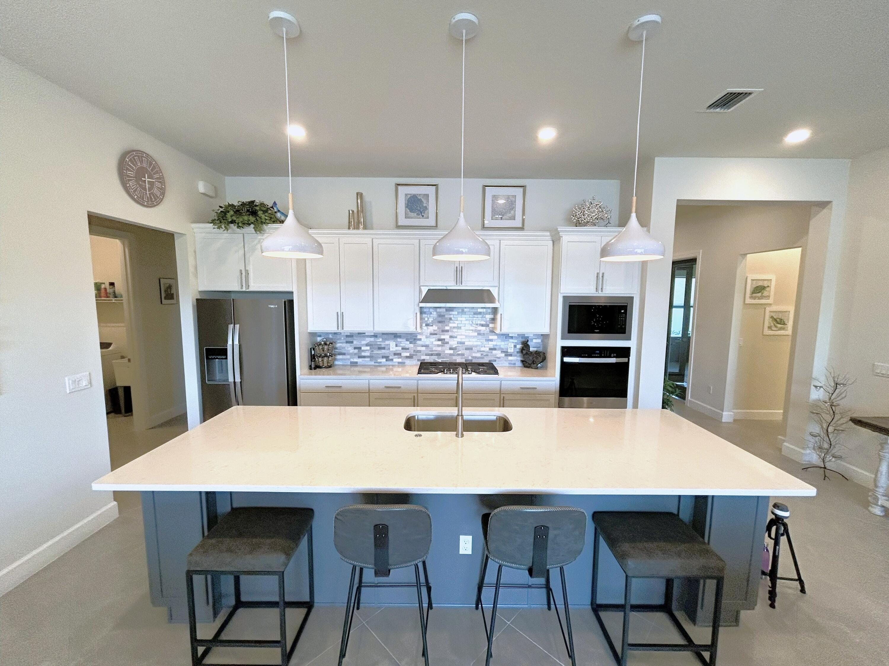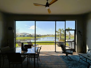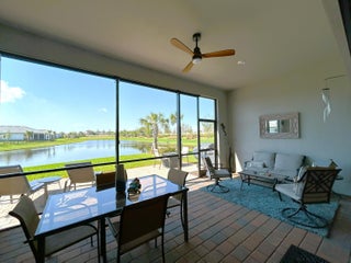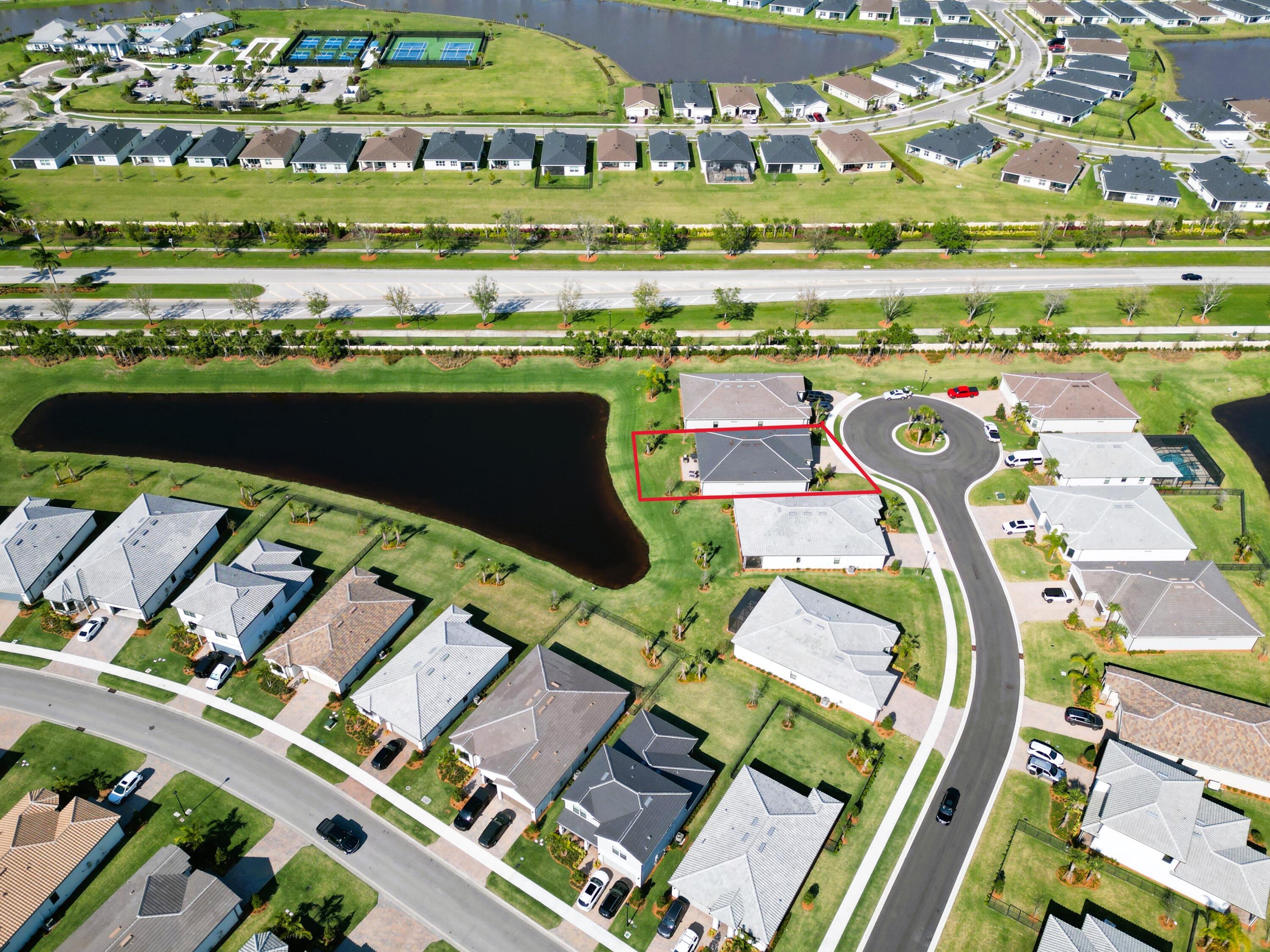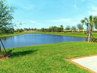 This ''ASHBY'' model home located in the highly sought after Veranda Gardens at the end of a very small, quiet and private cul-de-sac. Please come see this immaculate, like new, 2024, 3 bed, 2.5 bath home w/ office/den. Upon entering you will notice the 10' ceilings, 8' doors, abundant natural light and fabulous lake view thru the 20' wide pocket doors. The office/den is entered thru custom French doors, open concept living, spilt floorplan, large diagonal ceramic tile flooring, surrounded by high impact windows/doors. The kitchen boasts all SS appliances, gas cooktop, quartz and custom tile backsplash. Two tone soft-close cabinets/drawers, 11' island for entertaining. Lovely accent walls and custom paint. Pri suite provides space w/ a water view & tray ceiling.Pri bath has dual sinks, high custom tile shower/bench & massive walk-in closet. Guest rooms have plenty of space w/ a shared bath furnished with modern hardware & quartz countertops. As you exit to the lanai thru the pocket sliding doors to the large backyard screened & shaded lanai, you cannot help but appreciate the panoramic lake view. An extended paver patio allows for one to enjoy the midday sun or great for a place to grill. Noteworthy in the laundry room is the cabinets, sink & folding table right next to a large walk-in pantry with plenty of shelving & mudroom. The 3 car garage includes two 8' overhead storage racks, great custom workbench with tool rack, soft close hardware & epoxy high glaze finished floor. This home includes over $85,000 in builder and owner upgrades, is very energy efficient with tons of storage throughout. Every room has designer ceiling fans and lighting. The community has nearby grocery, dining, shopping, & the FL Turnpike and I-95 and area beaches.