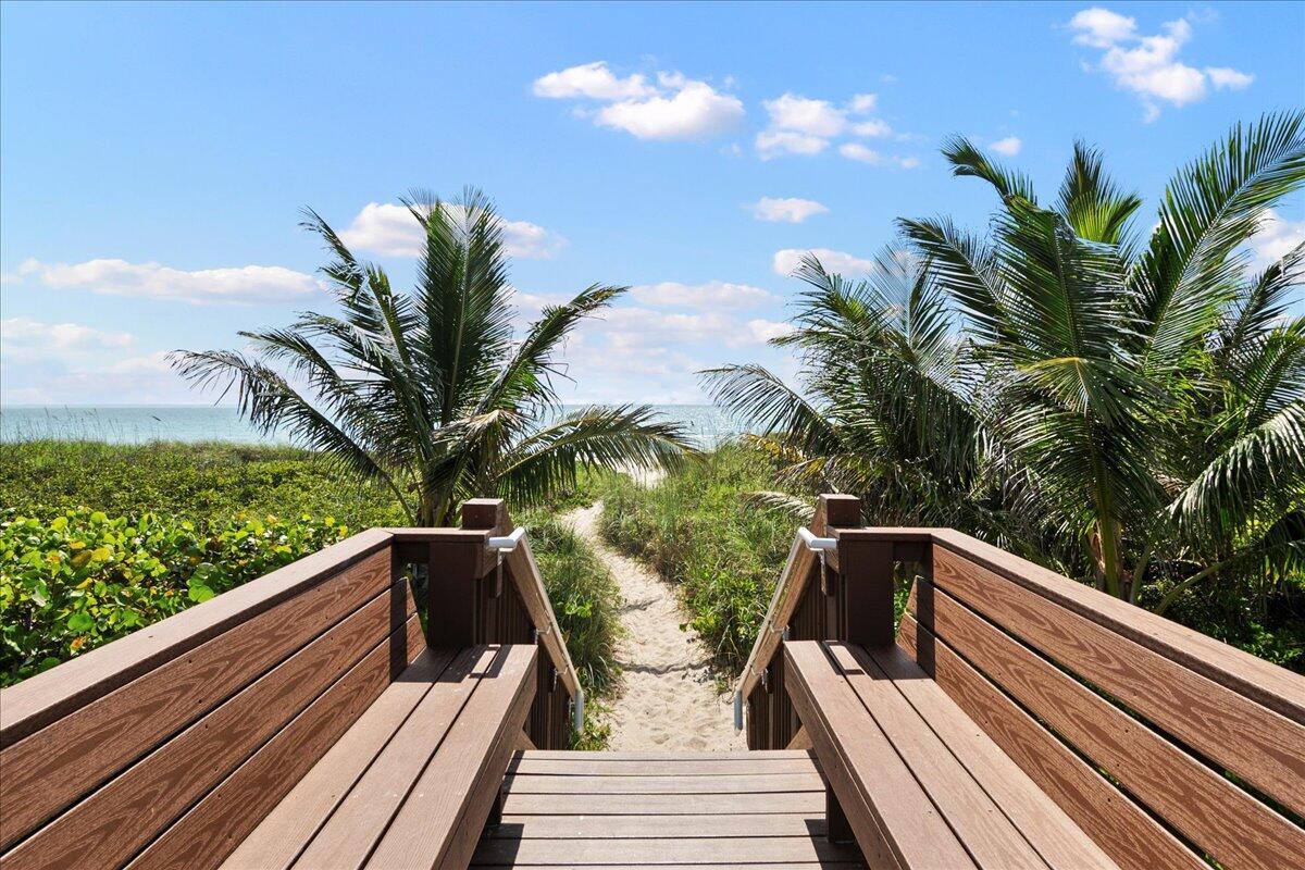 Island Living Awaits - 2 Bed, 2 Bath, Seasonal, Fully Furnished, turn-key, Corner Condo on Hutchinson Island. Welcome to effortless coastal living in this beautifully appointed 2 bedroom, 2 bath corner-unit condo, located in one of Hutchinson Island's most sought-after oceanfront communities. Positioned on the 4th floor of a solid concrete building, this spacious residence offers a glimpse of the ocean from a wraparound covered balcony--complete with sliders and accordion shutters for added security and comfort. Inside, you'll find an inviting open layout with tile flooring throughout and a generously sized kitchen featuring granite countertops, full granite backsplash, and solid wood cabinetry--ideal for entertaining or everyday living. The in-unit laundry adds everyday convenience, whilethe A/C and water heater are smartly located in a separate closet just outside the unit, giving you additional interior storage space. The freshly painted interior creates a bright and welcoming ambiance, and the serene primary suite features a large walk-in closet and a spacious vanity. Plus, there's additional storage right outside your door. Step outside your front door to discover resort-style amenities: private deeded beach access, a heated pool and spa, tennis and pickleball courts, shuffleboard, a fully equipped gym with sauna, kayak launch, community fishing dock, billiards room. Whether you're looking to relax or stay active, this community has it all. Experience the best of Hutchinson Island living where sunsets, sea breezes, and the soothing sound of the surf are part of your everyday life. Schedule your private showing today and make this exceptional condo your coastal retreat!
