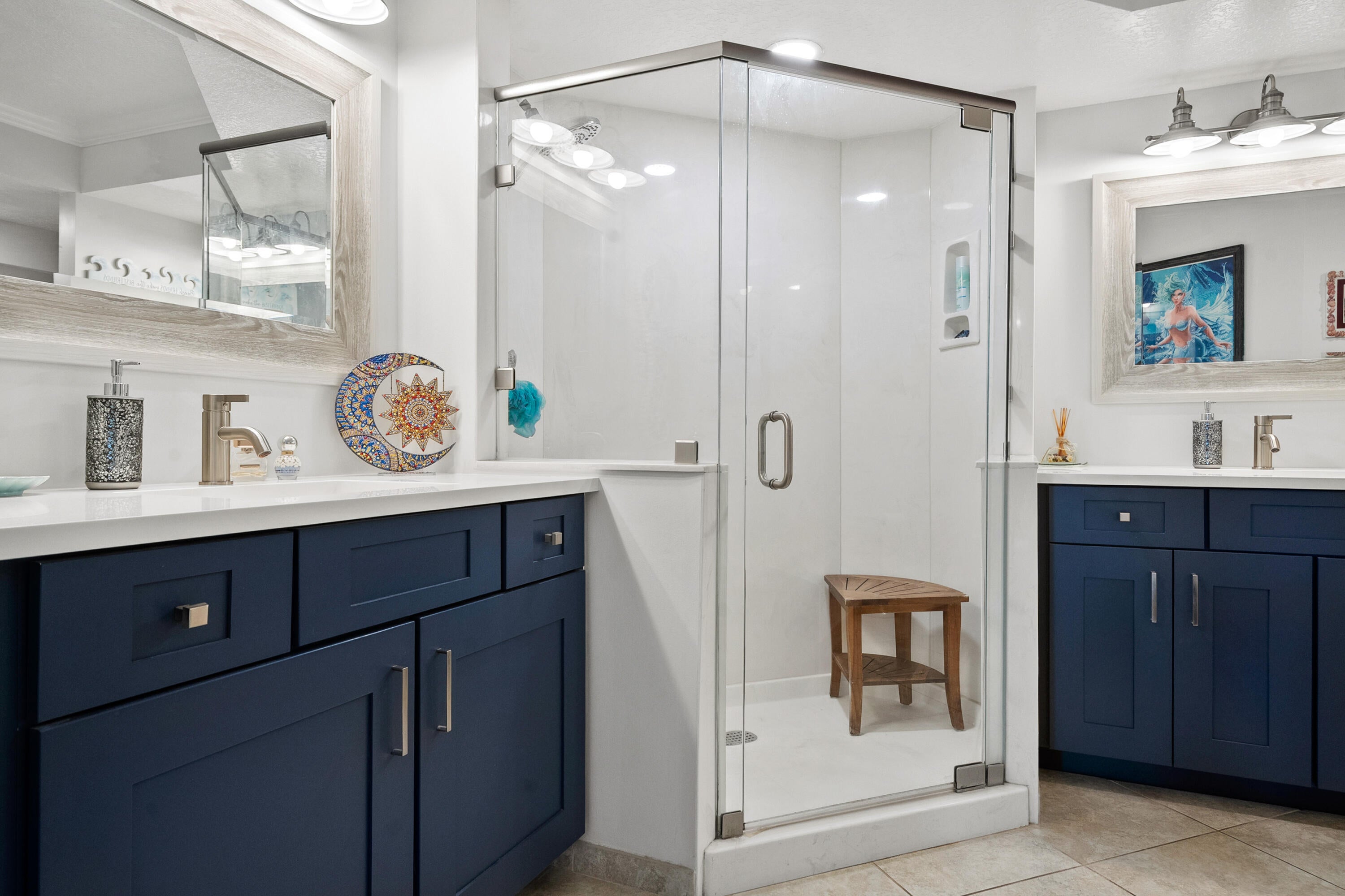 This stunning 2 bedroom, 2 bath oceanfront & Intercostal condo at Seaward offers newly upgraded features with a lovely coastal flare. Upgraded kitchen and bath cabinetry, quartz countertop and newer appliances. This property also comes with a covered parking space and beach locker. Enjoy the convenience of an elevator and all the great amenities that include community pool, club room, fitness room, pickleball, deeded beach access, and a fishing dock and kayak launch on the intracoastal! All the views and the sound of the waves is an experience coastal living at its finest.