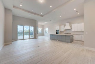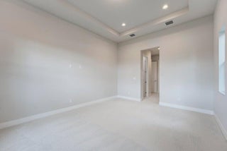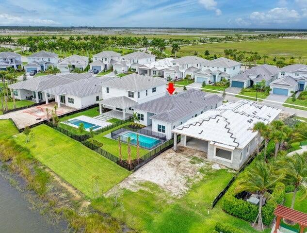 4/3/2 with water pool. 4th bedroom is a den. The Sabrina's welcoming covered entry and foyer flow into an inviting hallway with 12' ceilings revealing a bright and open floor plan has 3 bedrooms with Den. The well-designed expanded kitchen features a large center island with breakfast bar, plenty of counter and cabinet space and pantry. The expansive primary bedroom suite is highlighted by dual walk-in closets and deluxe primary bath with soaking tub and separate shower and private water closet. The large great room with expansive sliders to rear covered lanai overlooking the pool and area.