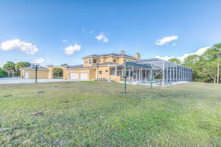 Incredibly built 7 bedroom, 9 full & 2 half bathroom pool home on 5 acres. Exclusive and luxurious, this home offers everything one desires in a custom-built private estate. Enjoy 630 feet of direct water frontage on navigable waterways with access to both the Ocean and Lake Okeechobee. Meticulously remodeled bathrooms and chef's kitchen, plus an outdoor summer kitchen, grand swimming pool, cabana bath, & screened enclosure. Each bedroom includes a walk-in closet, full bathroom, & expansive water views. The two-story master suite boasts his and hers bathrooms and closets with built-ins. Gated entry, smart home tech, full security system. Floor-to-ceiling stone fireplace, 3 custom staircases, 6.5 car detached garage with guest suite & office/workshop. T-1 internet, ultra-fast speed. No HOA