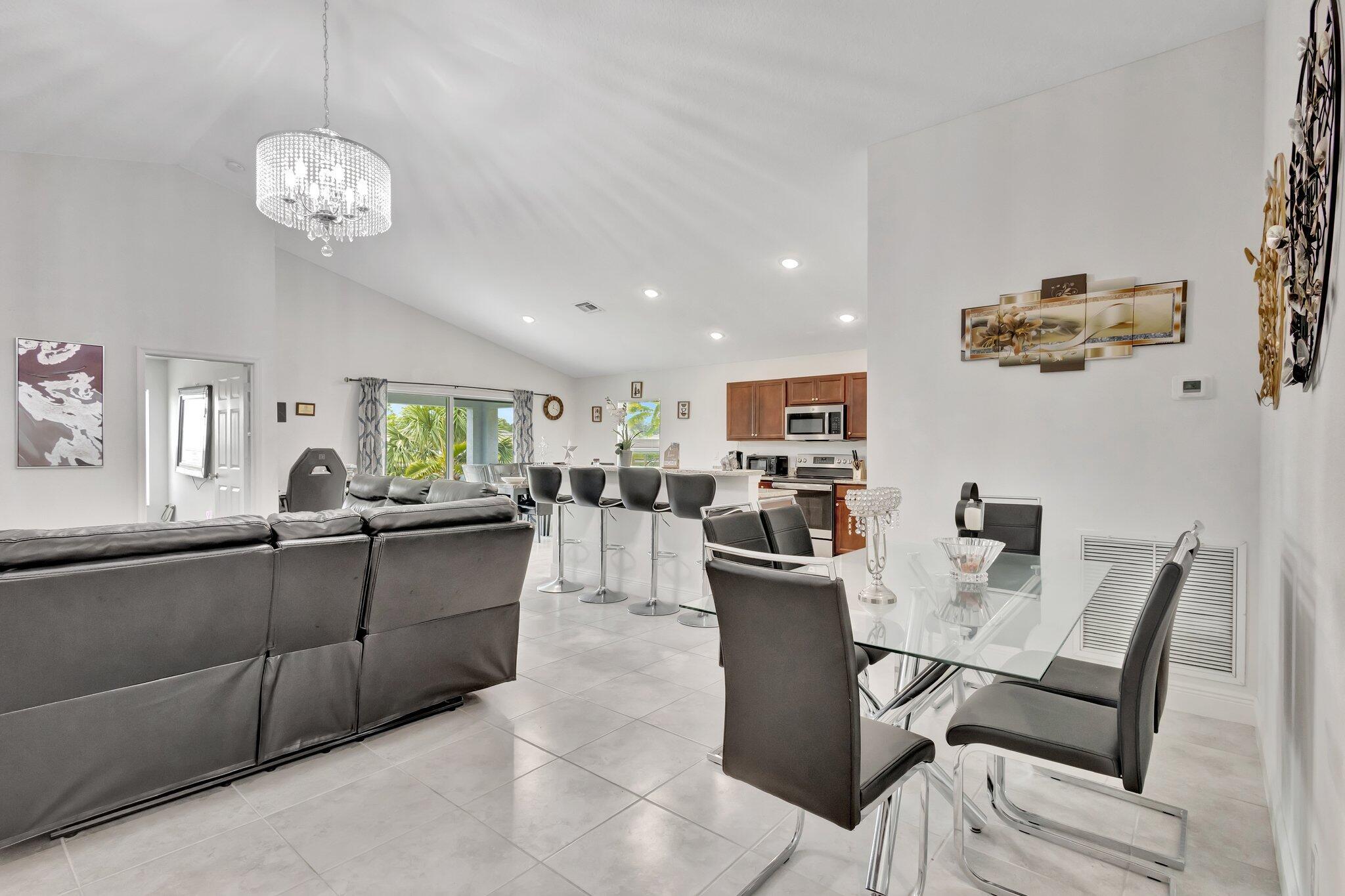 This charming 3-bedroom, 2-bath home offers a spacious open floor plan with vaulted ceilings and an inviting covered lanai. The main living areas feature 18'' ceramic tile, while the bedrooms are comfortably carpeted. The open-concept kitchen is equipped with stainless steel appliances, granite countertops, a pantry, and overlooks both the great room and dining area, making it the heart of the home.The beautifully designed master suite boasts a tray ceiling, dual oversized walk-in closets, and a luxurious master bath with a double vanity, soaking tub, walk-in shower, and a linen closet. Both bathrooms feature tiled showers and cultured marble vanities.This Community features a quiet country setting while being convenient to everything with manned security gate, resort style pool, club house, basketball courts, sidewalks & jogging trails. Low HOA dues.