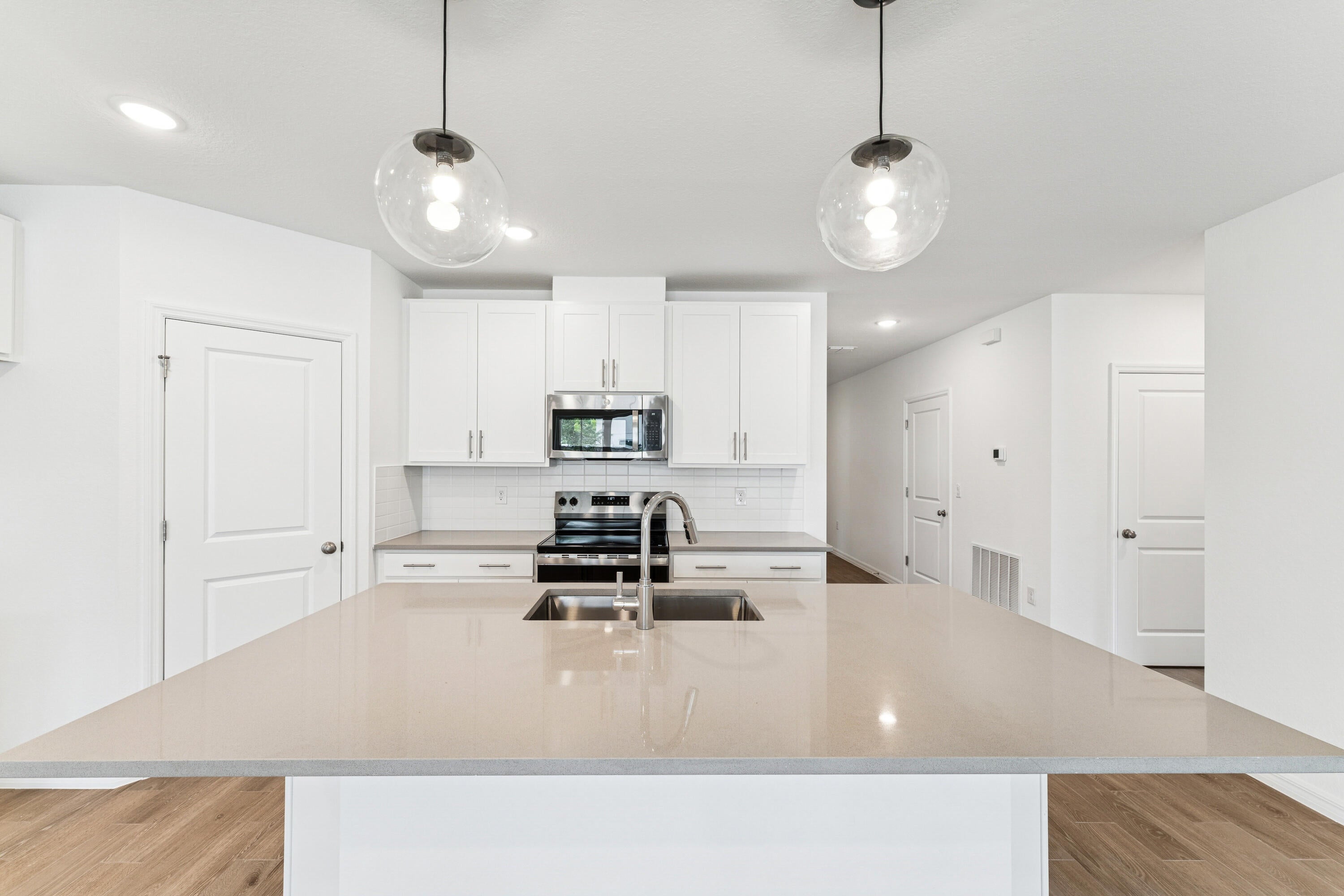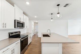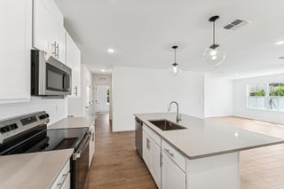 Stylish and Smart Living in the Goldenrod II - No HOA! This home's backyard will be fully fenced in with gate!Discover effortless style and modern convenience in the Goldenrod II, crafted with a fresh, Loft-inspired design. The open-concept kitchen is a showstopper, featuring crisp Aristokraft White cabinets, paired with a bold Meridian Grey quartz island. Accented by floating shelves and chic pendant lights, this kitchen is built for both form and function, complete with GE stainless steel appliances.A spacious dining area flows naturally to a covered patio, creating the perfect setup for indoor-outdoor entertaining. The secluded primary suite offers comfort and privacy, with a well-designed walk-in closet and a sleek bathroom finished with polished chrome fixtures.space and a built-in home technology package-perfect for today's connected lifestyle. Best of all, enjoy all these modern perks with zero HOA fees! Available Fall 2025. Call to tour today!