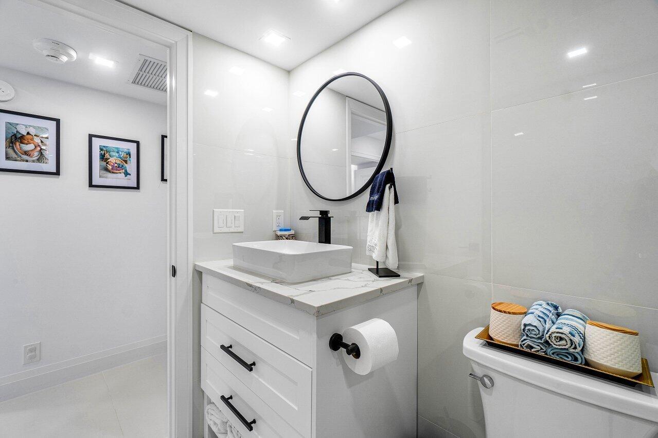 Welcome to Your Dream Condo at Lake House South! Nestled in the heart of Boca Raton, this stunning two-bedroom, two-bathroom condo offers the perfect blend of coastal elegance and modern luxury, right on the shores of picturesque Lake Boca. Just steps away from the ocean, this beautifully redesigned residence invites you to experience the ultimate in waterfront living. Spanning an impressive 1,474 square feet, you are greeted by exquisite porcelain flooring that flows seamlessly throughout the space, creating a bright and airy atmosphere. The open-concept layout is bathed in natural light, enhanced by impact windows that offer both safety and stunning views of the serene surroundings. The living area is equipped with motorized shades. This impeccable property is a must see!!!The gourmet kitchen is a chef's dream, featuring high-end GE appliances, including a wine fridge that perfectly complements your entertaining needs. A stylish pot filler adds convenience and elegance to your culinary experience. Retreat to your spacious balcony, adorned with beautiful tile, where you can savor morning coffee or unwind at the end of the day, taking in the gentle lake breeze. This condo truly embodies the essence of chic coastal living, with every detail carefully curated for comfort and style. Don't miss the opportunity to make this exceptional property your own. Schedule a viewing today and step into a lifestyle of luxury at Lake House South!
