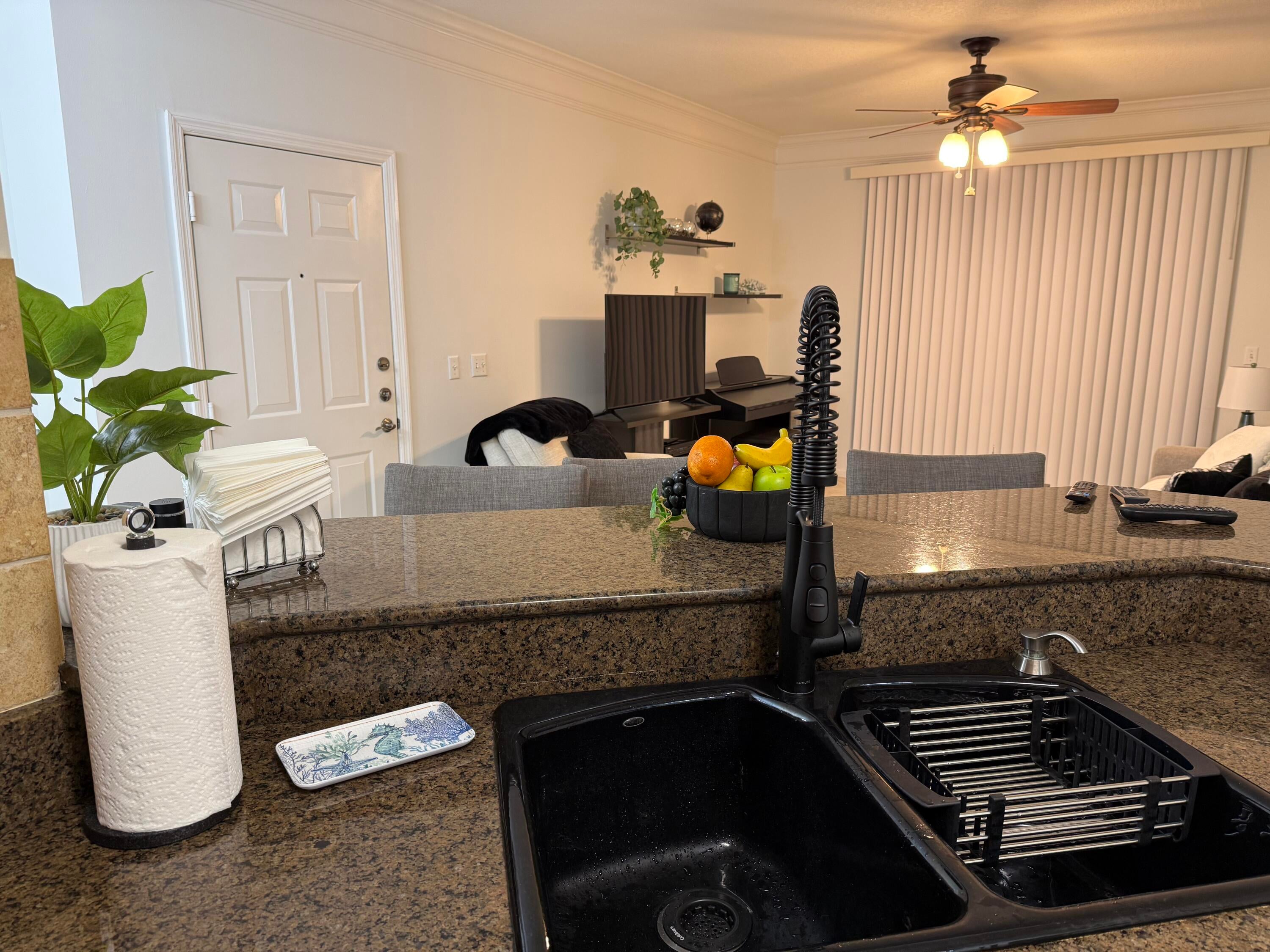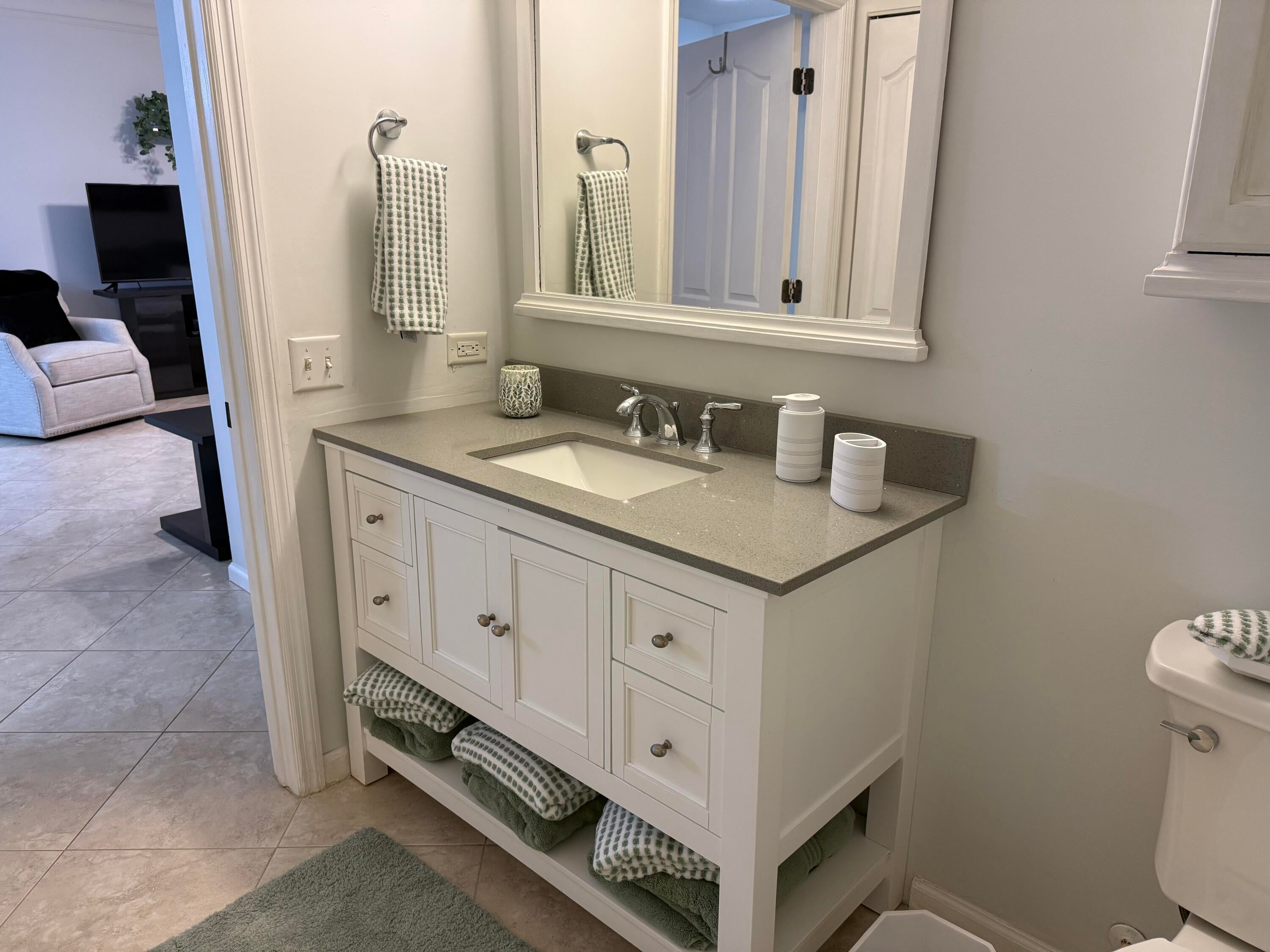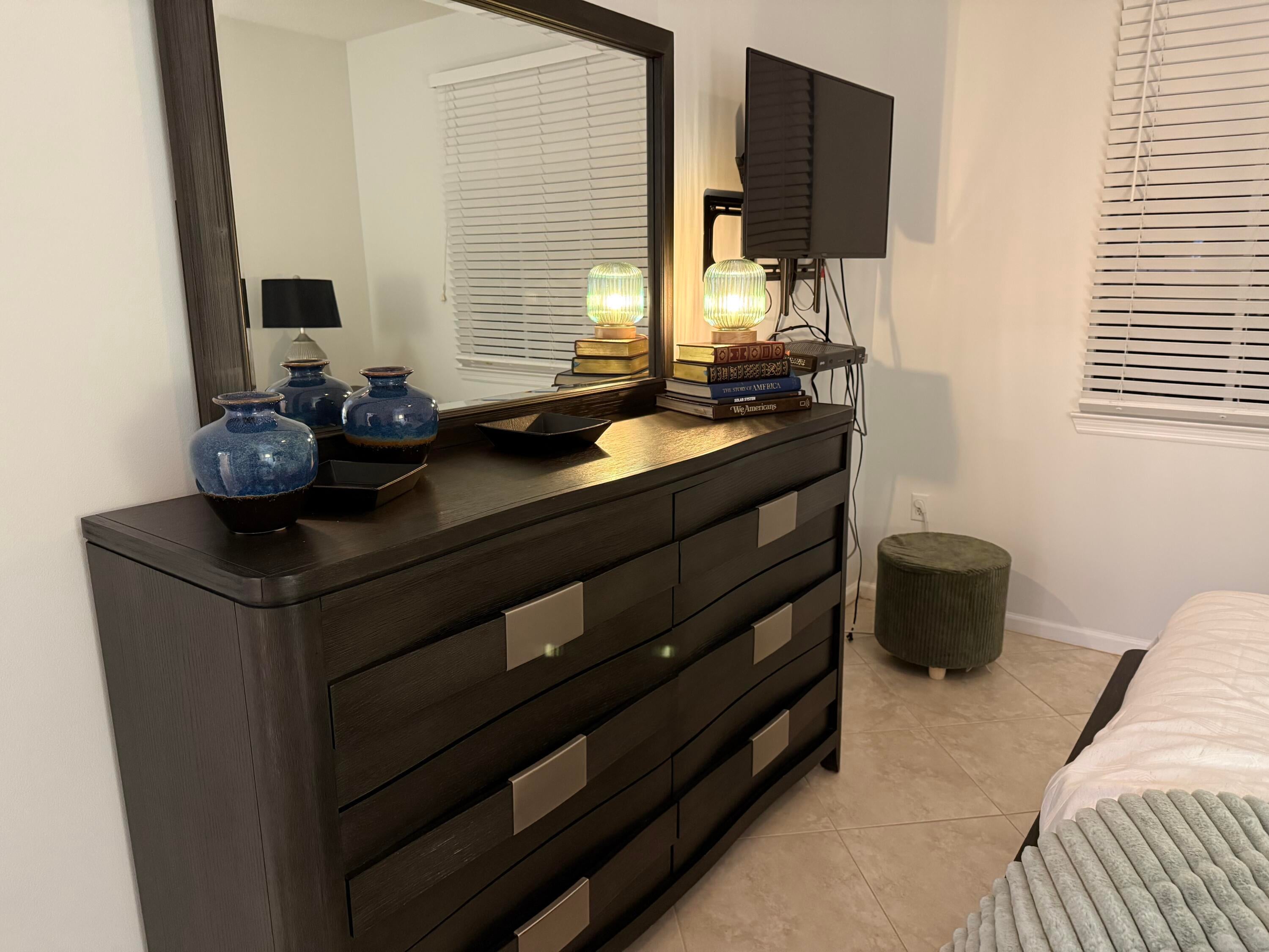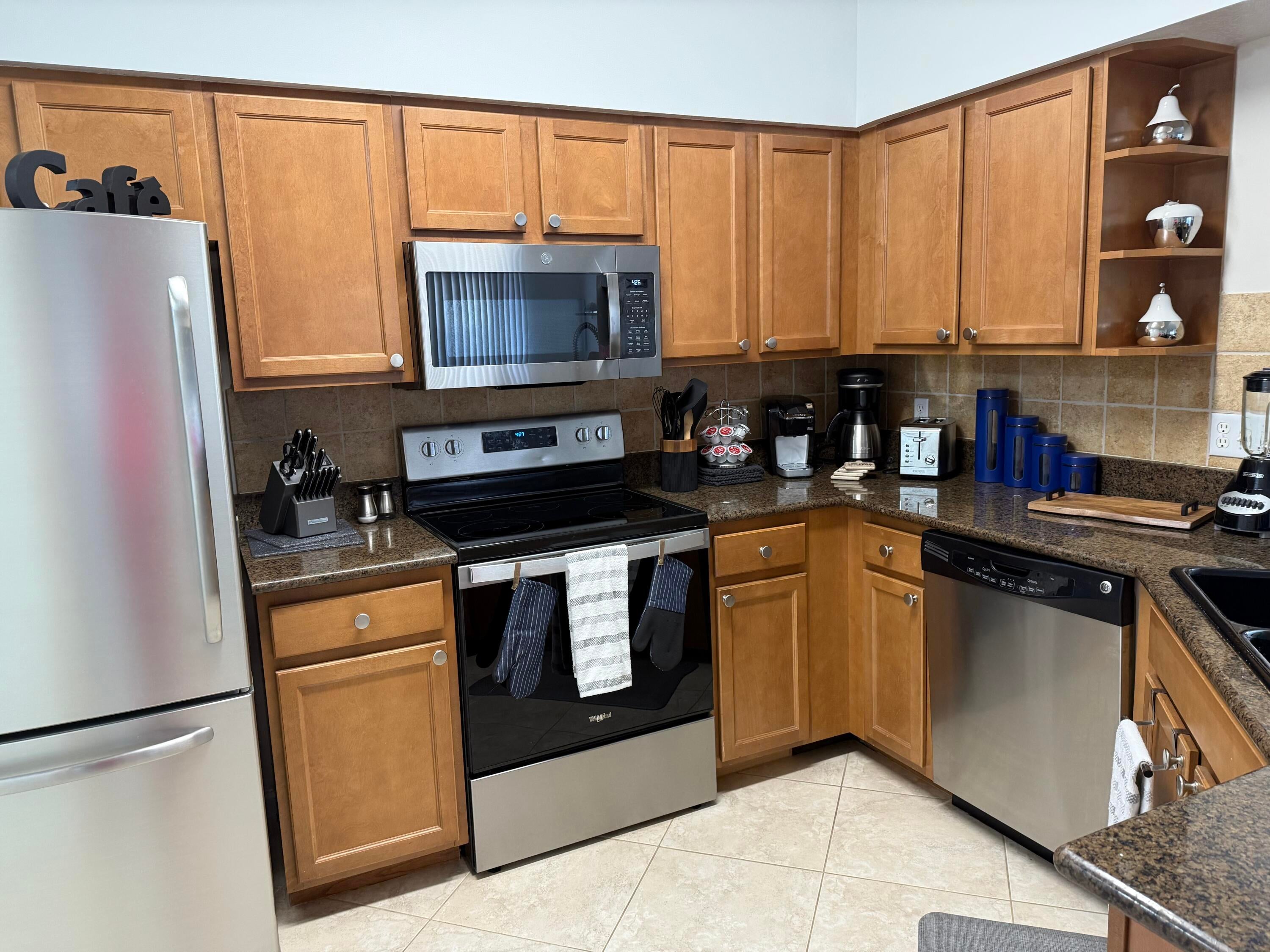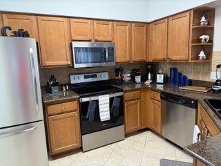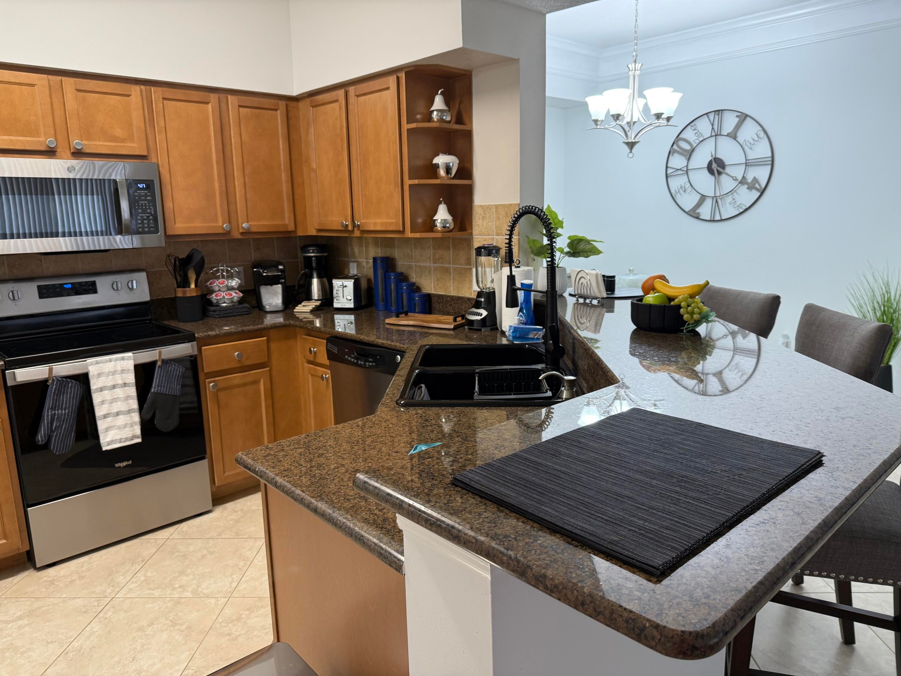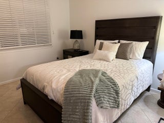 Rare one car garage attached to first floor immaculately upgraded unit has tile floors throughout, granite countertops, wood cabinets, stainless appliances, updated bathroom, and front load washer and dryer. The furniture is updated and stylish. Flat screen TV's in family room and bedroom. Walk out the slider off the main living areas to a covered patio and you are steps away from the resort style heated pool. There is also a gym and business center available for your use. This gated community is less than 5 miles from Juno Beaches and around the corner from Alton, Palm Beach Gardens Mall, Downtown at the Gardens, Downtown Abacoa and Roger Dean Stadium. NO SMOKERS and NO PETS
