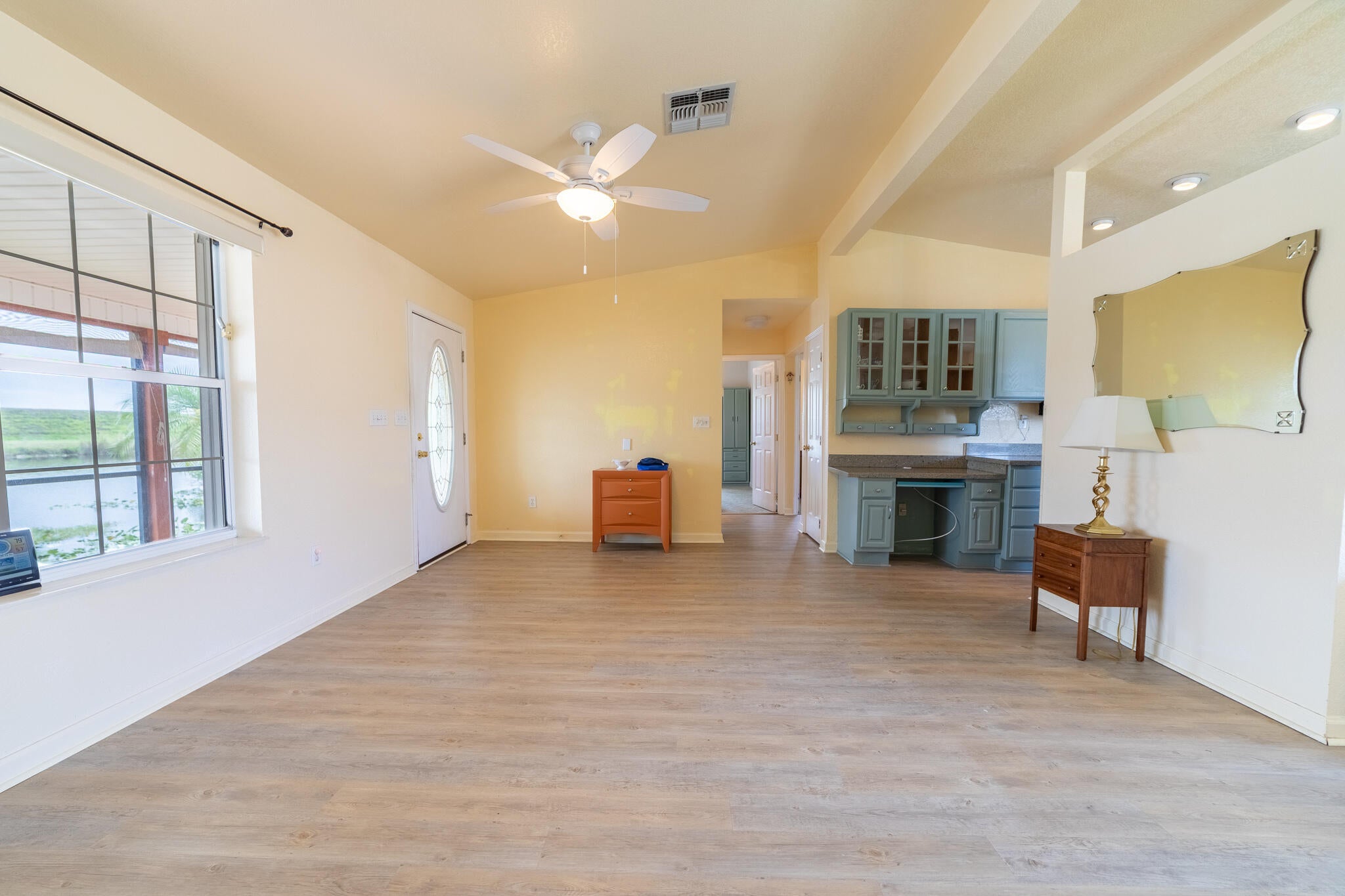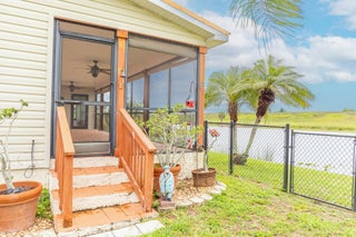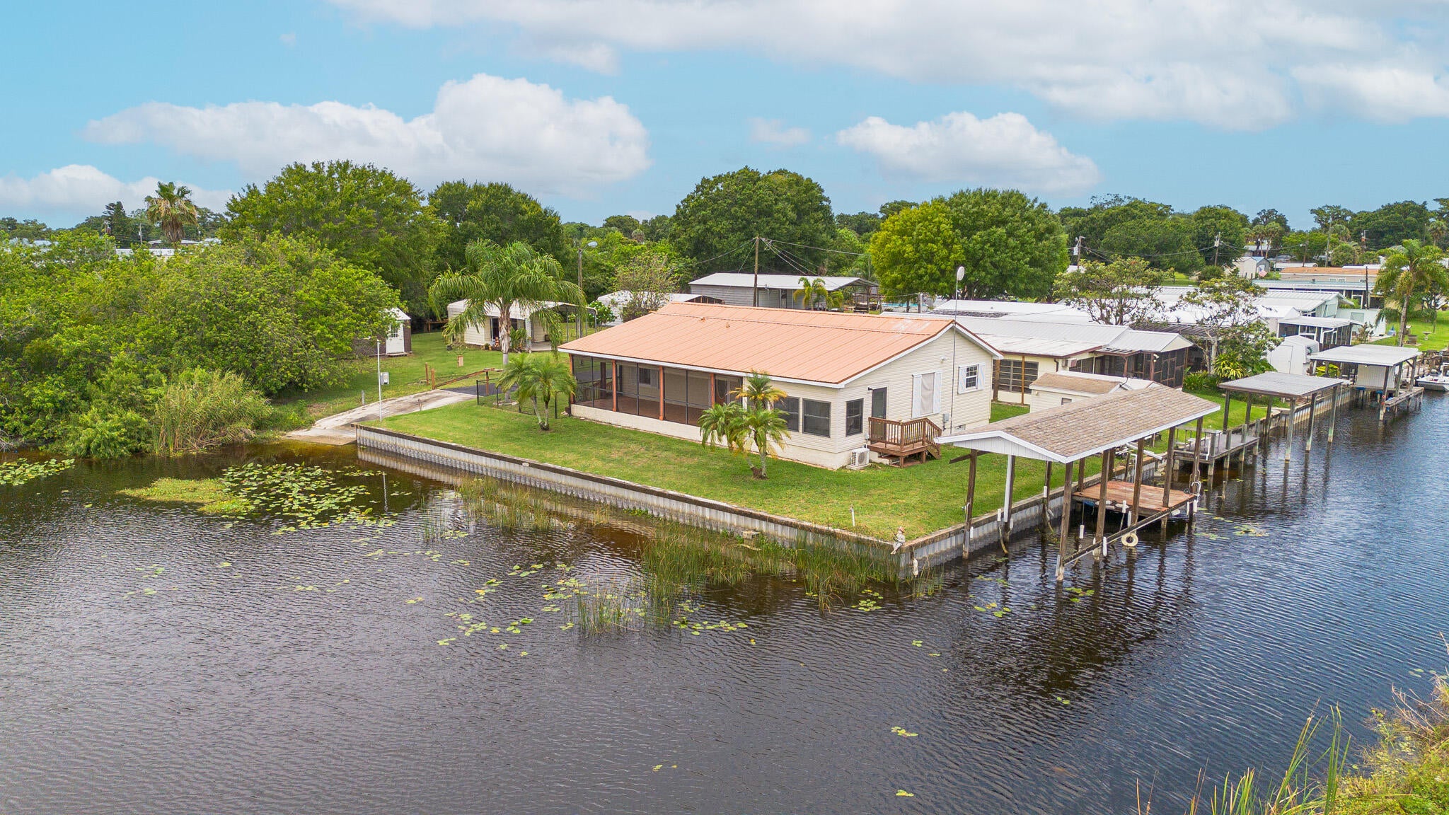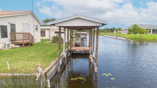 Gorgeous waterfront 3/2 located on the serene rim canal. Relax in the Lanai off main bedroom while enjoying beautiful sunrises. The expansive covered screened porch is ideal for hosting gatherings or unwinding while you soak in captivating views of wildlife and serene water. This exquisite property boasts new vinyl flooring in the main bedroom, living room, kitchen, dining room and laundry room giving it a fresh and modern feel. For boating enthusiasts, the home features a boathouse w/lift and deck, perfect for all your water adventures.Additionally, you'll own 2 extra lots: a spacious storage shed w/a roll up door and access door and a covered garage. Nestled on a private street with exclusive access to a boat ramp owned by HOA members. HOA has a private doggie park! CHECK MORE INFO!!Surrounded by beautiful palms, the fully fenced front yard provides a haven for your fur babies to roam freely. This remarkable property is at the end of our private road, ensuring peace and tranquility. Don't miss your chance to claim this slice of paradise!!