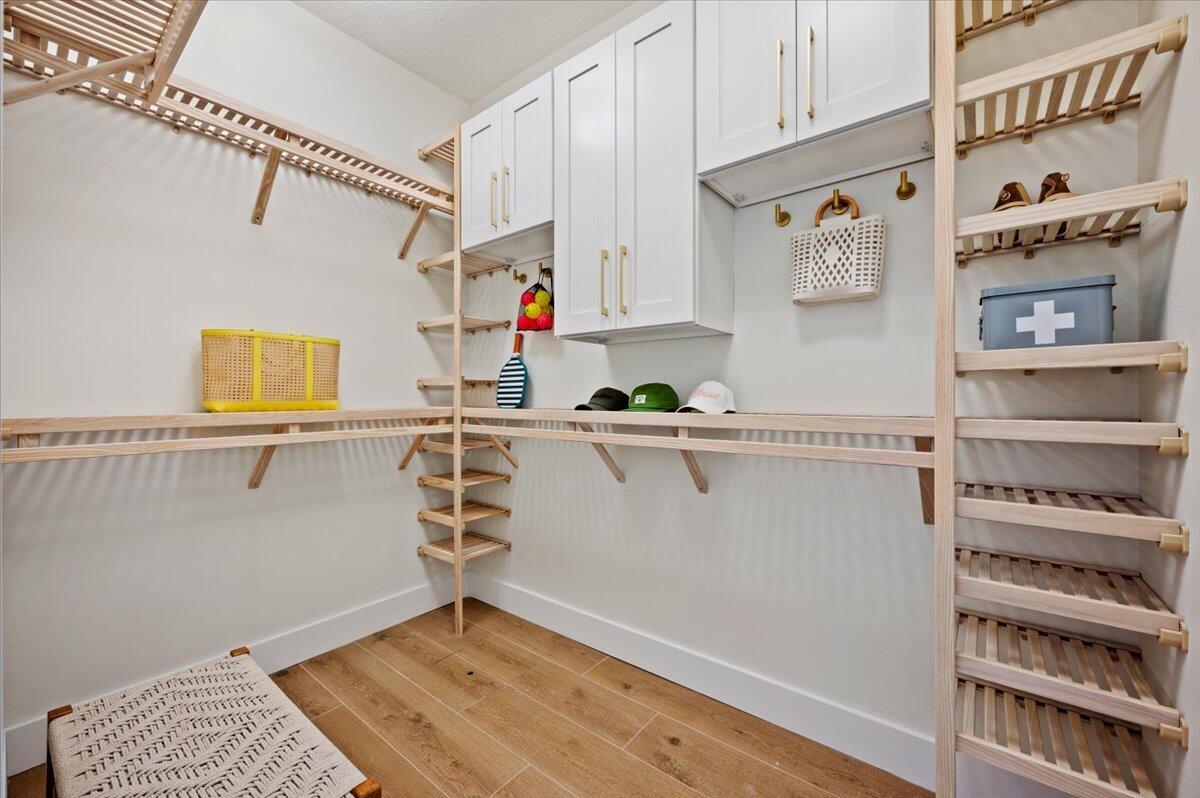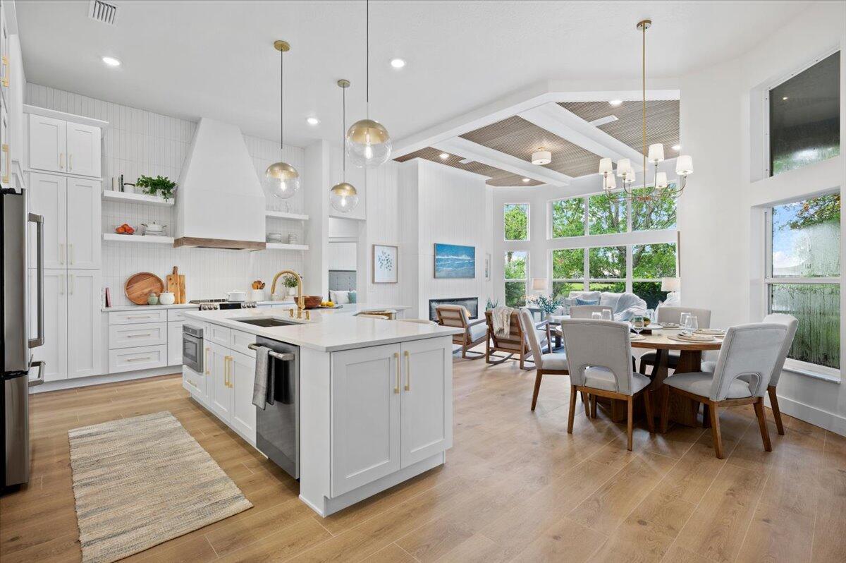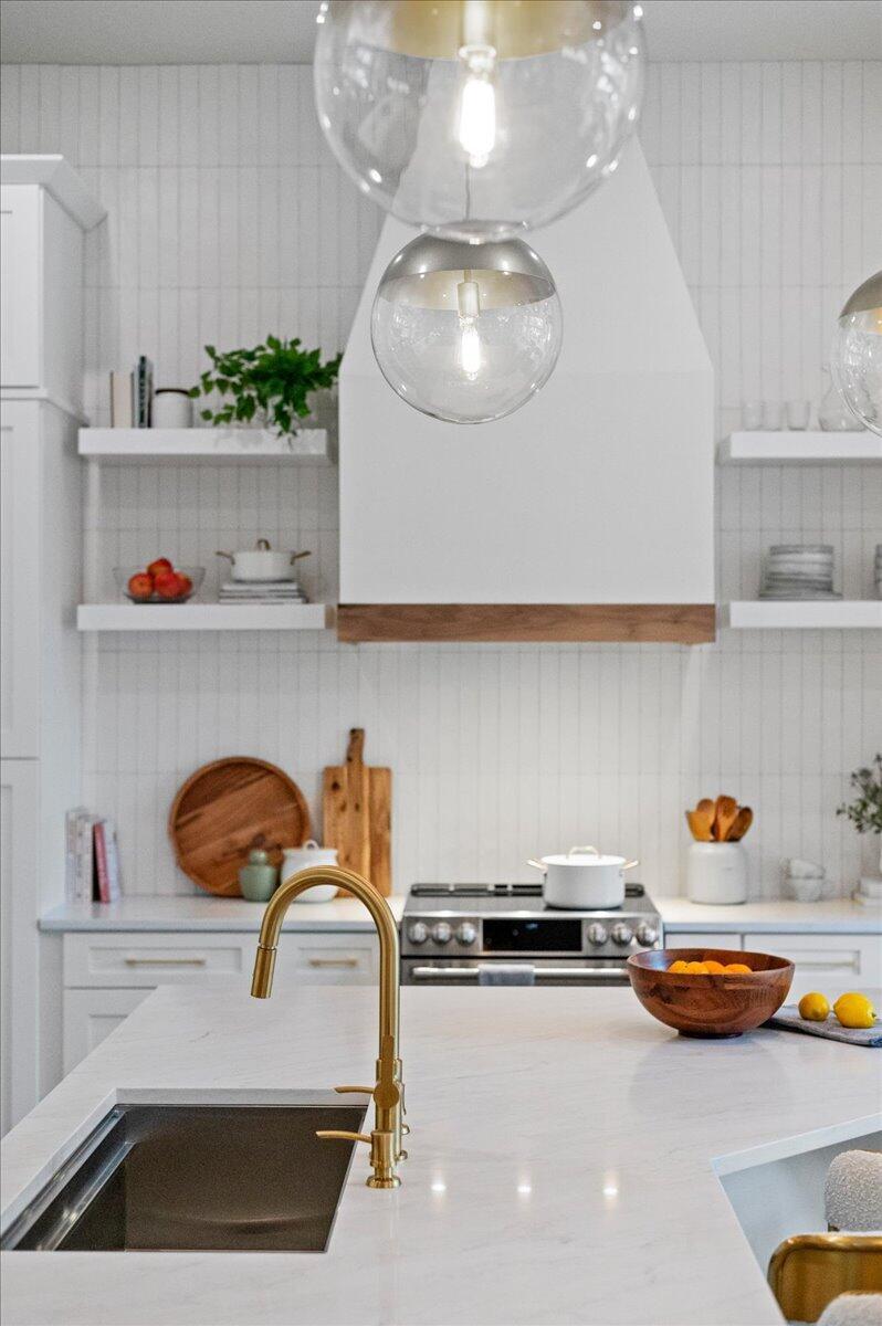 Bar, Built-in Shelves, Fireplace(s), Foyer, French Door, Cook Island, Laundry Tub, Pull Down Stairs, Split Bedroom, Volume Ceiling, Walk-in Closet