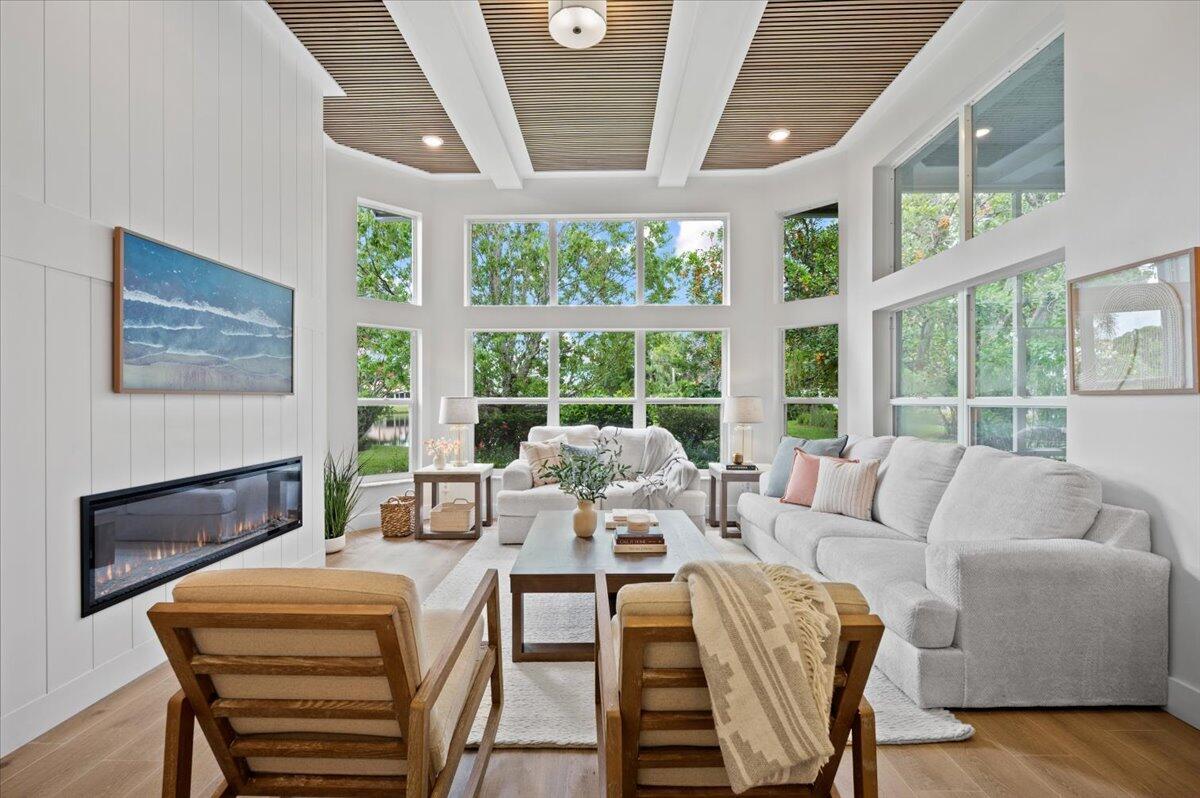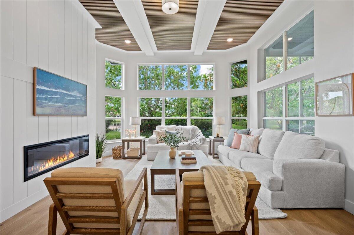 Located in one of SoFL's safest cities & top school districts, this stunning 5BR/3BA home sits in a gated country club community w/golf, tennis, clubhouse, restaurant & more. Fully renovated w/custom chef's kitchen, high-end appliances, Pottery Barn-style fireplace, designer ceiling beams, & spa-like primary suite w/huge walk-in closet. Enjoy serene pond views from the expansive screened porch w/wood-look tile carried from interior. Roof is 4 yrs old. Low-maint. HOA incl. lawn care, ext. paint, roof washing, cable & internet. Room for a pool!