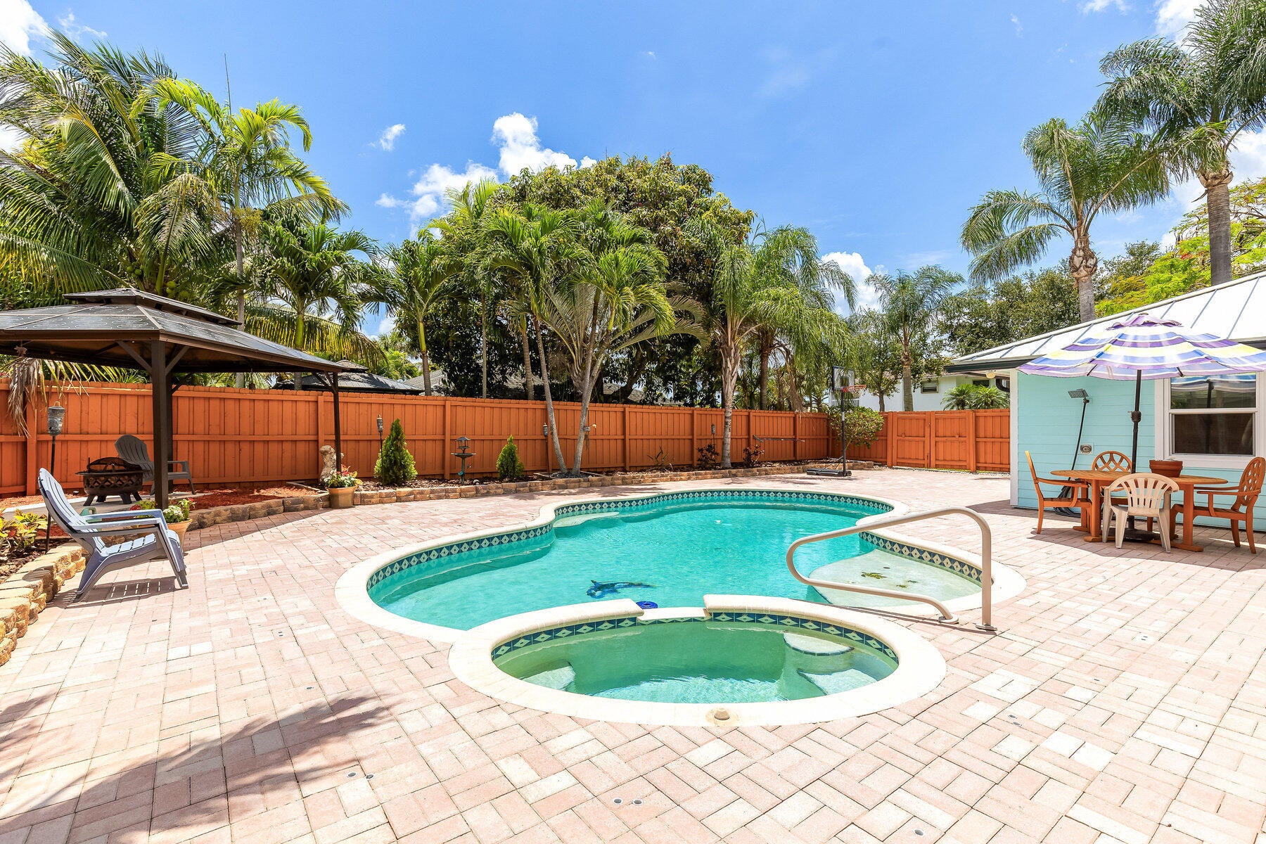Welcome to 4380 Butternut Street! This charming 3-bedrooms, 2-bathrooms home sits on a spacious corner lot with no HOA, offering ample room for your boat, toys, or future plans. Located in the heart of Palm Beach Gardens! Equipped with a metal roof, hurricane impact windows and doors, and Hardie Board siding, this home is built for peace of mind. Inside, you'll find a split-bedroom layout and light-filled living spaces that flows seamlessly to the outdoors. The kitchen retains its original charm, while both bathrooms have been thoughtfully updated--one with sleek modern finishes, the other with convenient access to the patio as a cabana bath. Step outside to your screened-in and covered lanai, perfect for year-round relaxation, which opens to a fully fenced backyardwith a private pool, spa, & sun deck - your own slice of paradise. Solar panels help keep energy costs low, making this home as efficient as it is inviting. Located just minutes from top-rated schools, beaches, shopping, dining, and I-95, this property blends comfort, style, and convenience in a highly sought-after neighborhood. Don't miss this rare opportunity, schedule your private showing today!