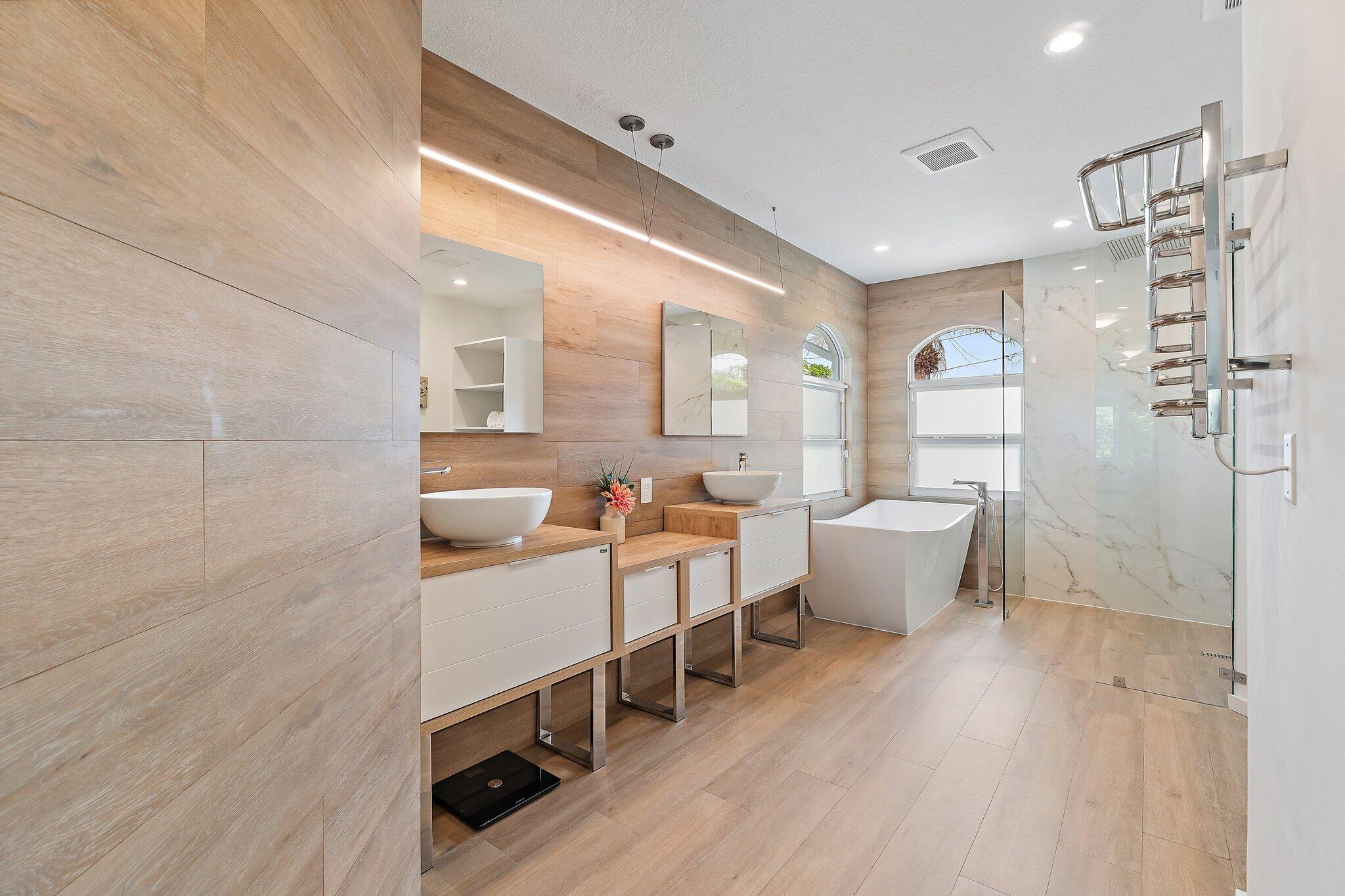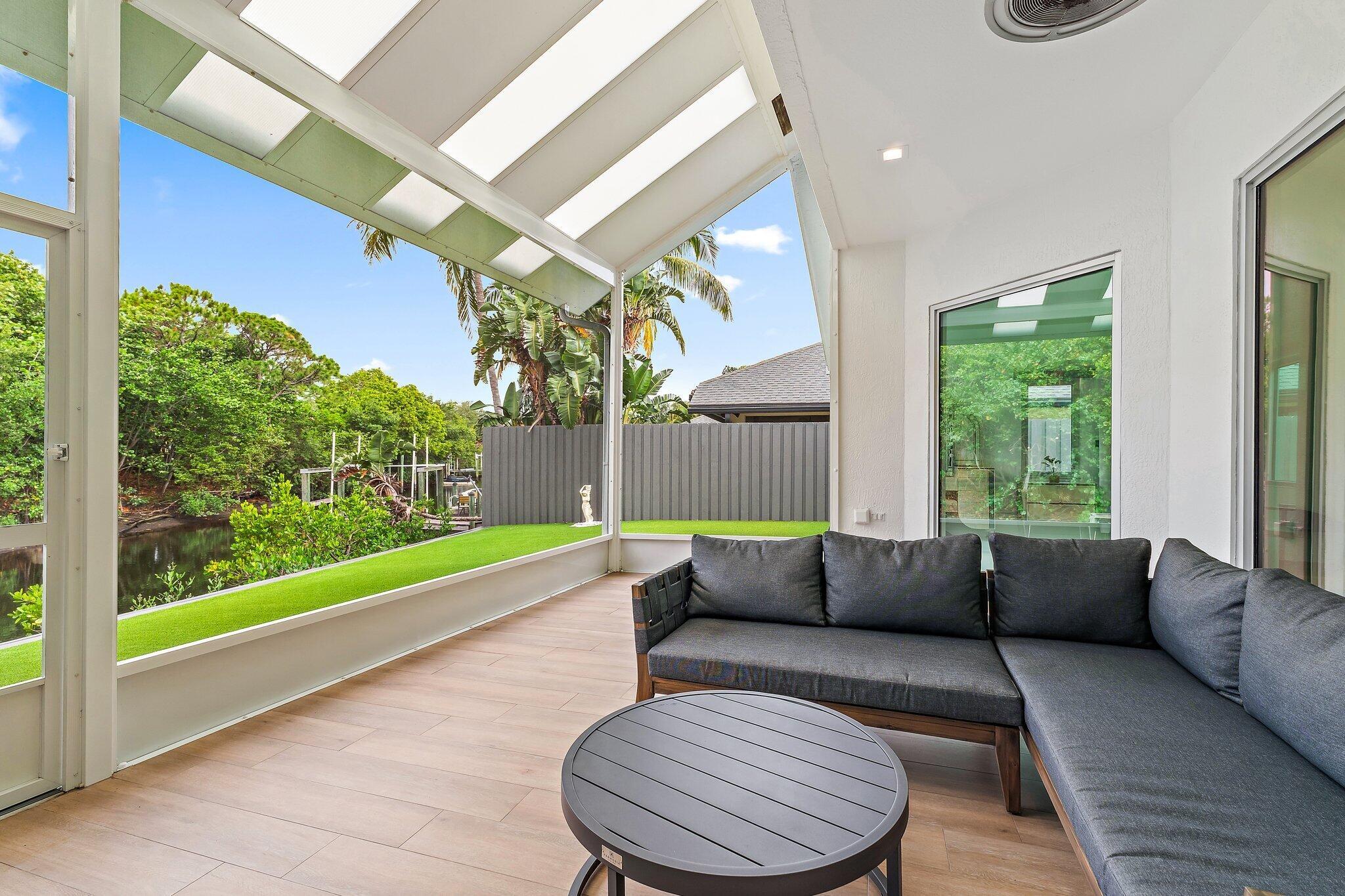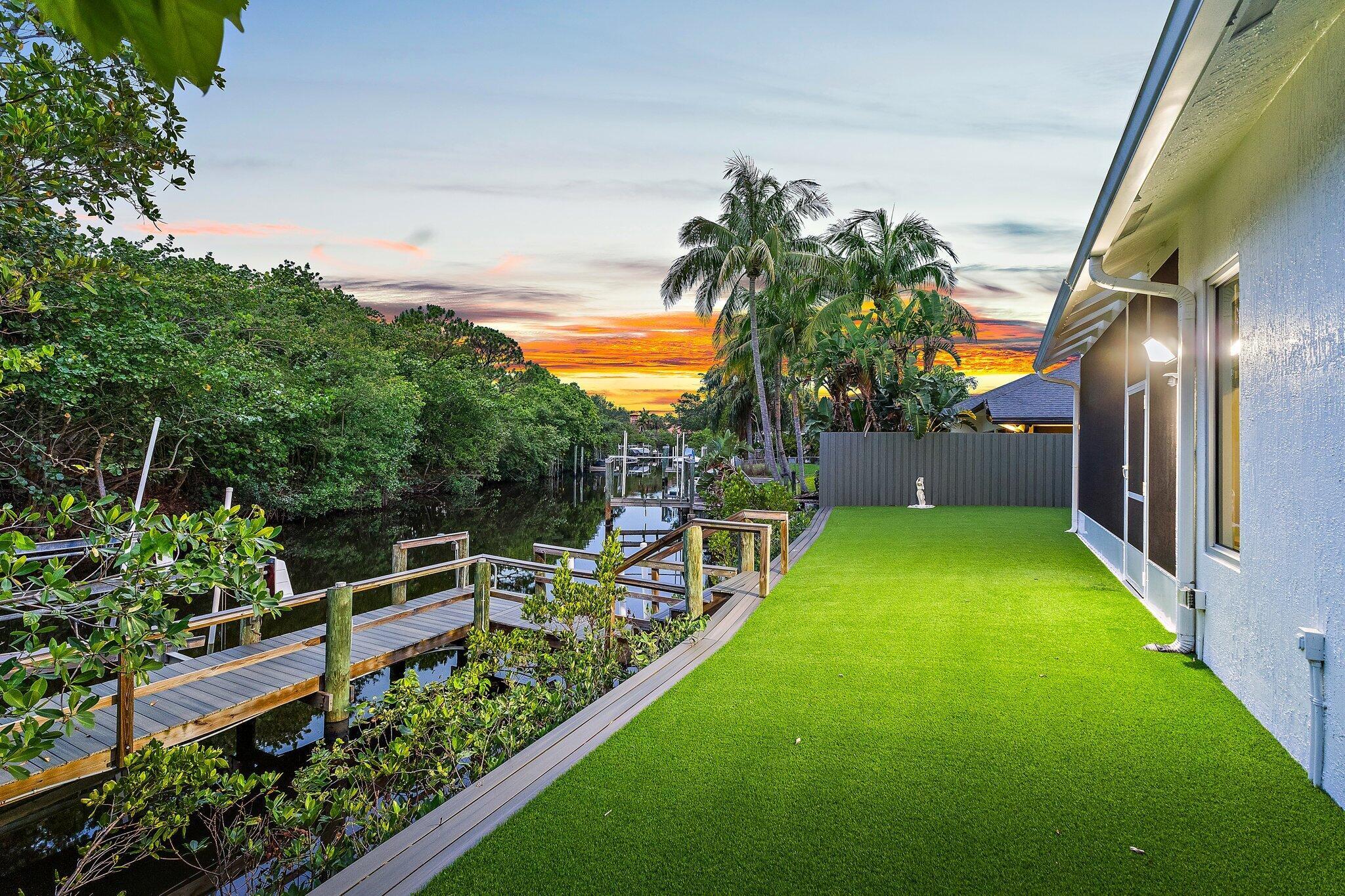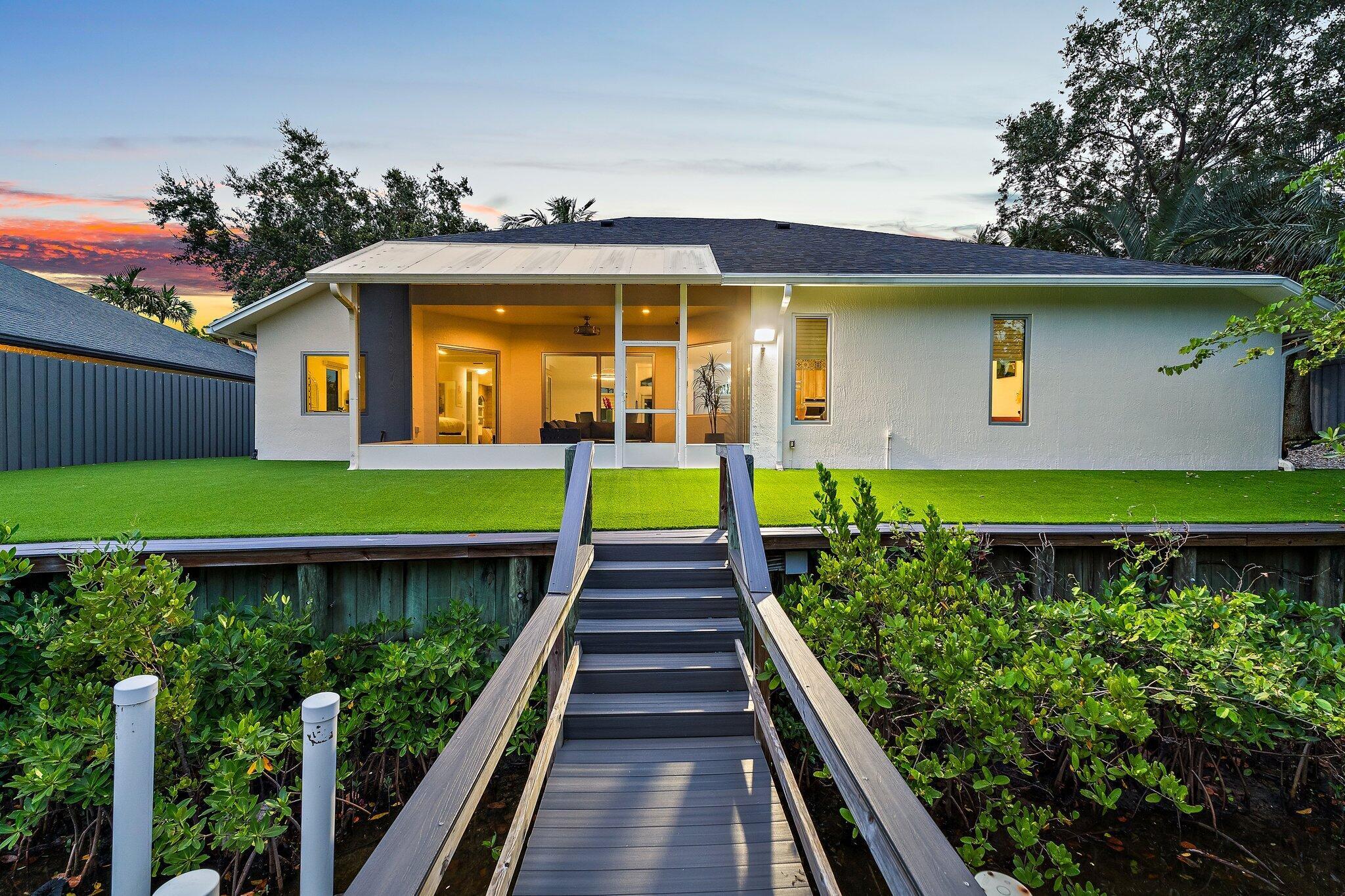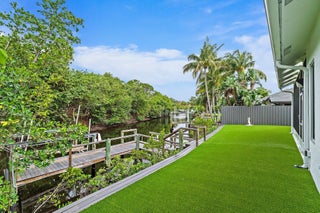 Welcome to this beautiful modern waterfront home with private dock and no HOA. Meticulously renovated with features to include a gourmet chef's kitchen with monogram appliances, large primary suite, new bathrooms, new flooring throughout, double insulated windows & doors, artificial turf, Tesla Charger and many others! Prime location just minutes from shopping, dining, golf, entertainment and the beautiful Jupiter beaches.Roof 2020, A/C 2022, Driveway 2023, Impact Glass 2024 and much more.