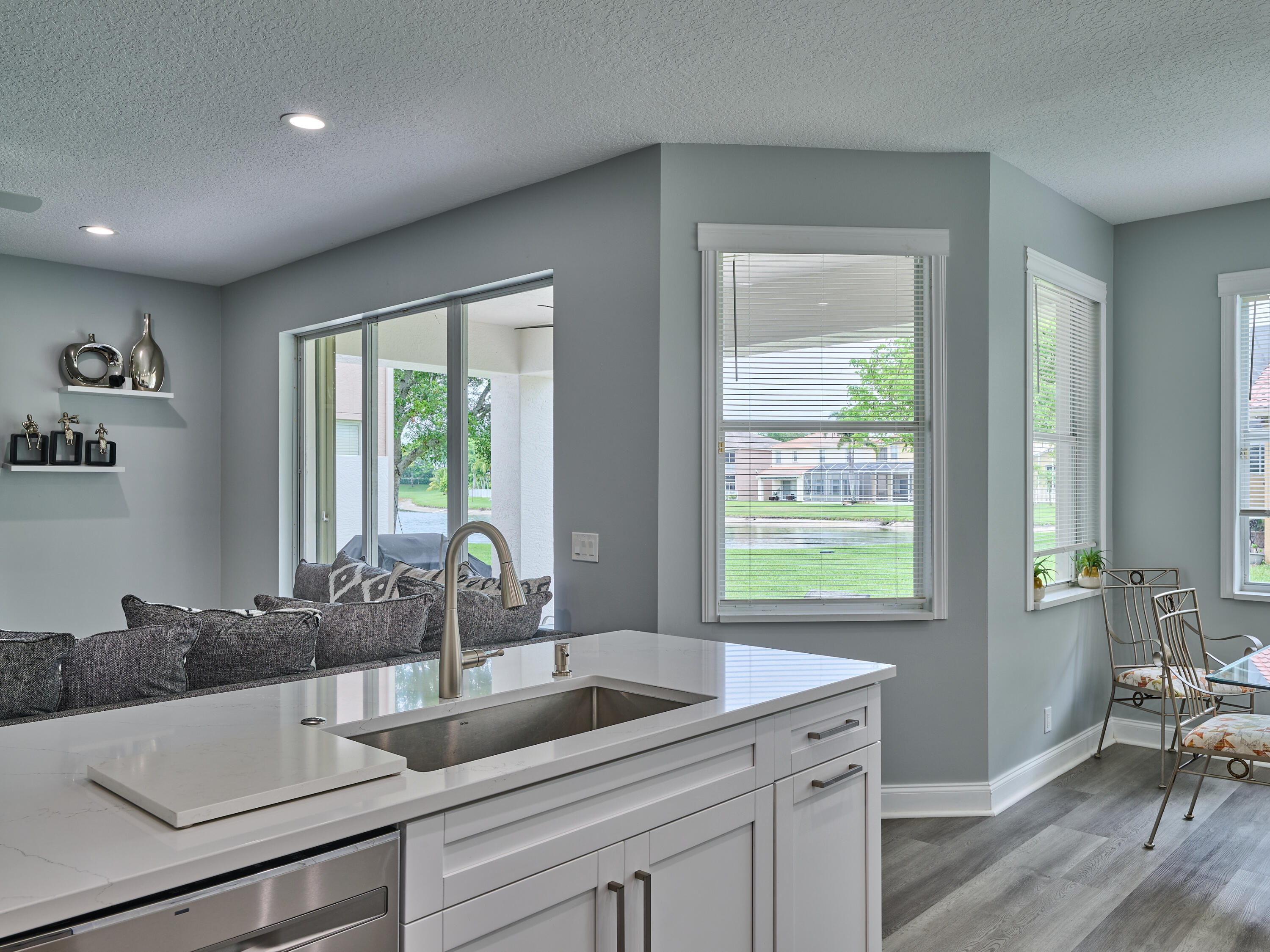 Shutters, Covered Patio, Auto Sprinkler, Lake/Canal Sprinkler, Room for Pool