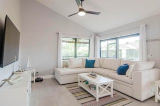 Available for off season, ($3,500/mo) and seasonal rent, ($7,500/mo) (4 month min) This beautifully renovated home is located on a large private corner lot featuring a wrap-around screen enclosed patio with a fenced in yard and privacy hedge overlooking green space. Off season and seasonal ONLY. NOT available for annual rent.The kitchen has been beautifully renovated with soft-close cabinetry and a designer backsplash. It also has Samsung Black Stainless Steel fingerprint resistant appliances less than 2 years old. The baths have been upgraded and updated with new cabinetry and quartz countertops. There are built-ins in the closets and the home has a large 2-car garage. It is just a short walk to the community pool.