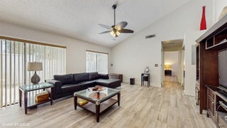 Tour this BIG 2BR, 2BA VILLA in the PET FRIENDLY Barrwood community of Boynton Beach. Located DIRECTLY ACROSS from the CLUBHOUSE, POOL & BASKETBALL/TENNIS COURTS, this home offers NO REAR NEIGHBORS and a FENCED-IN COURTYARD complete with a SHED. Step inside to an OPEN-CONCEPT LAYOUT where the kitchen/dining/living rooms flow together, along with VAULTED CEILINGS & SPLIT-BEDROOM FLOOR PLAN. TILE FLOORING throughout except for the LUXURY VINYL FLOORING in the living room & both bedrooms. Primary suite offers 14-FOOT CLOSET & MAKEUP VANITY with TUB/SHOWER COMBO in the bathroom. Complete with a 2022 METAL ROOF, 2 ASSIGNED PARKING SPACES and located near RENAISSANCE COMMONS, multiple SHOPPING & DINING options, and I-95, this home offers the BEST OF SOUTH FLORIDA LIVING at an AFFORDABLE PRICE.
