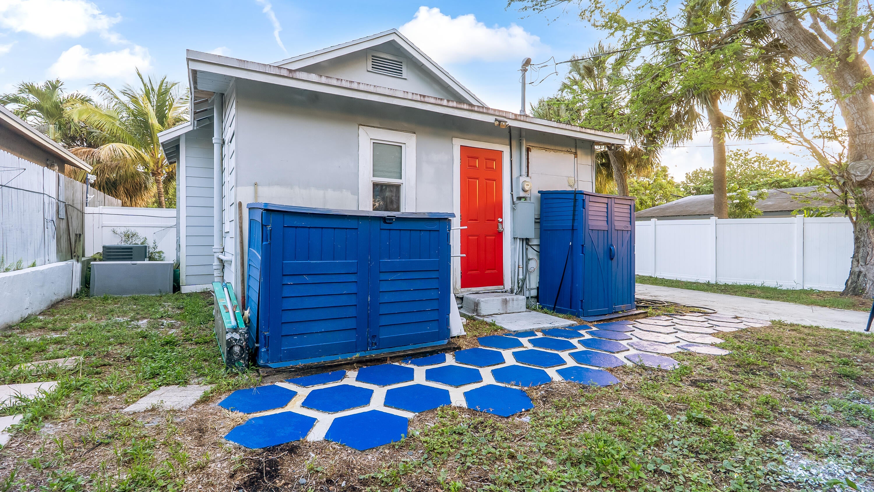 Exquisite 2 bed, 1 bath lakehouse-style home in East Lake Worth with a breezy shore vibe! Just minutes from I-95 for quick access to everything. Freshly painted inside, this turnkey gem is ideal as a starter home or income property. Enjoy a spacious backyard and extended driveway--perfect for entertaining, multiple vehicles, or boat storage. Features include impact windows, roof, A/C, and water heater all replaced in 2021, a 4-year-old GE electrical panel, and copper/PVC plumbing. The most affordable move-in ready single-family home in Lake Worth--don't miss this rare find!