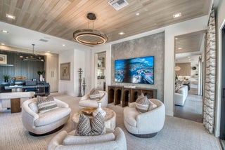 Discover the pinnacle of style in this newly constructed 5,260 sq. ft. estate, ideally located within the prestigious gated community of Apex at Avenir. This 5-bedroom, 5-bathroom home, with 2 half baths and a 4-car garage, masterfully combines modern luxury with zen-inspired finishes. Step through grand double doors into a breathtaking foyer featuring soaring ceilings and a dramatic staircase, which opens to expansive, light-filled living spaces. The home is adorned with exquisite, modern finishes throughout, including a gourmet kitchen with custom cabinetry, designer countertops, and top-of-the-line stainless steel appliances. Designed to meet every need, this home also includes a separate game room, den, loft, and media room--offering abundant space for work, play, and relaxationmodern floor-to-ceiling cabinetry, quartz countertops and backsplash, premium stainless steel appliances including a gas cooktop, and a generous island with seating for casual meals and gatherings. On the first floor, the spacious game room invites recreation and relaxation, while the adjacent den ideal for a home office or creative studio. A private fifth bedroom with its own en-suite bath and walk-in closet completes the main level, providing a perfect retreat for guests or multi-generational living. Upstairs, the primary suite offers a sun-splashed, serene escape, blending sophisticated finishes with practicality, including separate walk-in closets and a spa-inspired en-suite bath with marble and stone tile, a soaking tub, walk-in shower, and built-in vanity seating. Each of the additional four bedrooms also includes its own en-suite bath and walk-in closet, ensuring comfort and privacy for all. A versatile second-floor loft provides an additional living space or shared workspace, while the media room delivers a true cinematic experience. The conveniently located laundry room offers ample storage, a dedicated sink, and premium appliances to make everyday tasks effortless. Outdoor living shines here, too. Enjoy lakefront views from the expansive covered patio, thoughtfully designed with distinct areas for lounging, dining, and recreation all surrounding a sparkling pool. With a fully fenced yard, this private outdoor space is perfect for both entertaining and family living. From its thoughtful layout to its luxurious finishes and unique features, including a 4-car garage and multiple lifestyle spaces, this home delivers the flexibility and elegance today's discerning buyers seek. Come see what makes this lakefront masterpiece so special. Schedule your private tour today. The outdoor retreat is nothing short of spectacular, with an expansive covered patio that provides ample space for a resort-style pool and spa, all while offering stunning views of the serene lake. Completion scheduled for November/December 2025