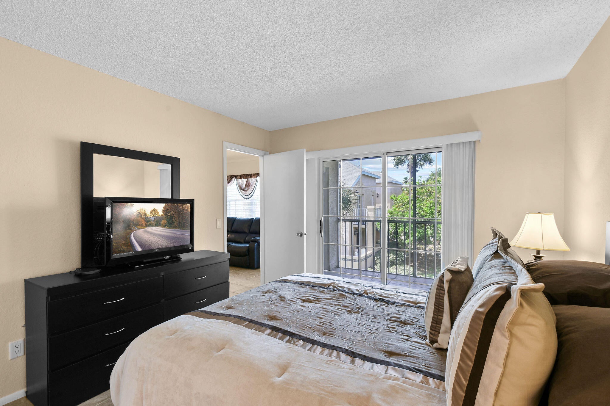 Super clean move in ready furnished 2nd floor split 2-bedroom 2-bath unit in the Evergreen Community. This unit features tile throughout, cathedral ceilings in living area plus a private screened patio balcony off master with an additional patio balcony off second bedroom. Low HOA includes exterior maintenance, roof, water/sewer, trash, plus 2 pools. Evergreen community is a short drive to the beach, medical facilities, shopping, movies, & grocery stores.