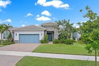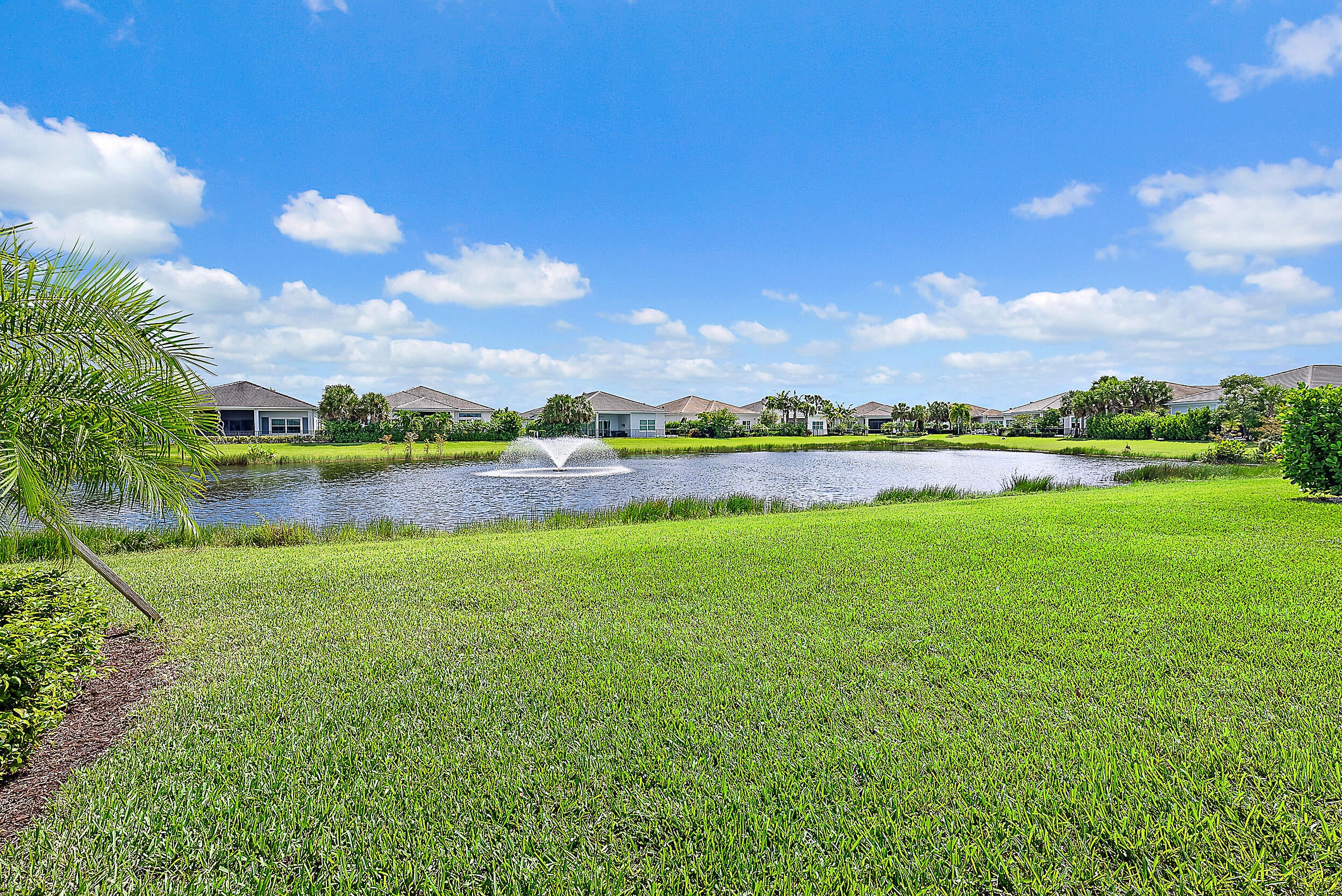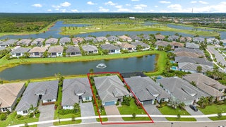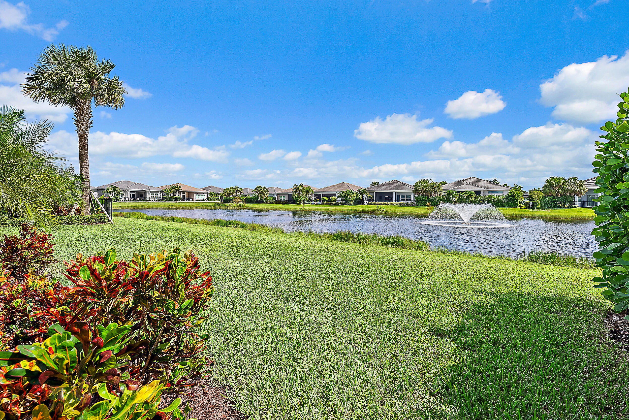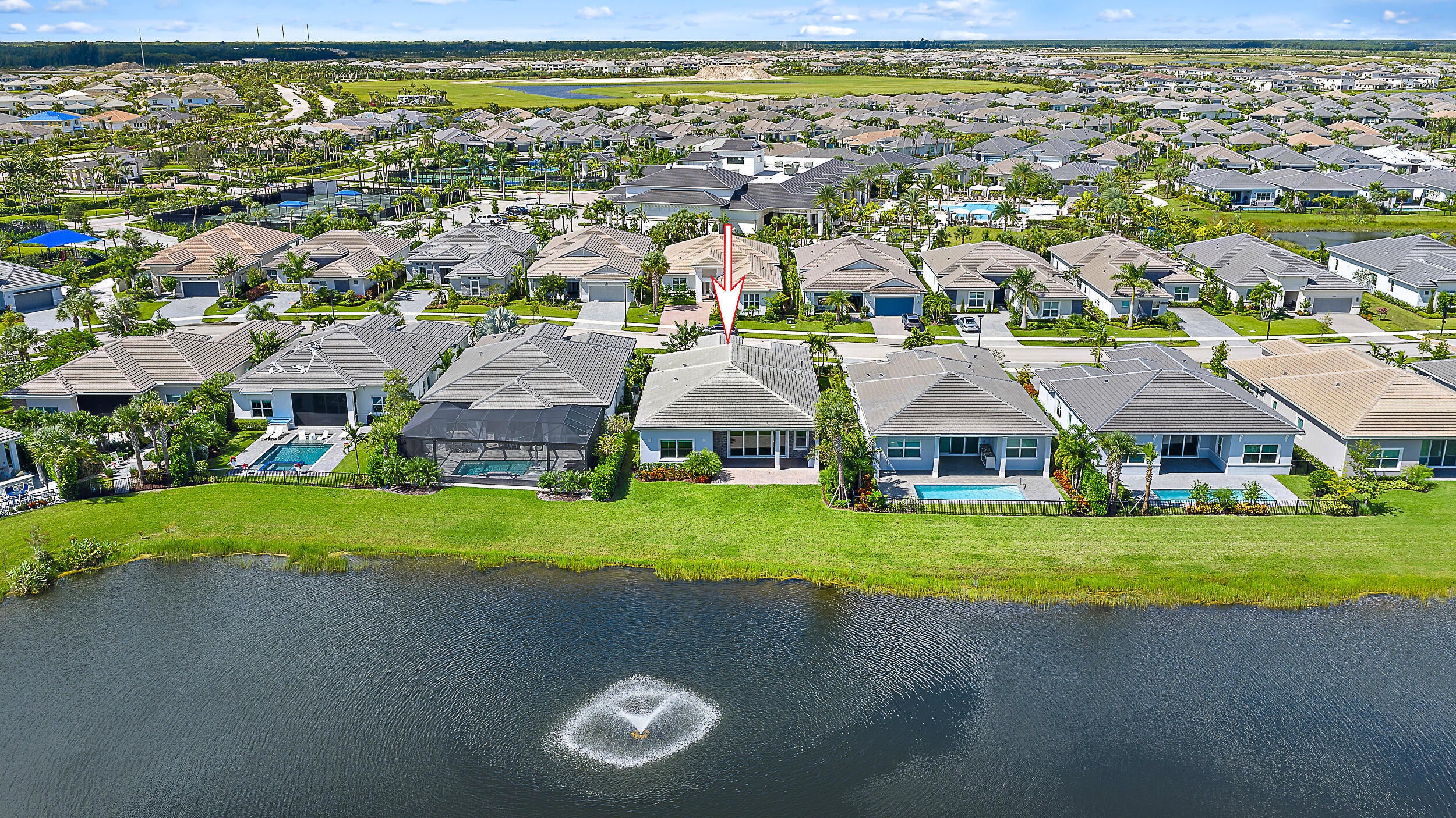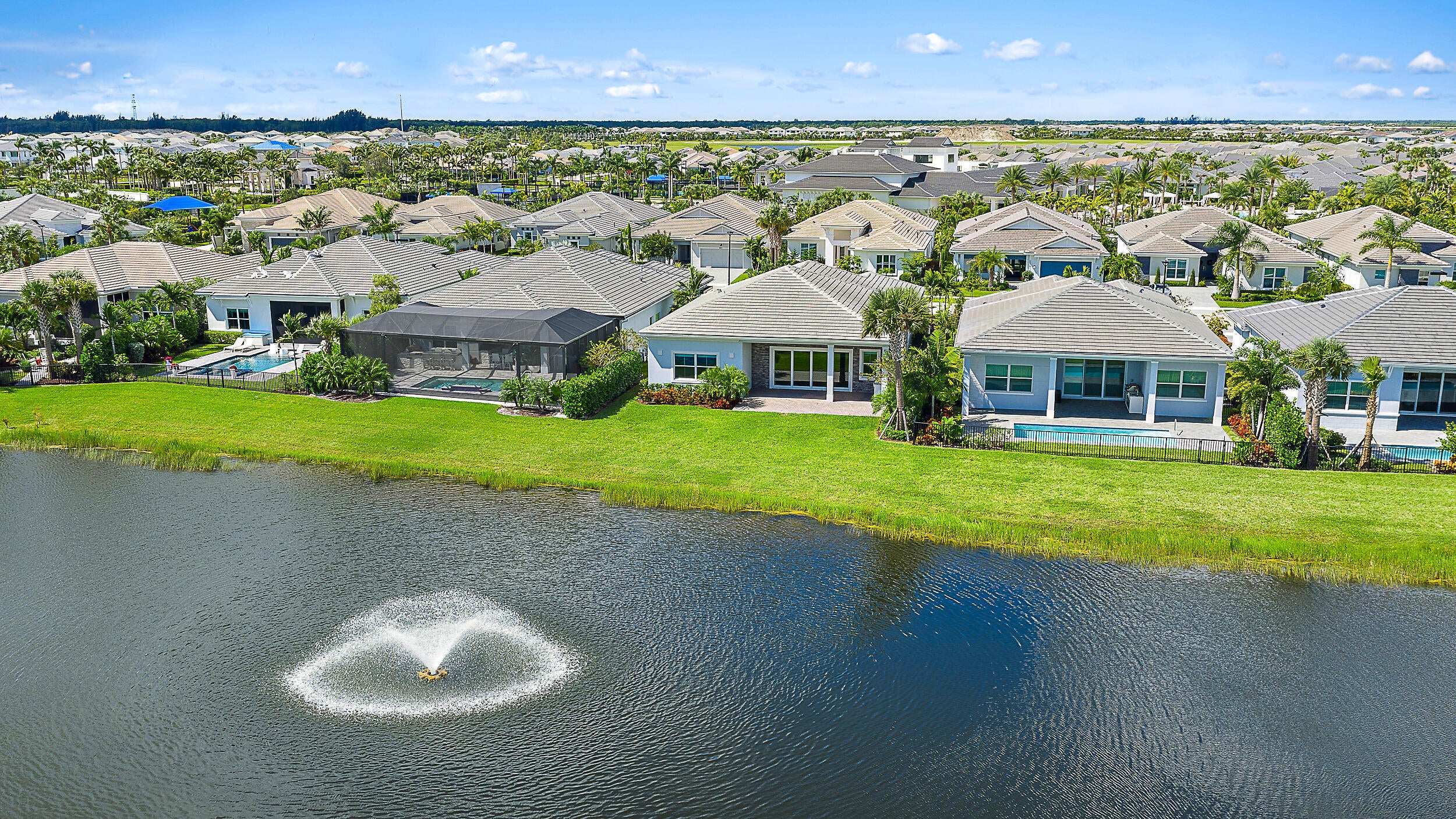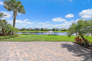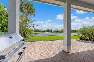 Located in the Tradewinds section of Regency at Avenir, this single-story Isabella model with contemporary elevation blends refined finishes with serene lakefront living. Enjoy panoramic water views from the great room, dining area, primary suite, and expanded covered lanai. Inside, 12' ceilings enhance the open layout featuring a gourmet kitchen with walk-in pantry, a spacious primary suite with dual closets and spa-inspired bath, and a versatile flex room perfect for a den, office, or hobby space. Live the lifestyle in this 55+ gated Palm Beach Gardens community offering resort-style amenities and a vibrant social scene.