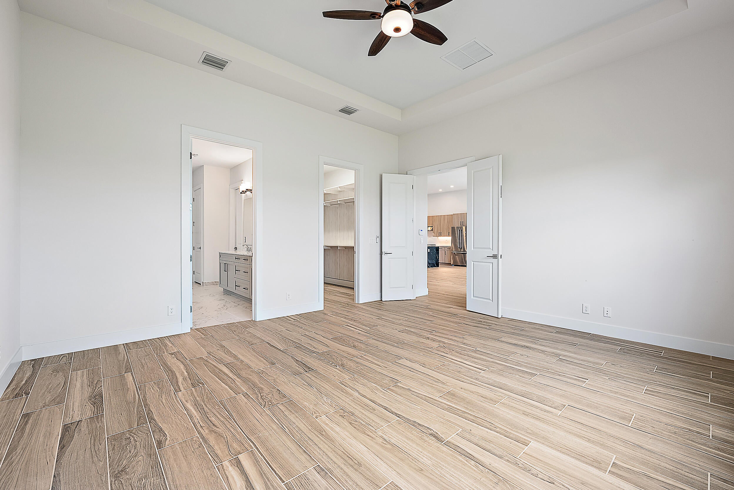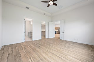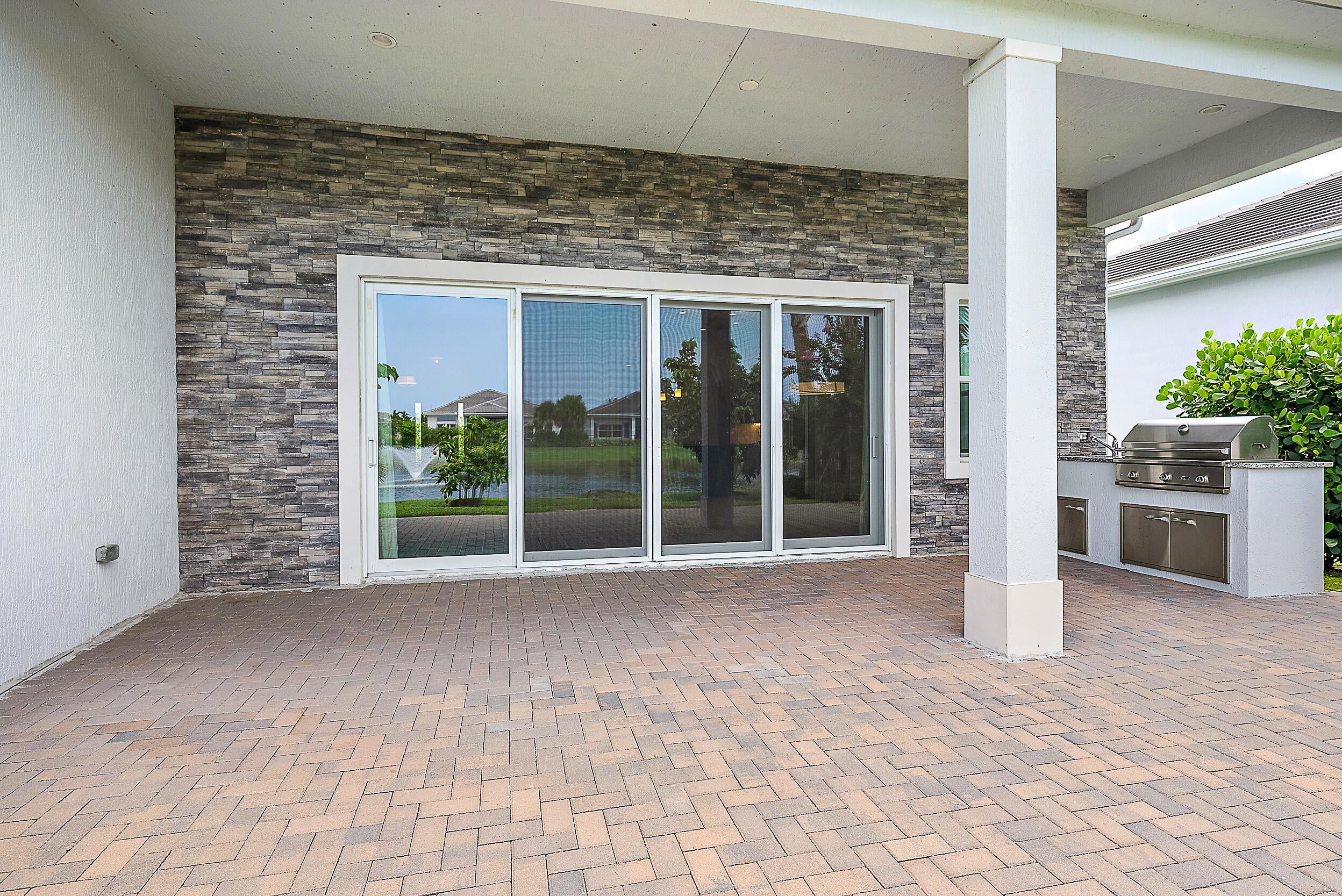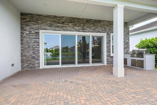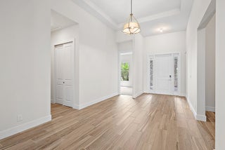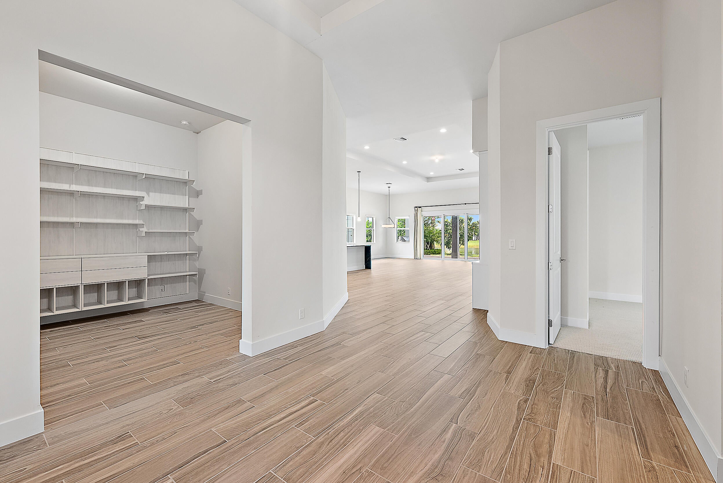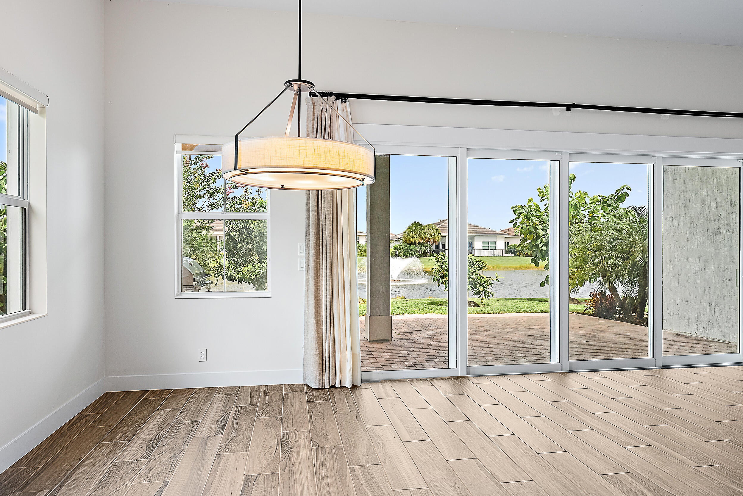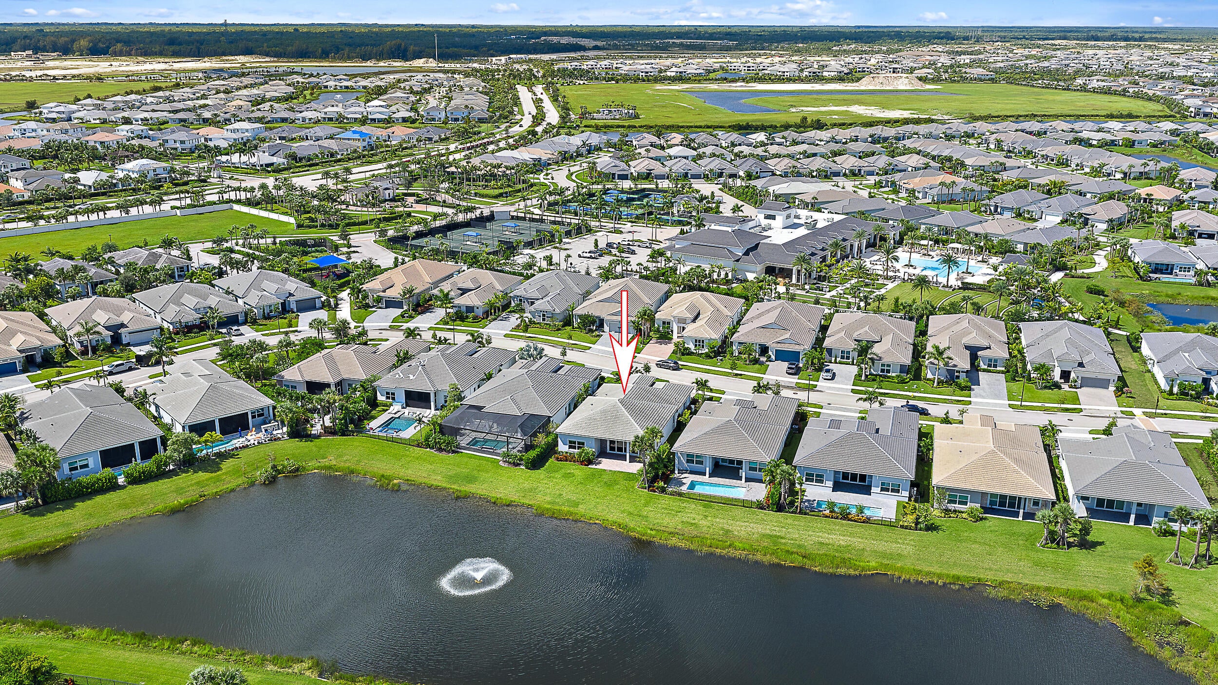 Located in the Tradewinds section of Regency at Avenir, this single-story Isabella model with contemporary elevation blends refined finishes with serene lakefront living. Enjoy panoramic water views from the great room, dining area, primary suite, and expanded covered lanai. Inside, 12' ceilings enhance the open layout featuring a gourmet kitchen with walk-in pantry, a spacious primary suite with dual closets and spa-inspired bath, and a versatile flex room perfect for a den, office, or hobby space. Live the lifestyle in this 55+ gated Palm Beach Gardens community offering resort-style amenities and a vibrant social scene.