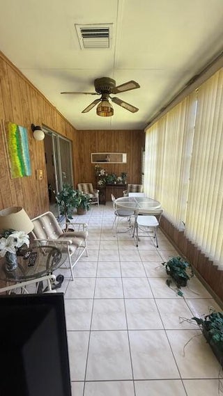 This unit is a fully furnished convertible villa located at the last street in Phase B with beautiful views off the enclosed porch,l It has a laundry room in the back porch area . Full ceramic tiles thru out, all contents can stay or be donated from the new owner. The new roof was installed June 2024. The unit is walking distance to the clubhouse, pool, gym, pickleball courts and auditorium. The community has bus service to shopping and medical plazas. Just minutes to the airport and highways as well as the beach and City Place.