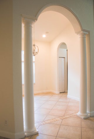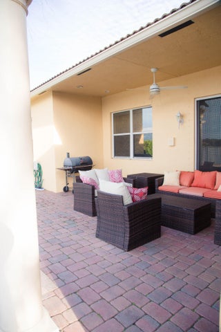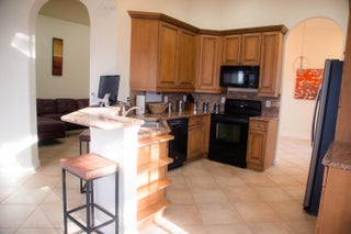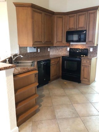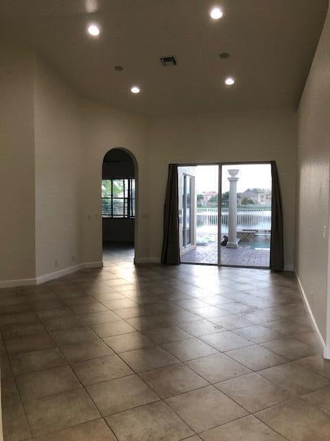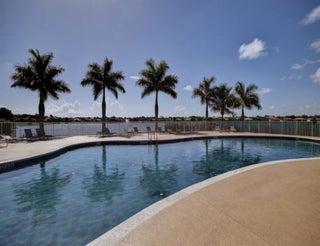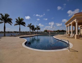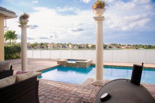 Your own Beautiful Private Pool and Jacuzzi Tub on the lake with covered patio. Spacious 3bd/2.5ba, fully tiled floors, granite countertops in open floor plan kitchen into family room. Windows and 2 sliding glass doors to the covered patio, pool on the large lake. Appliances: Refrigerator, Range, Microwave, Dishwasher, garbage disposal. W/D in roomy laundry room. Paver driveway with parking for 4 cars including 2-car garage with 2 remote openers. MBR has two walk-in custom closets. MBath has a large garden tub and separate shower. Monthly lease payment does not include weekly pool cleaning but does include lawn care. Roma modal. Portofino Shores is a well-manicured, gated community offering a comfortable home life for families and individuals of all ages.