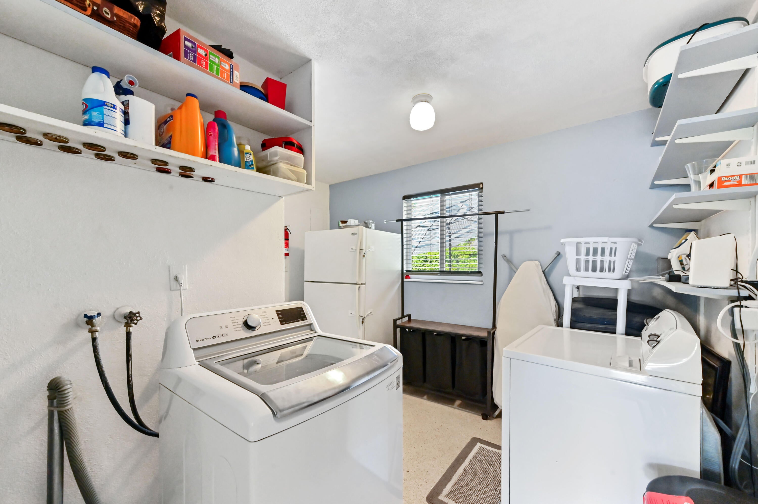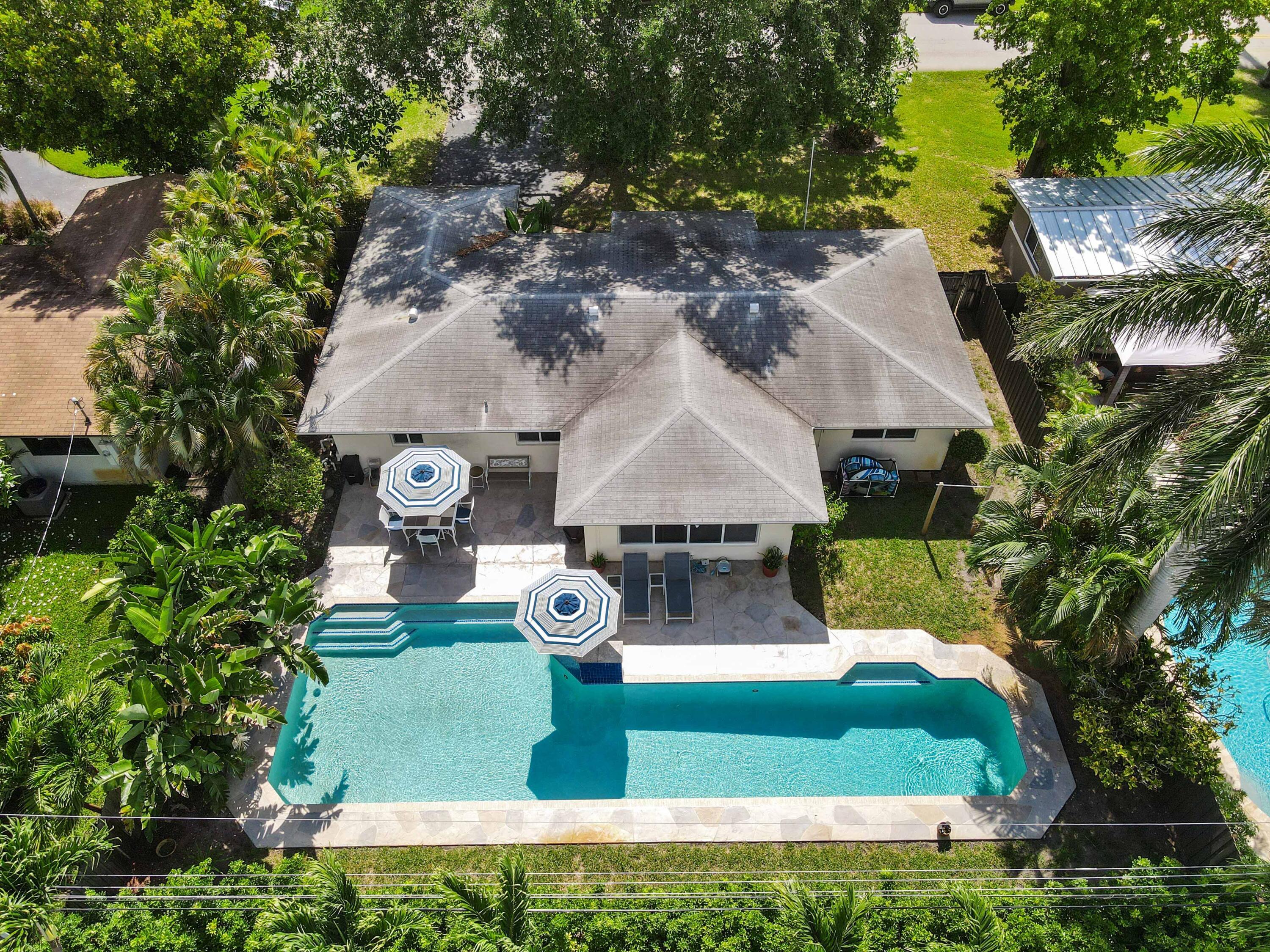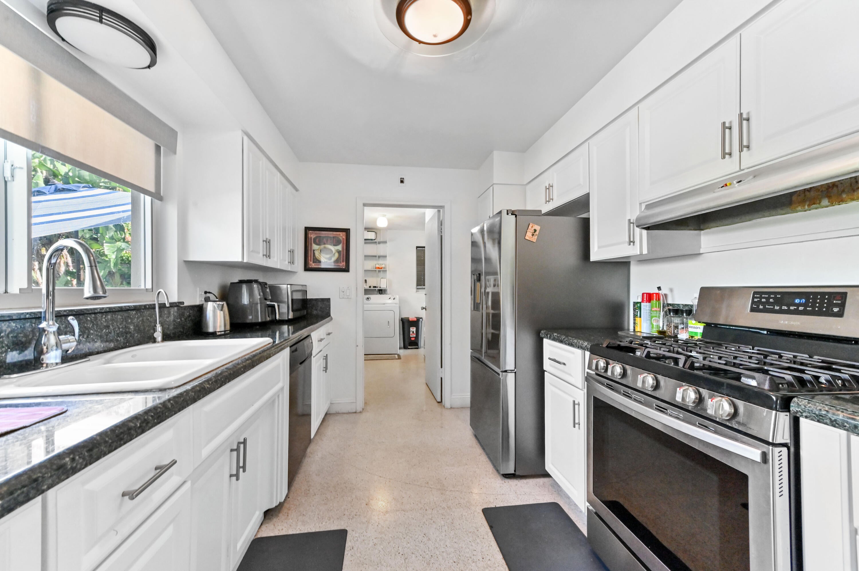 This charming 1-story pool home offers 3 beds, 2 baths and 1,586 sq ft of comfortable living space. Enjoy peace of mind with hurricane impact windows and a 1-car carport attached. Inside, you'll find classic terrazzo flooring throughout and a spacious kitchen featuring granite countertops, a gas stove, ample cabinet storage, and appliances included. A bright kitchen window provides a lovely view of the pool area, making meal prep a delight.Each bedroom includes its own closet for convenience and the dedicated laundry room comes equipped with a washer and dryer. Step outside to a private backyard oasis with an open patio, 59 foot lap pool, and a built-in bar perfect for swimming and entertaining. Located in the desirable Coral Heights neighborhood with no HOA restrictions, this home blends comfort, functionality and style.