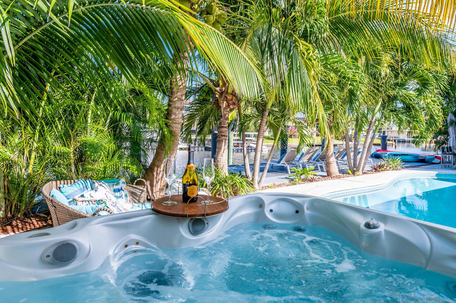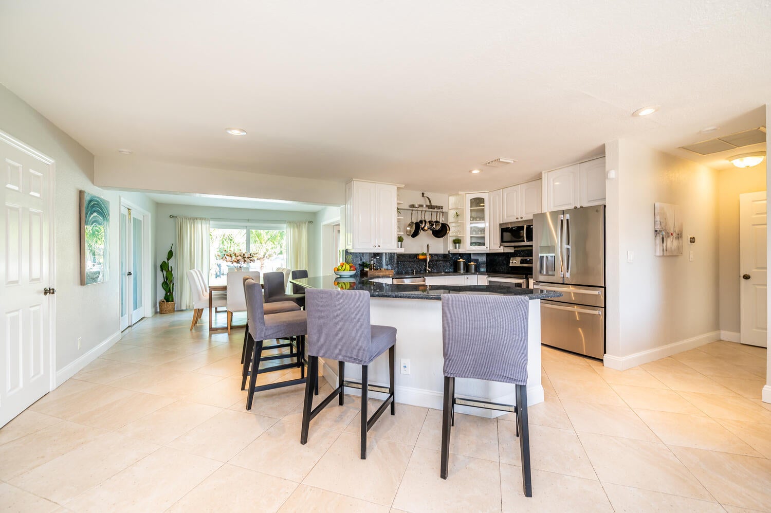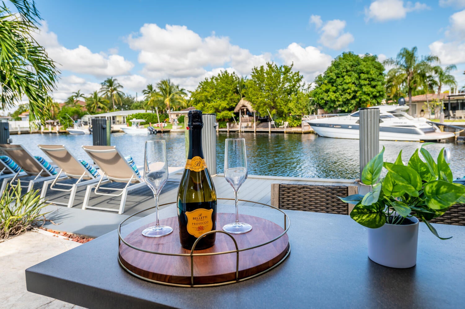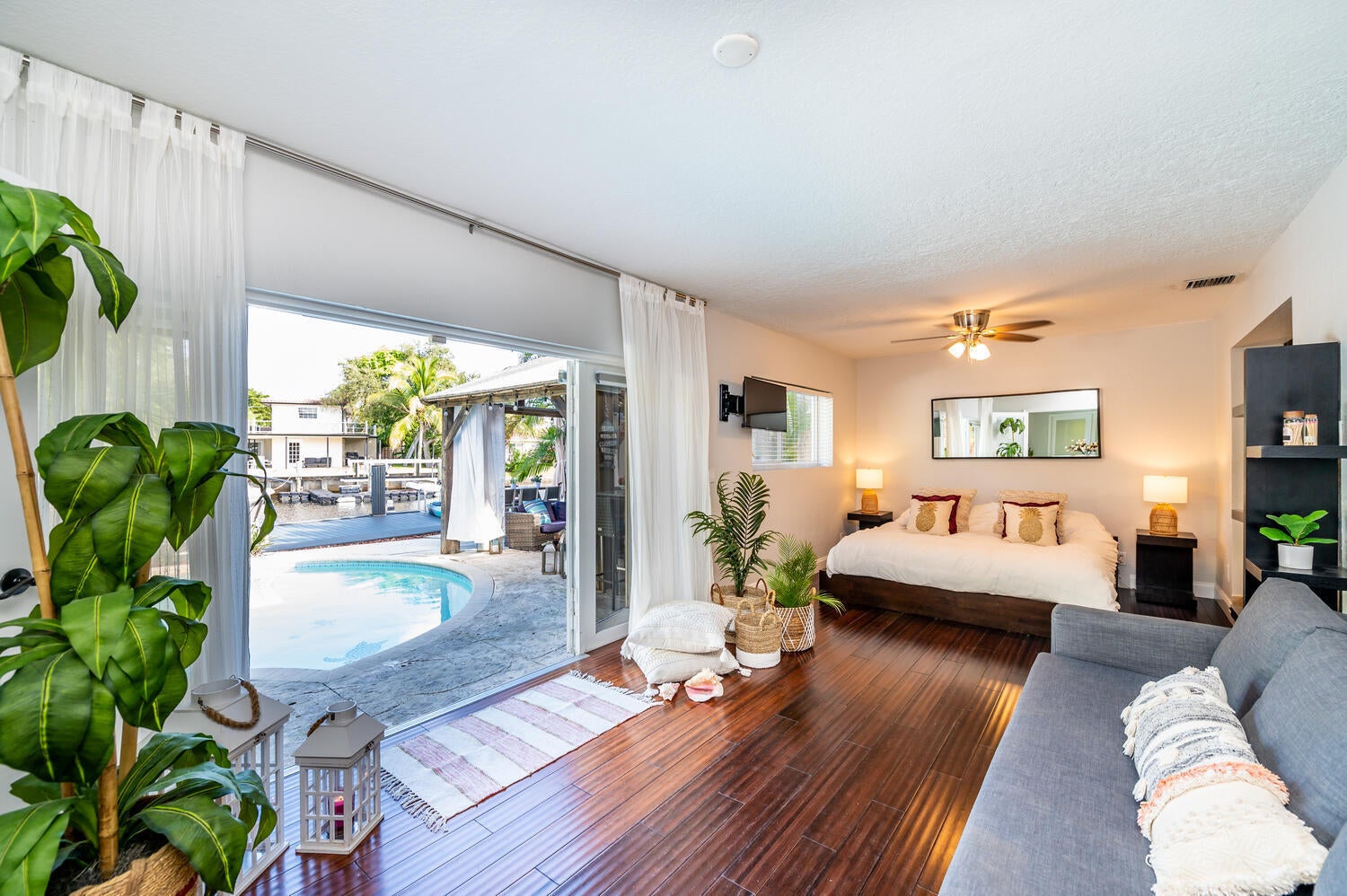 This waterfront home is the family-resort you have been looking for. Fully furnished 4 beds 3 baths, open-conceptgourmet kitchen with new appliances, bar countertop and spacious living/media room area. Relax in the private,heated pool while enjoying water views and spectacular sunsets. There's a spa in a cozy corner surrounded by lushlandscaping for privacy. The outside bar with gas grill invites for BBQ cookouts. A brand new private dock issuitable for boats up to 35 ft. Throw your lines in the water and catch your dinner. This home is off Federal Hwy (US1) and just minutes from I-95. Quick 5 min drive to beach on East Atlantic Blvd, Beach access, grocery stores, Watersport rentals, several gorgeous beach bars and waterfront restaurants nearby. SEASONAL | FURNISHED!