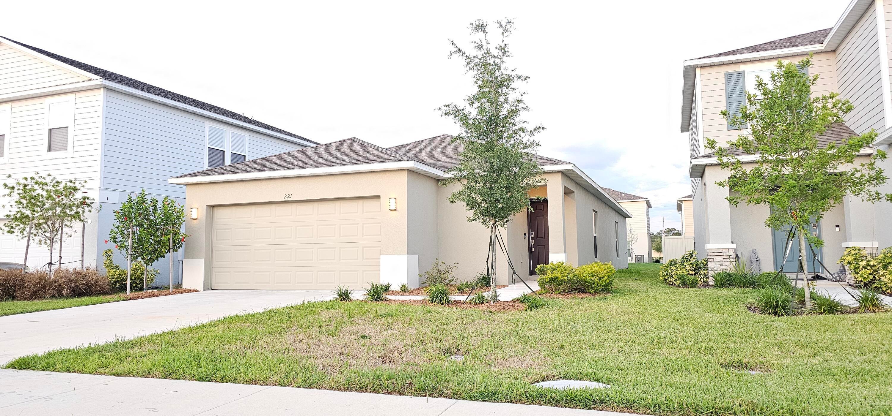 Beautiful Quick Move-In New Construction Home. This beautiful home features open-concept living space with 3 bedrooms, 2 bathrooms, a flex room, 2-car garage, and more! Through the foyer lies a flex space, leading to the kitchen area. Two bedrooms are off the kitchen, while your primary suite lies in the rear of the home off of the great room. The Floor Plan is perfect for entertaining guests and enjoying the warm Florida weather. Low HOA Amenities features a community pool, and playground with beautiful views. Very good location, close to awesome shopping malls, restaurants, golf, schools, many parks, outdoor scenery, wildlife, fishing and picnicking. In less than 40 min you can be at Walt Disney World, Universal Studios, Legoland, and Bok Tower Gardens.
