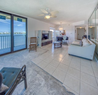 Amazing views up and down the intracoastal from this corner unit with a wrap-around balcony where you can enjoy cooling breezes and the sound of the waves below.. New impact windows, updated kitchen and baths. Washer and dryer in the unit, great floorplan for privacy. Gated community with pool and clubhouse.