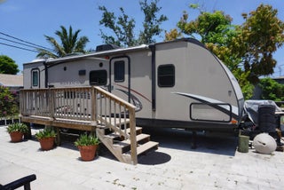 Shows well & completely renovated. Clean Multi-family zoned home offers strong Income Potential, In Law Area or Extended Family accommodations. Moderate walking to Intracoastal and ocean. Hurricane impact windows (including garage) and impact front door provide peace of mind. Furnished RV trailer on property included. Features a flexible multi-zone layout and garage with sewer and shower hookups. AC 2018 and serviced annually (last in 2025). Bath and Kitchen fully updated with center island and added cabinetry. Murphy bed in second bedroom adds versatility. Low-maintenance yard with concrete/pavers, fully fenced and gate, patio areas, security lighting, and ample parking--including space for Boat, RV, or commercial vehicles. Great storage. Walk or bike to beaches, restaurants, and shops
