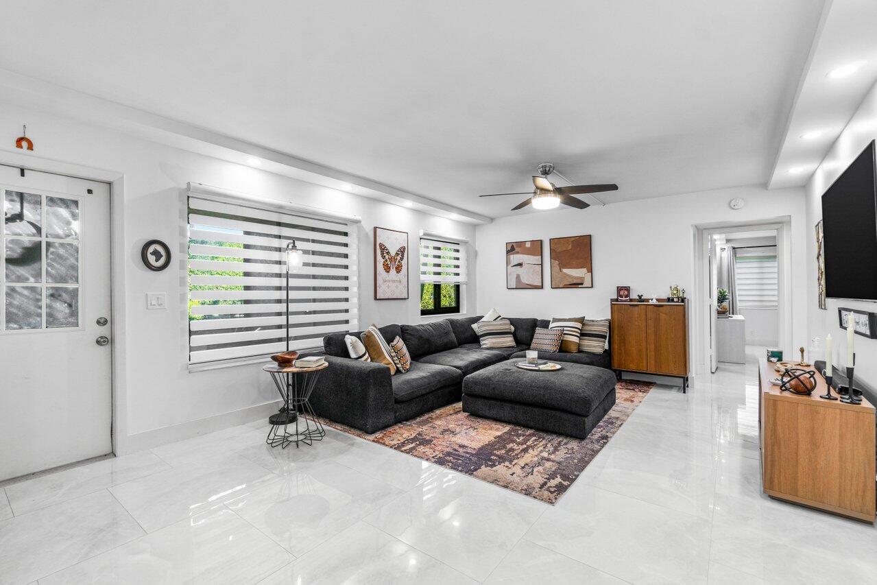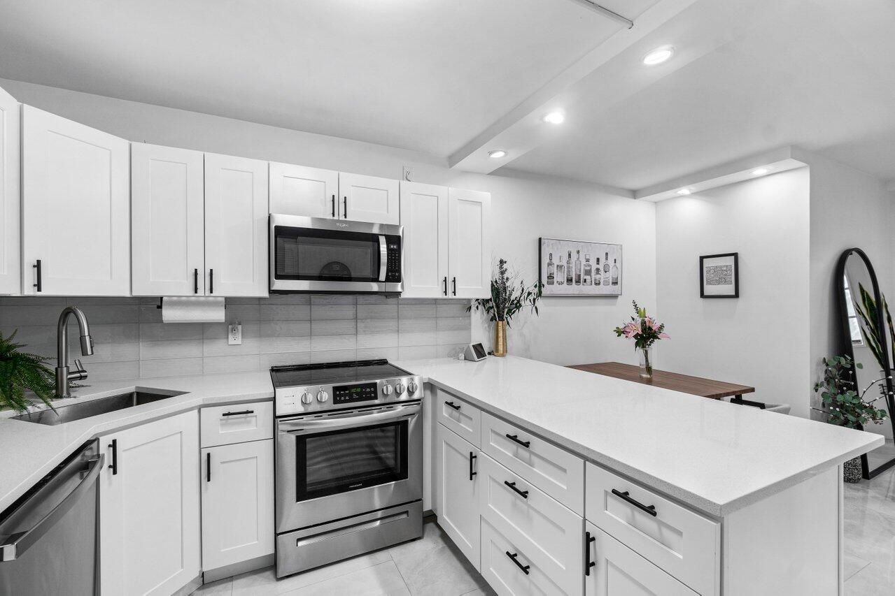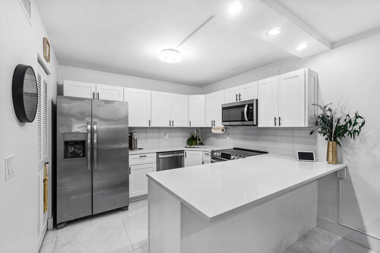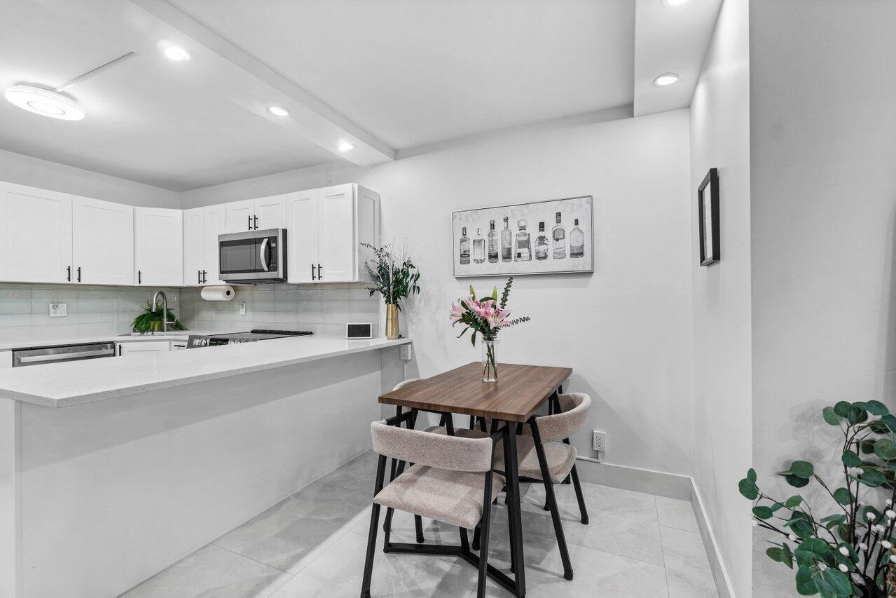 Spectacularly Renovated Luxury Unit!Step into elegance with this stunning two-bedroom home featuring a crisp white marble flooring theme throughout. Modern recessed lighting is installed above and below the kitchen counters--and in every room--creating a warm, inviting ambiance. LED accent lighting adds a vibrant glow to the kitchen backsplash and breakfast nook, beautifully reflecting off gleaming white surfaces and dazzling diamond-speckled countertops.Enjoy the convenience of custom soft-close cabinets, drawers, and closets, along with sleek railroad-style retractable push-pull blinds. The kitchen is outfitted with brand-new, high-end appliances, while both bathrooms boast luxurious rainfall shower heads for a spa-like experience. A MUST SEE!